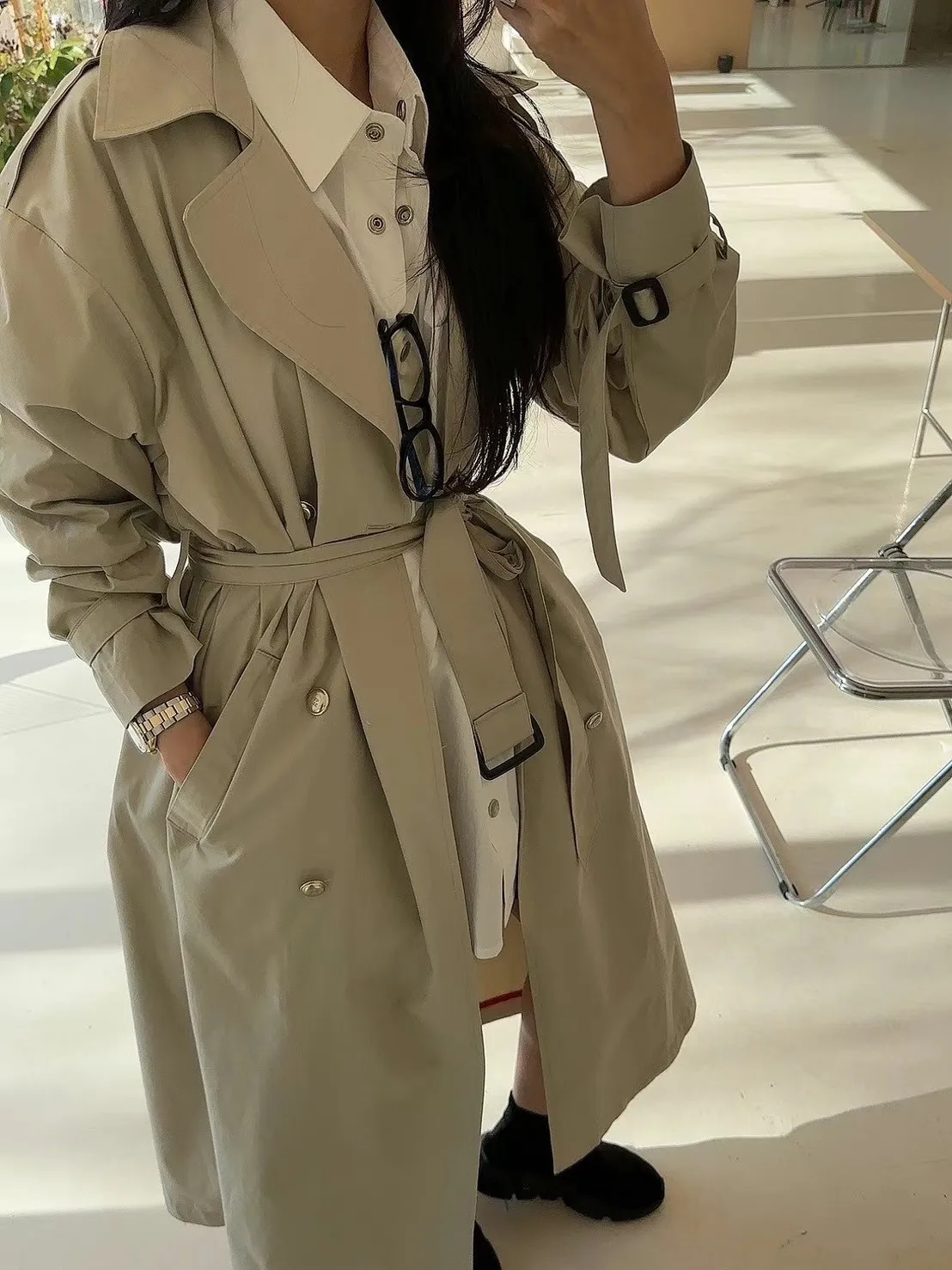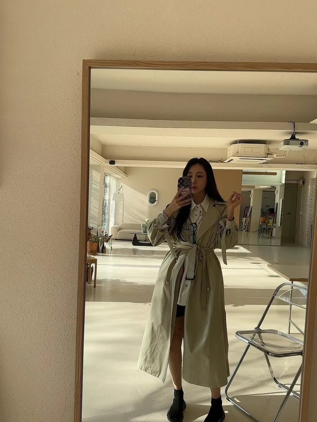 CM038輕盈薄款長版風衣外套 米 灰 官網價$2980 線上價$2950
