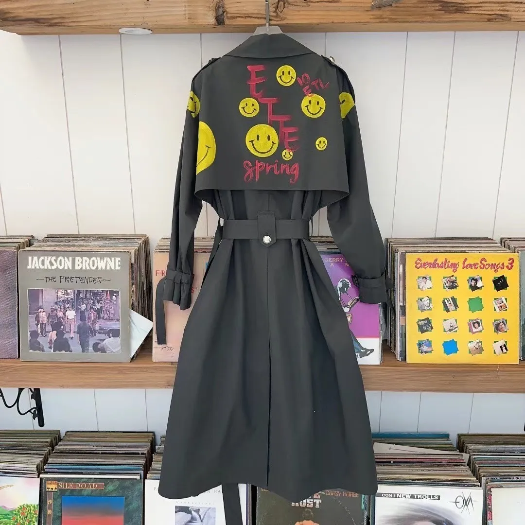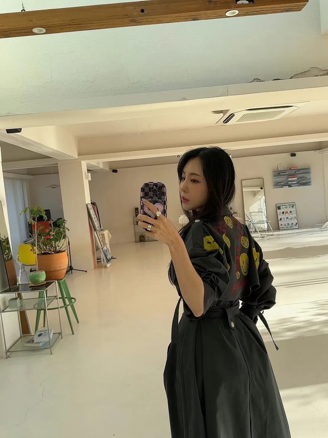 綿+縲縈 有口袋 手袖腰綁帶 觸感柔軟 挺度面料 後面有笑臉圖案