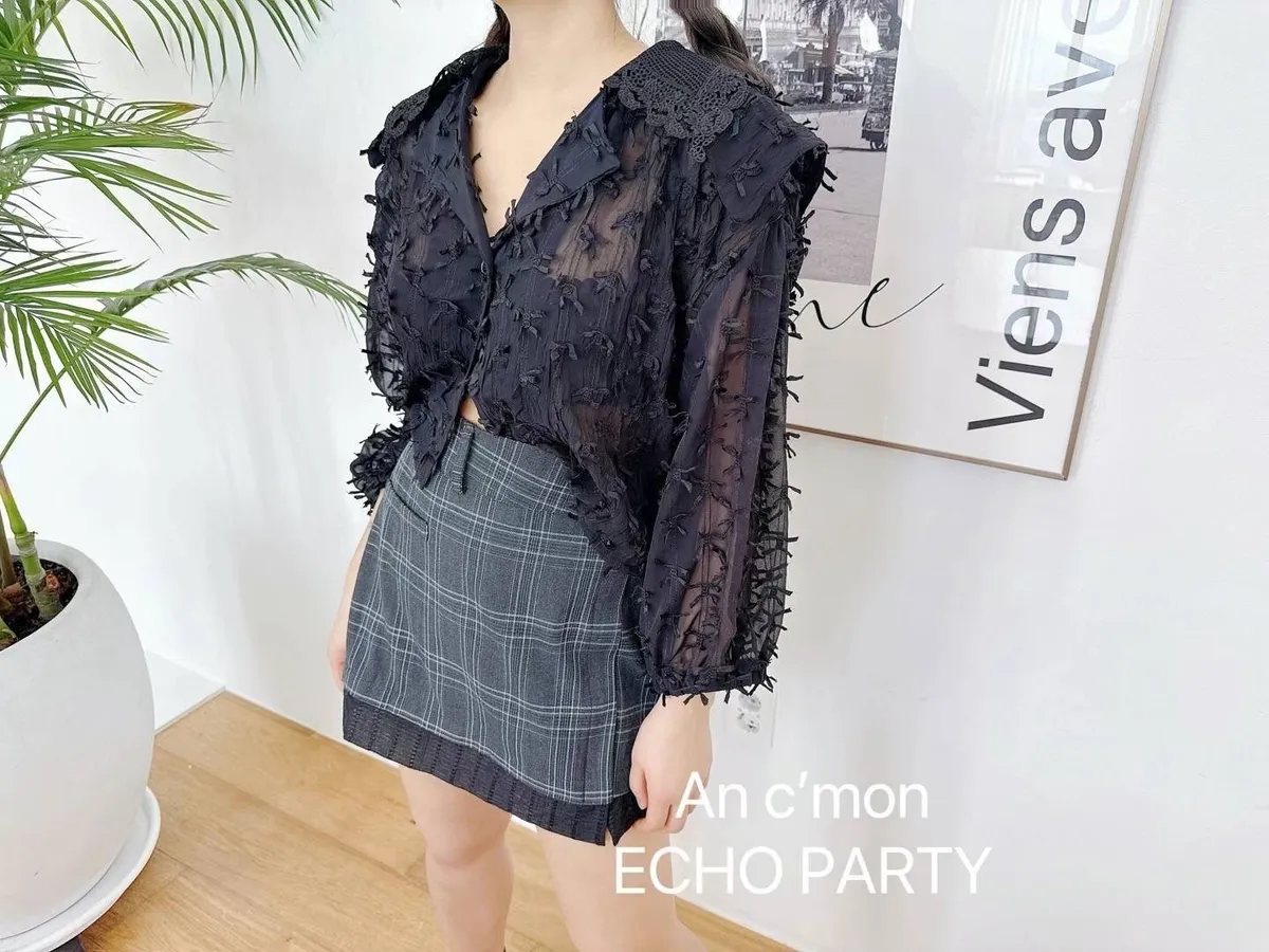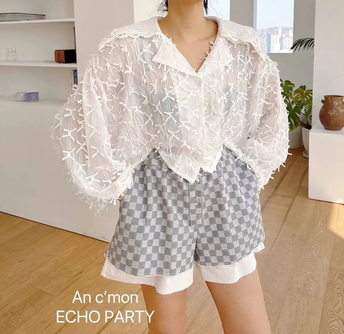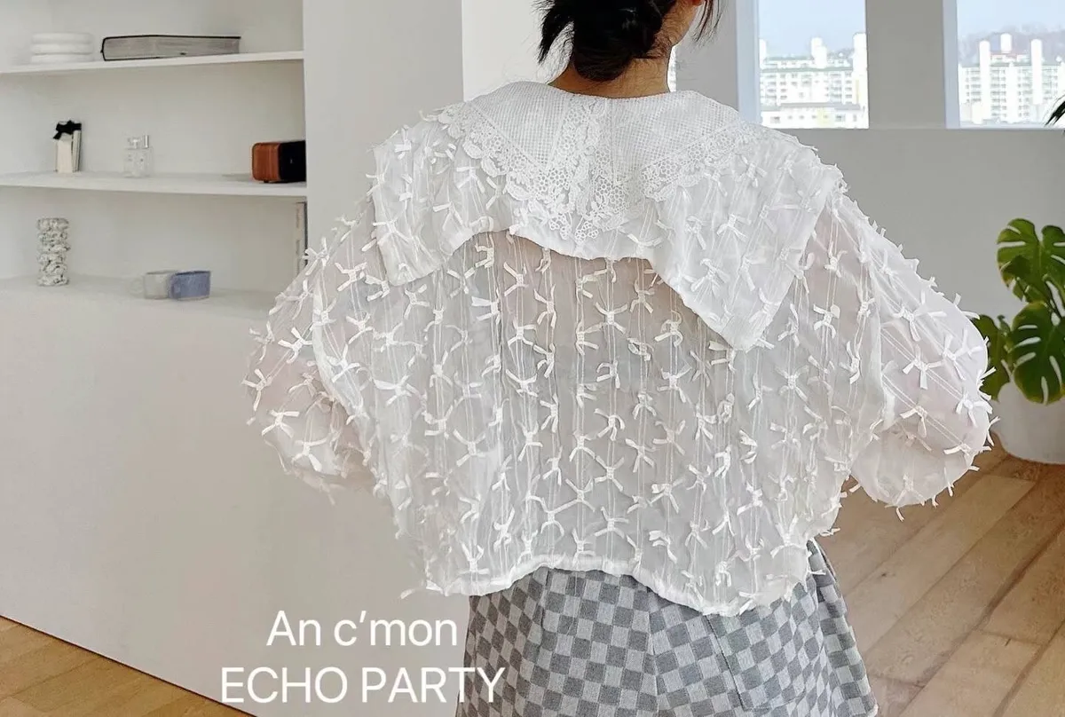 棉+聚酯 棉蕾絲大翻領 蝴蝶結潮流設計 透光感極美 XL友善 超敏肌略過
