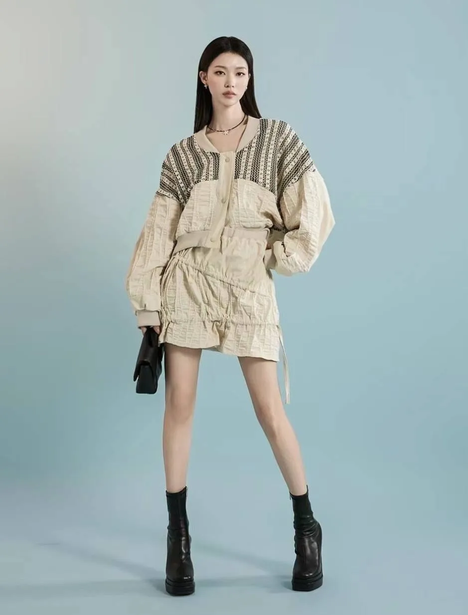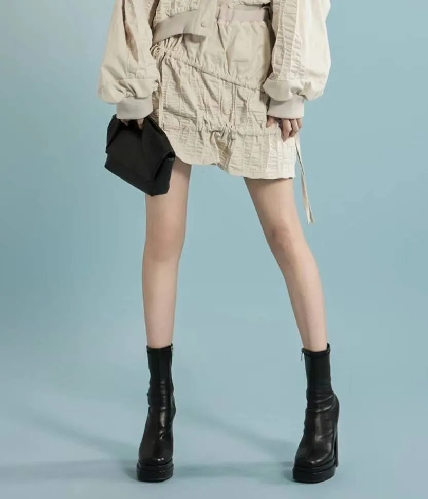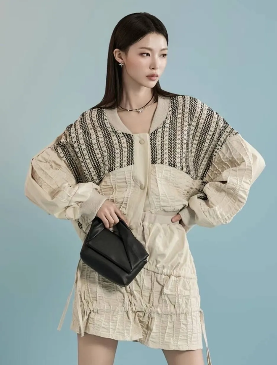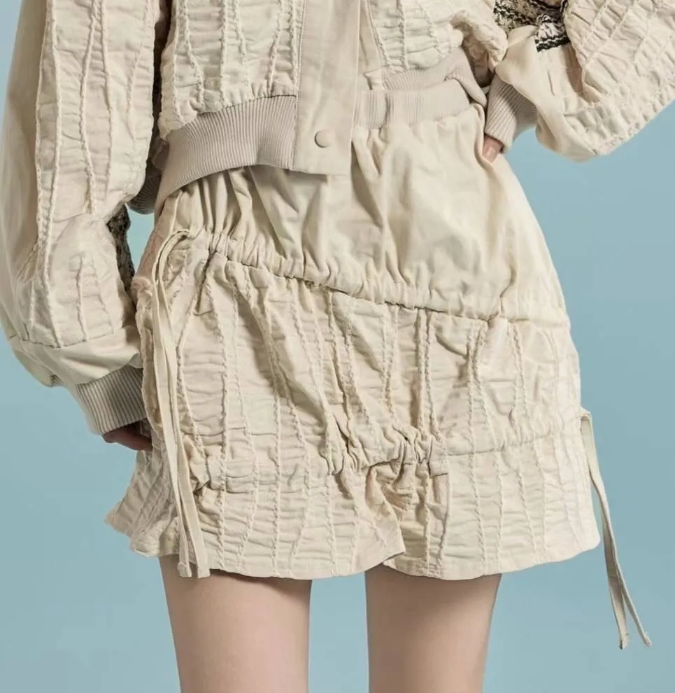 棉+聚酯 腰寬有彈性 臀寬沒彈性 測綁帶 立體不規則面料 滑料內裡