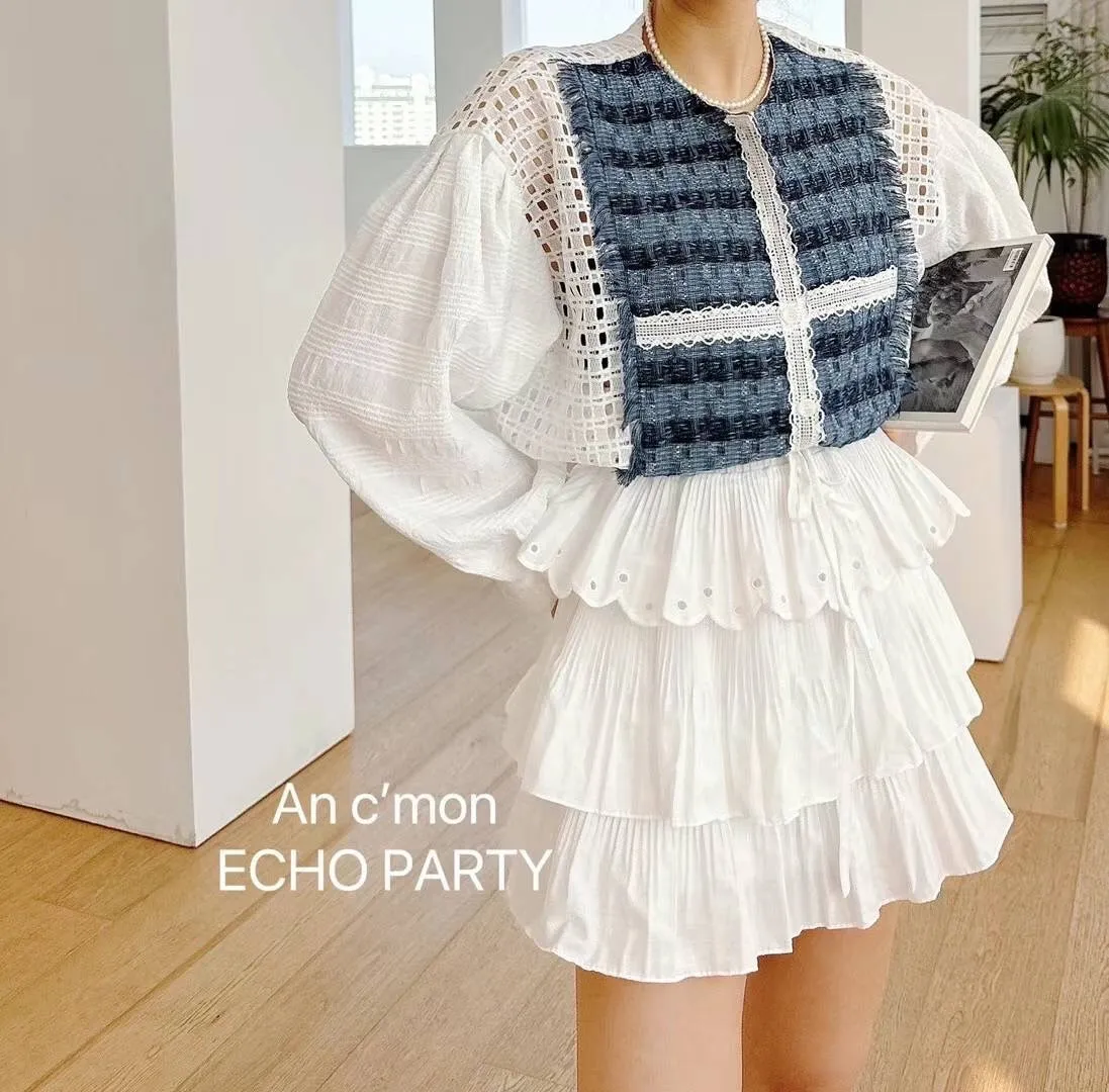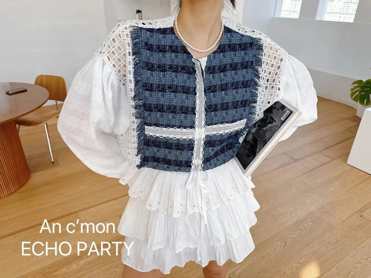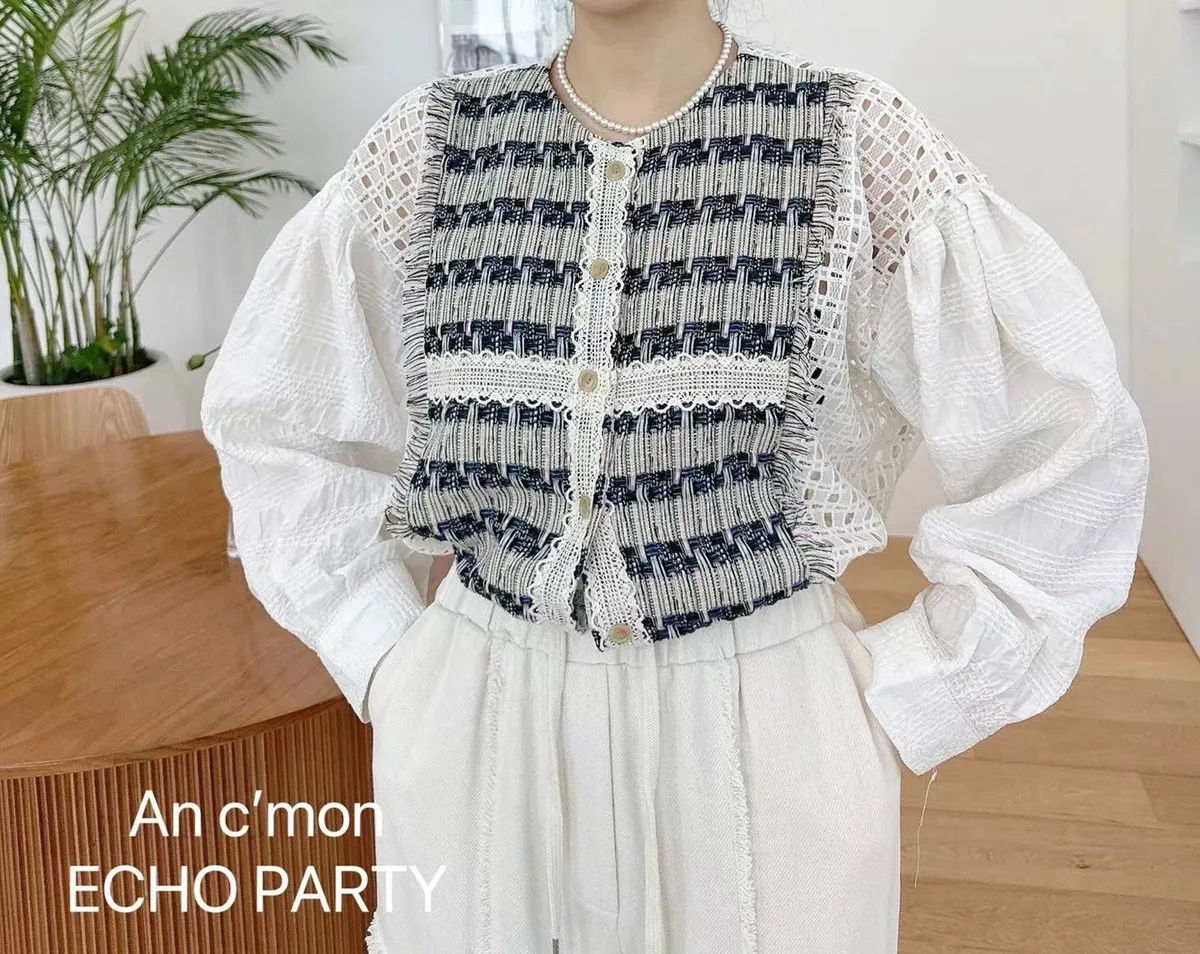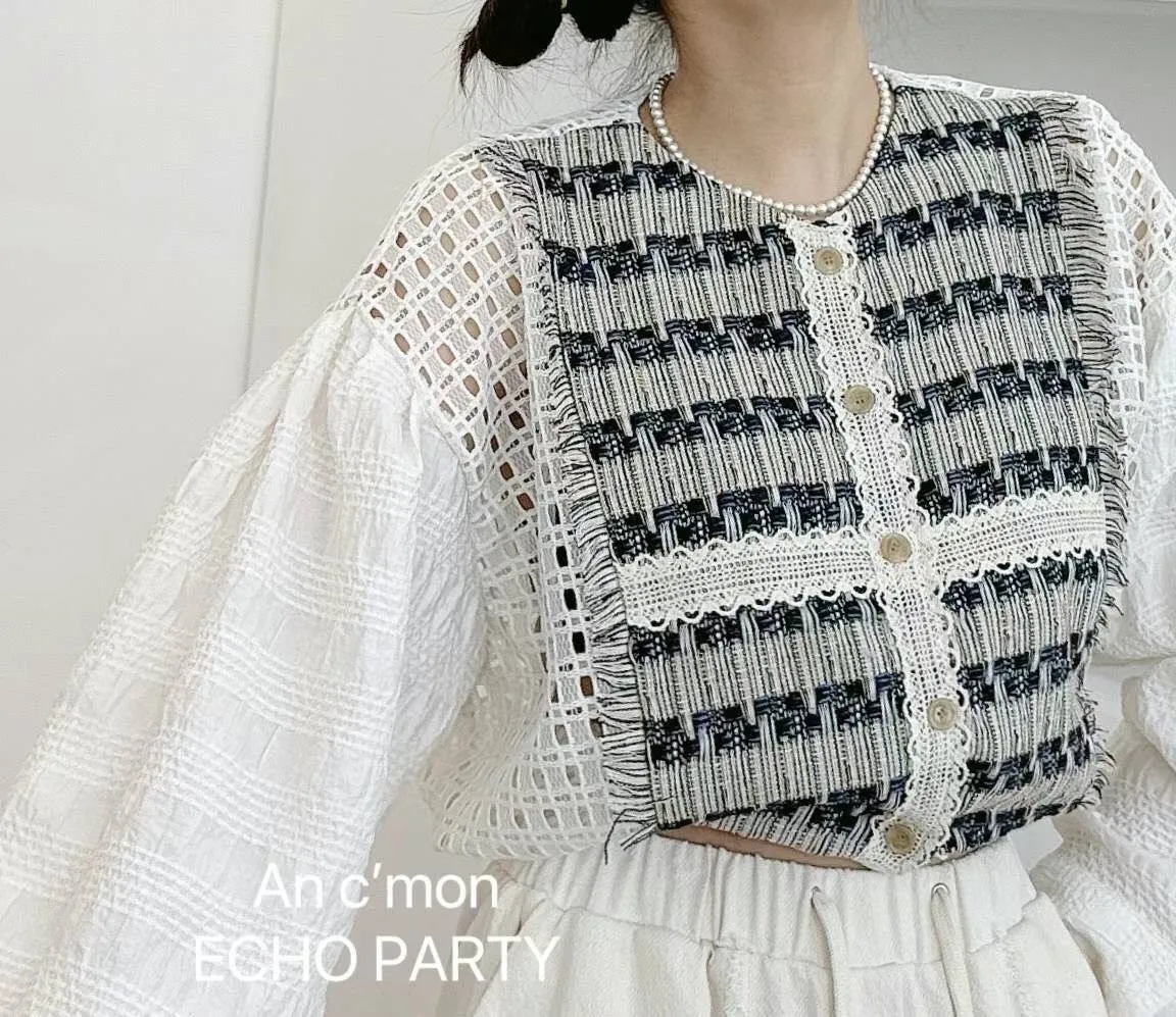 棉+蕾絲+聚酯 薄款輕盈 下擺抽繩 精緻支線 格紋簍空 不用整燙