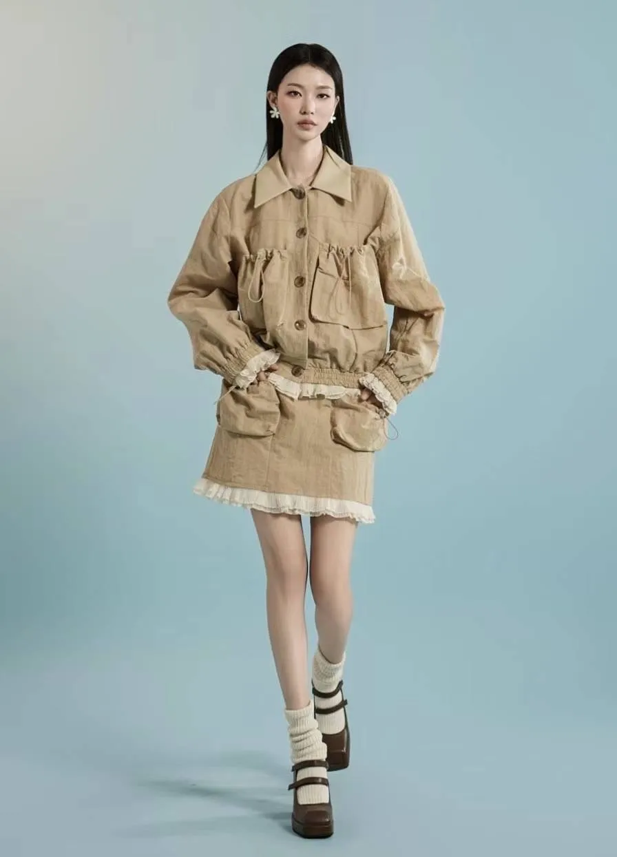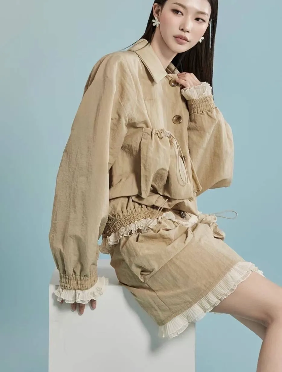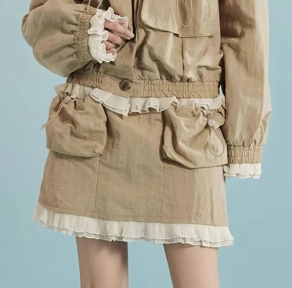 雪紡+蕾絲 全腰鬆緊 有內裡 有口袋 穿到小L