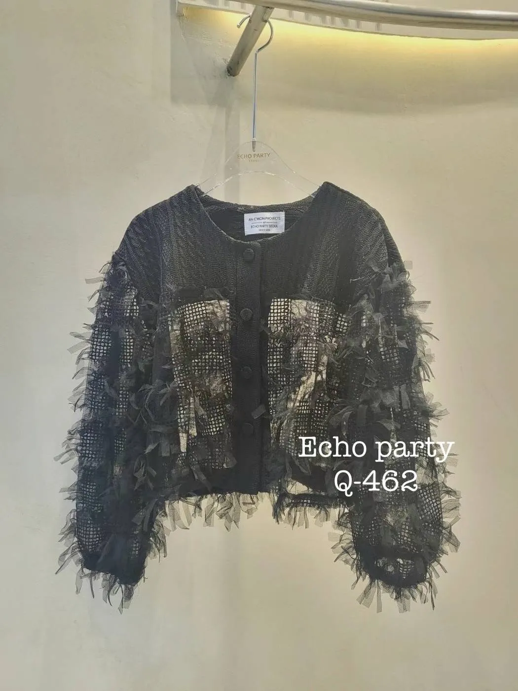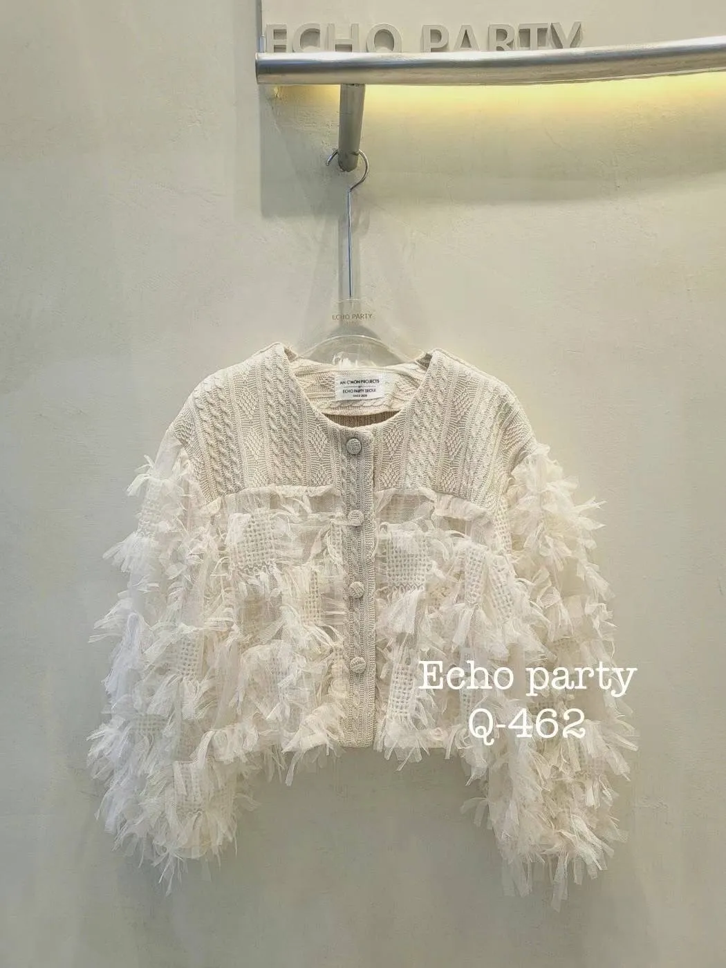 棉+聚酯 輕盈薄款 釦子穿脫 透光設計 多層次拼接 仙羽美袖 不撞款設計