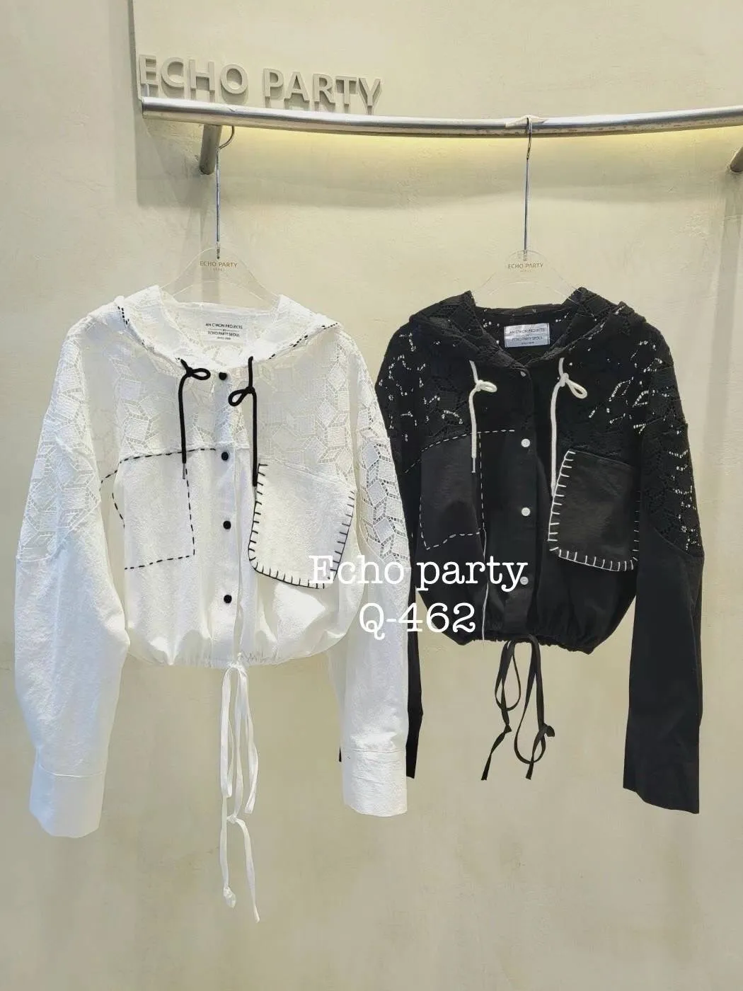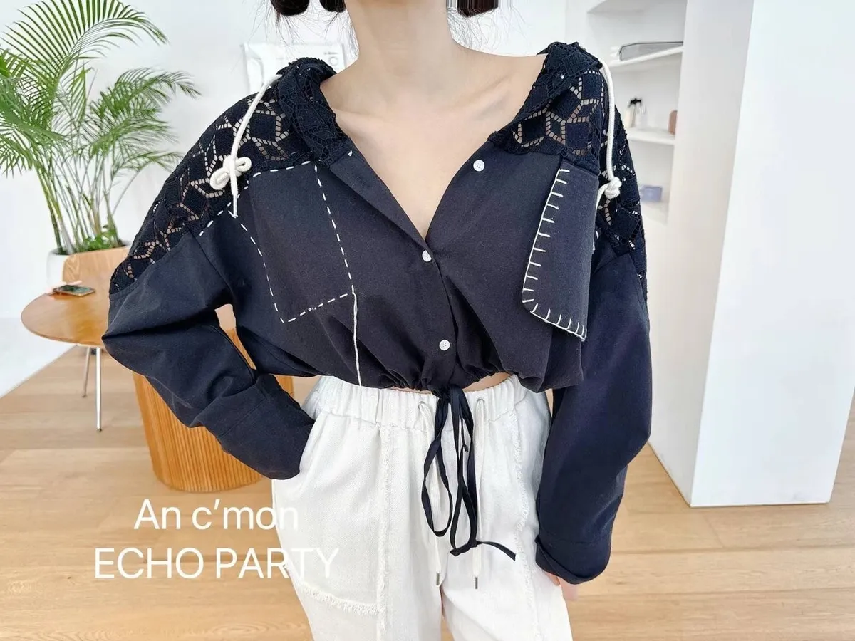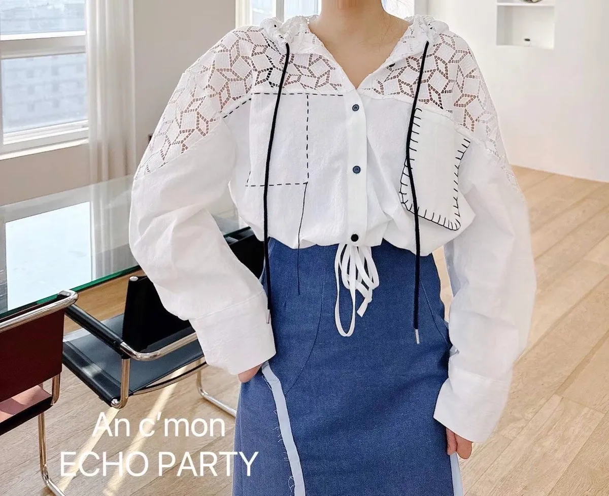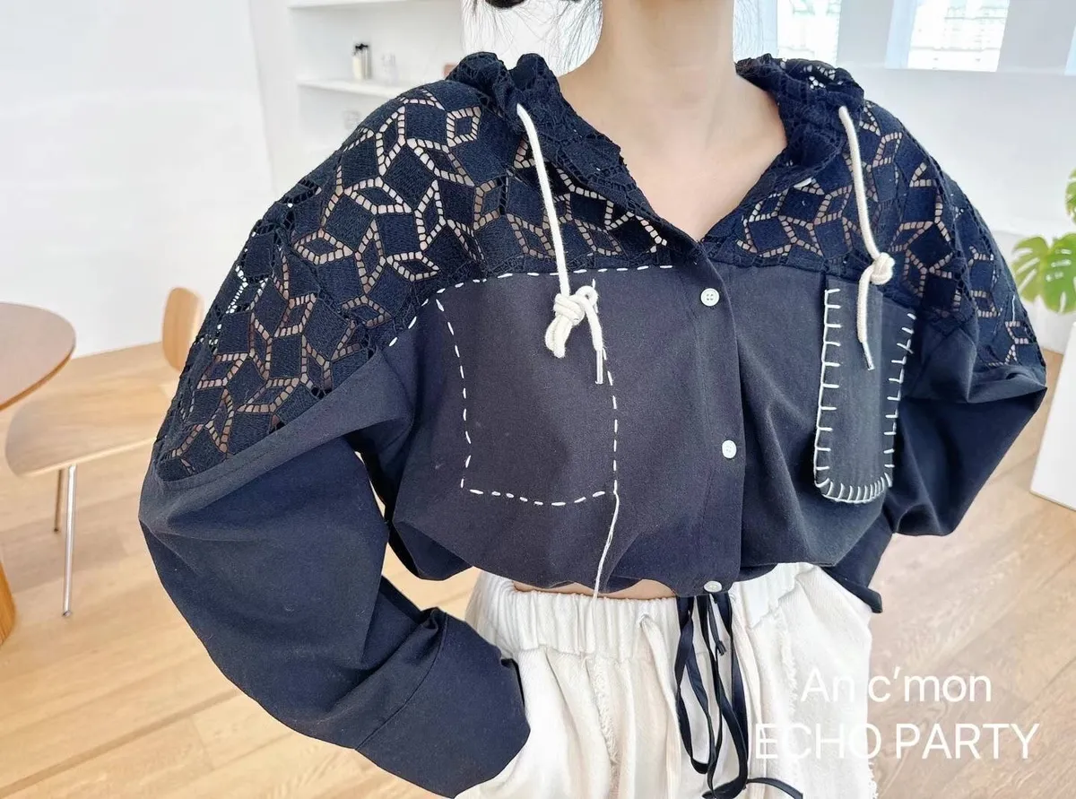 棉+蕾絲 精緻棉蕾絲抽繩連帽 下擺抽繩不刺癢 跳色車線 立體口袋 敏肌舒適
