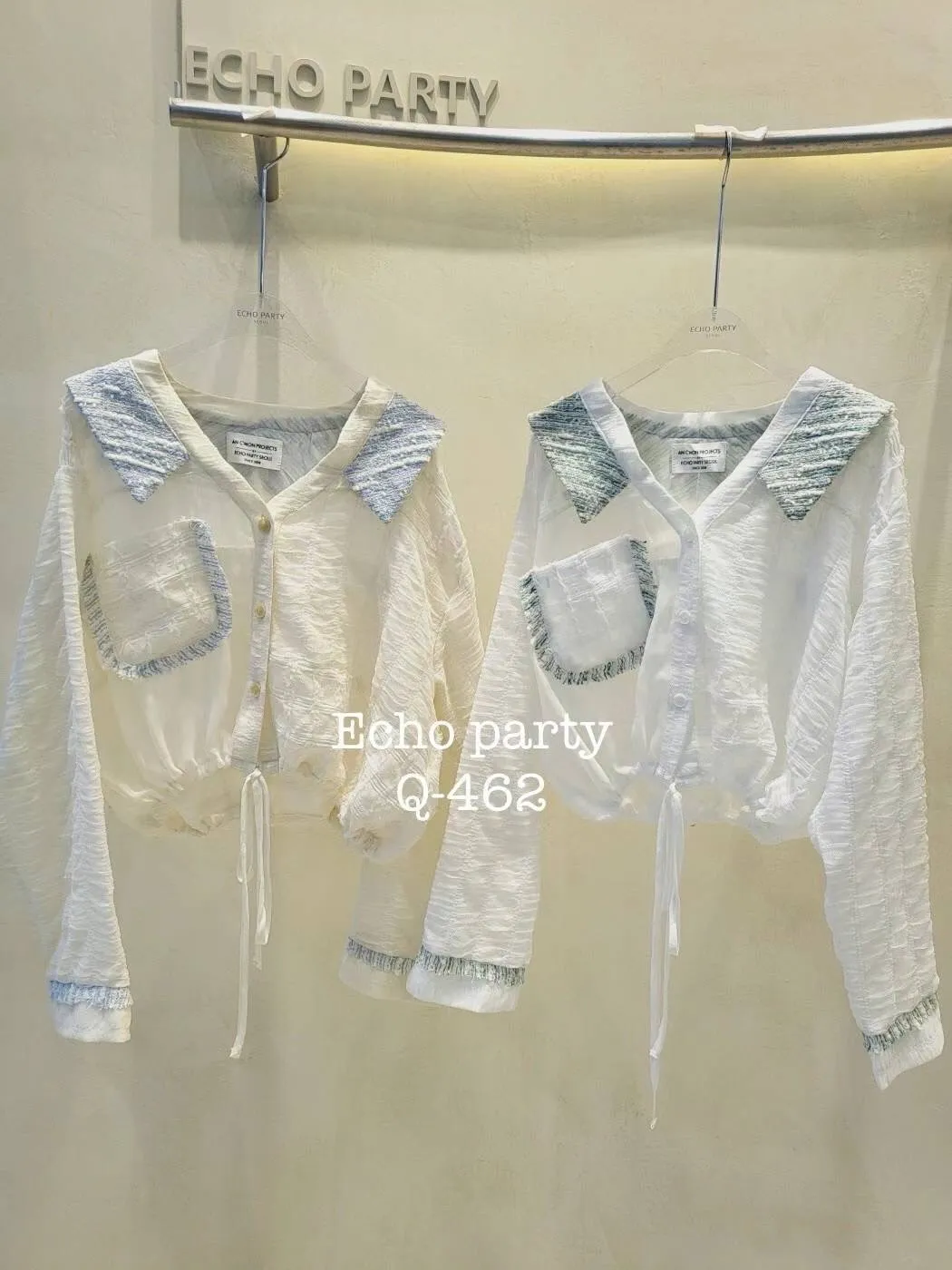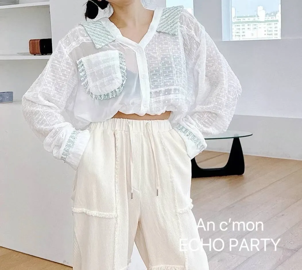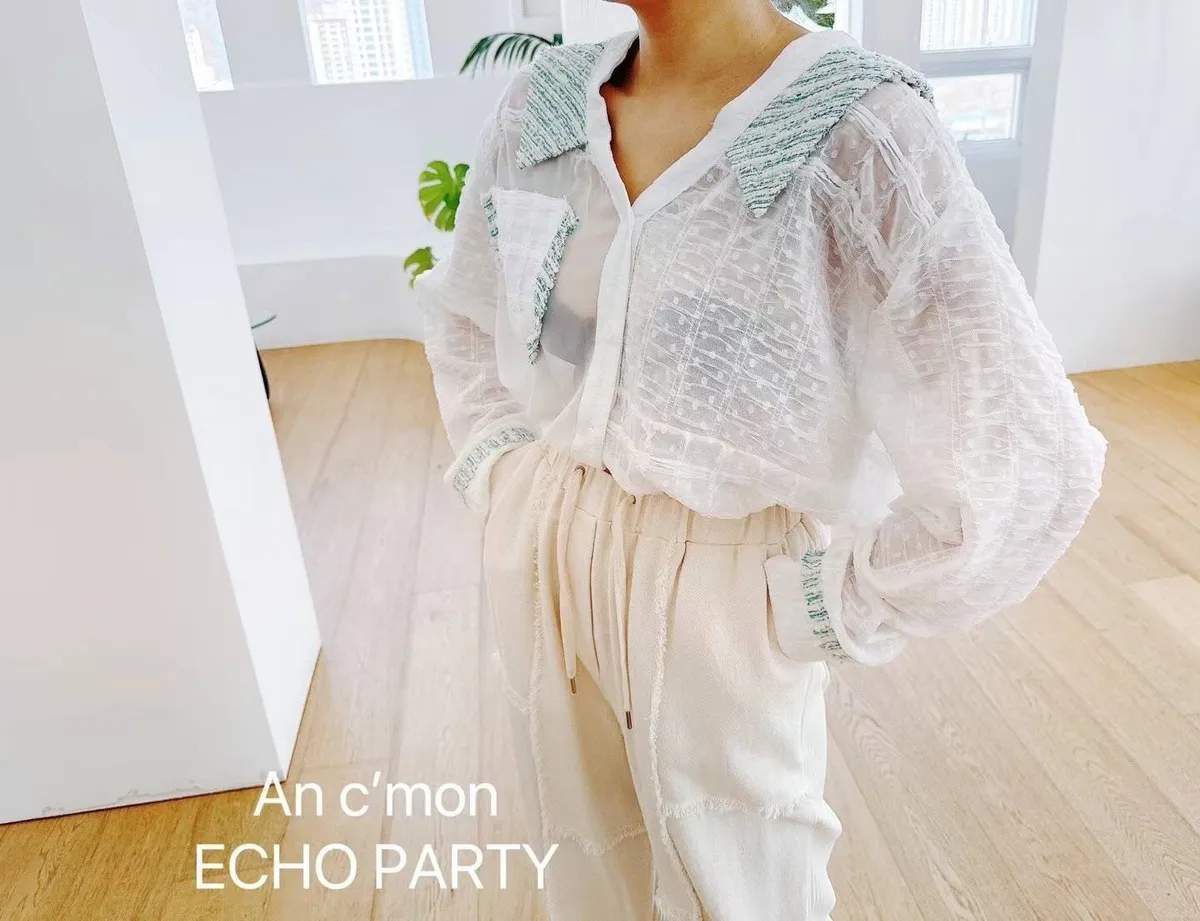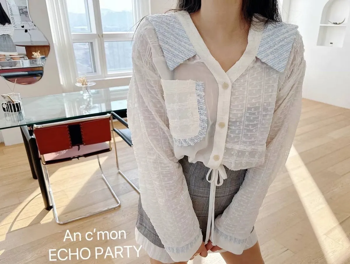 棉+聚酯+雪紡 透光薄款 小香風織線拼接雪紡 下擺抽繩 適合台灣天氣