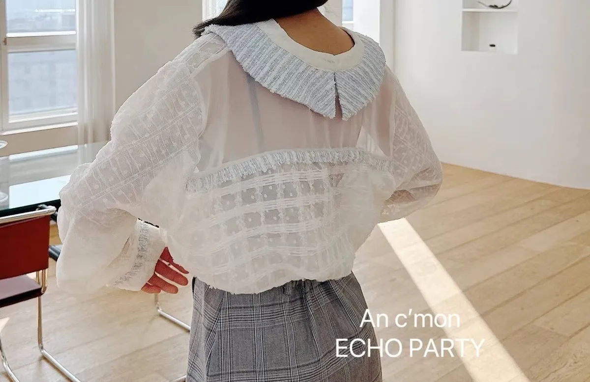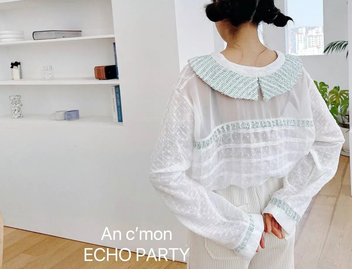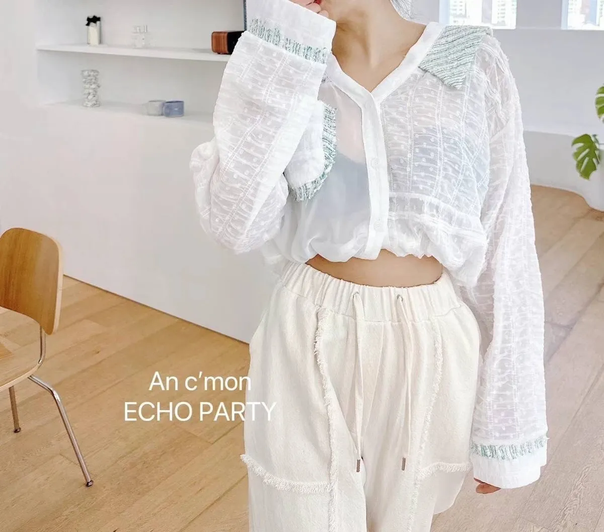 棉+聚酯+雪紡 透光薄款 小香風織線拼接雪紡 下擺抽繩 適合台灣天氣