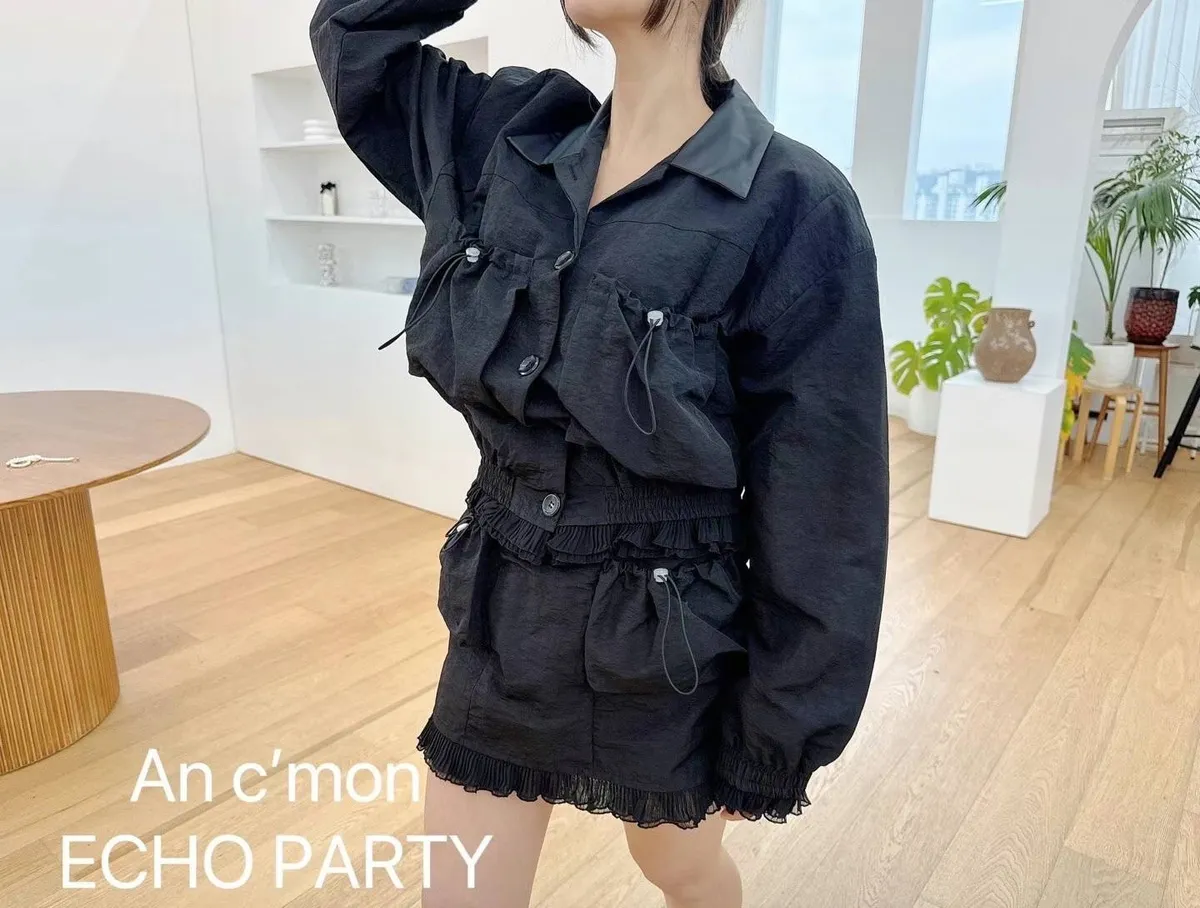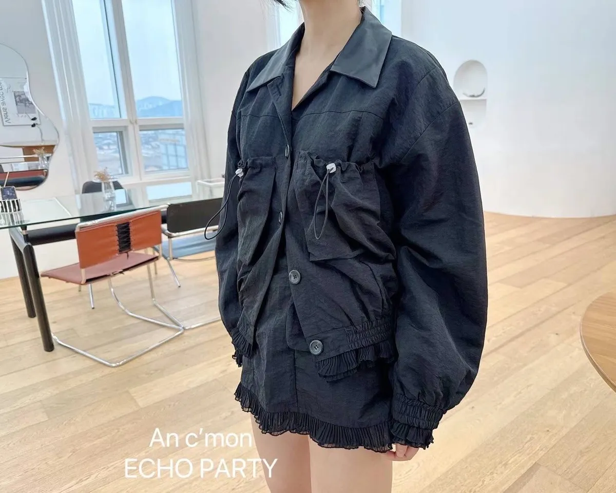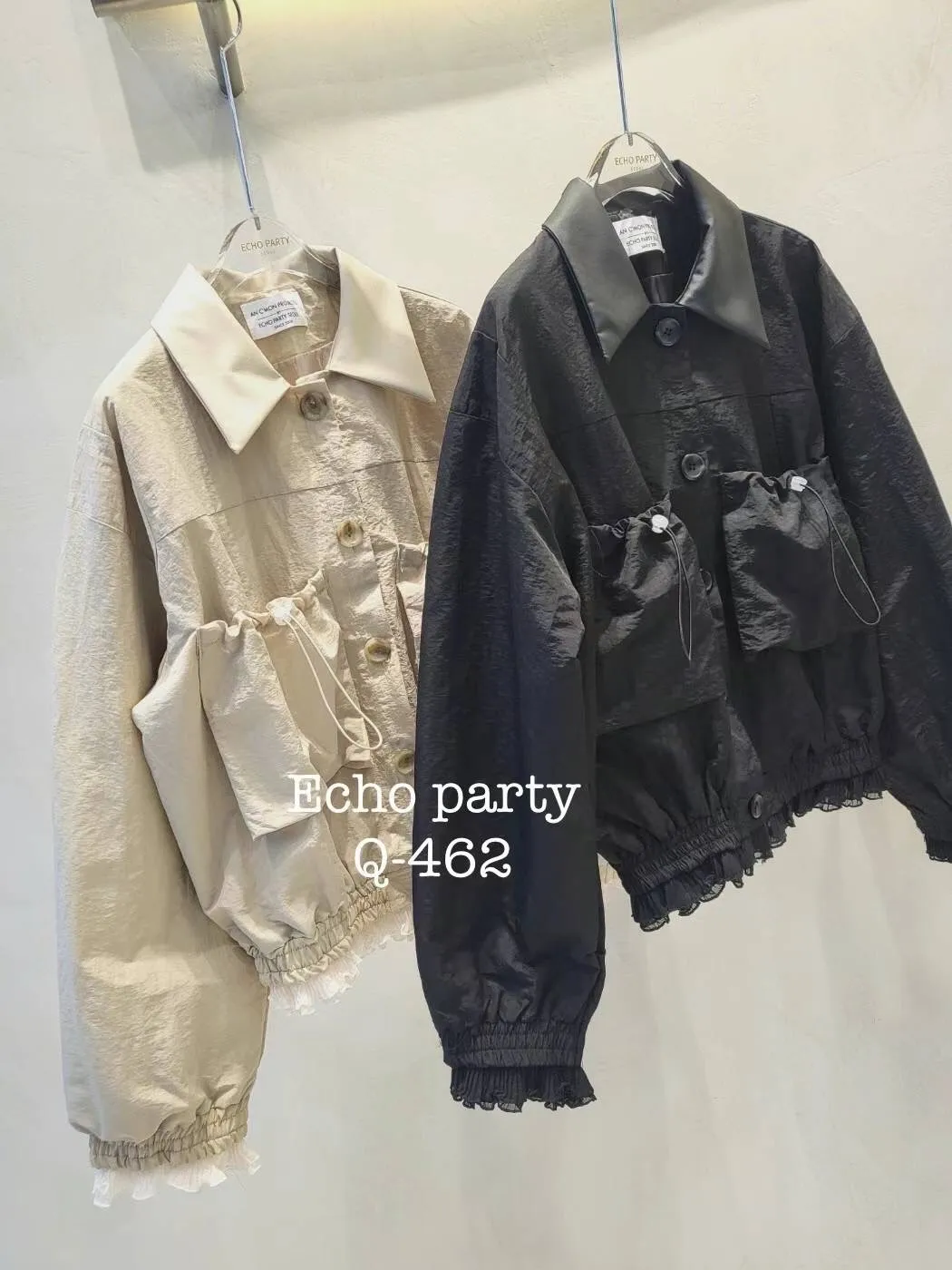 雪紡+聚酯+皮革領 釦子穿脫 雙口袋 有內裡 秋天面料 手袖下擺雪紡