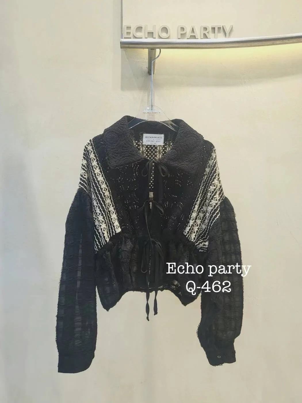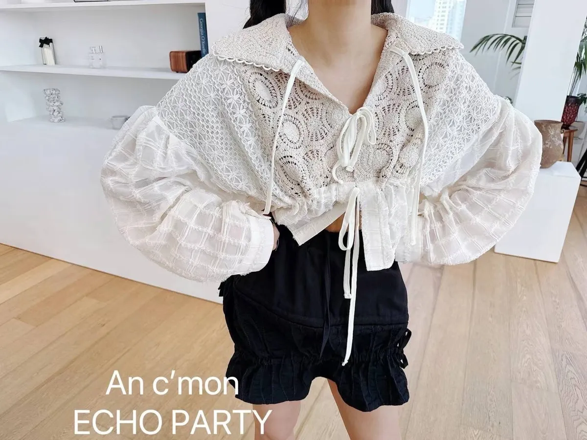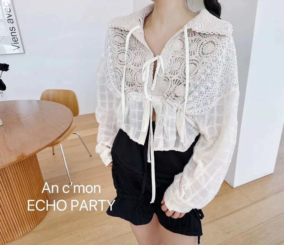 雪紡+網紗+棉 厚磅勾織美領 透光雪紡網紗拼接 綁帶層次設計 超敏肌略過