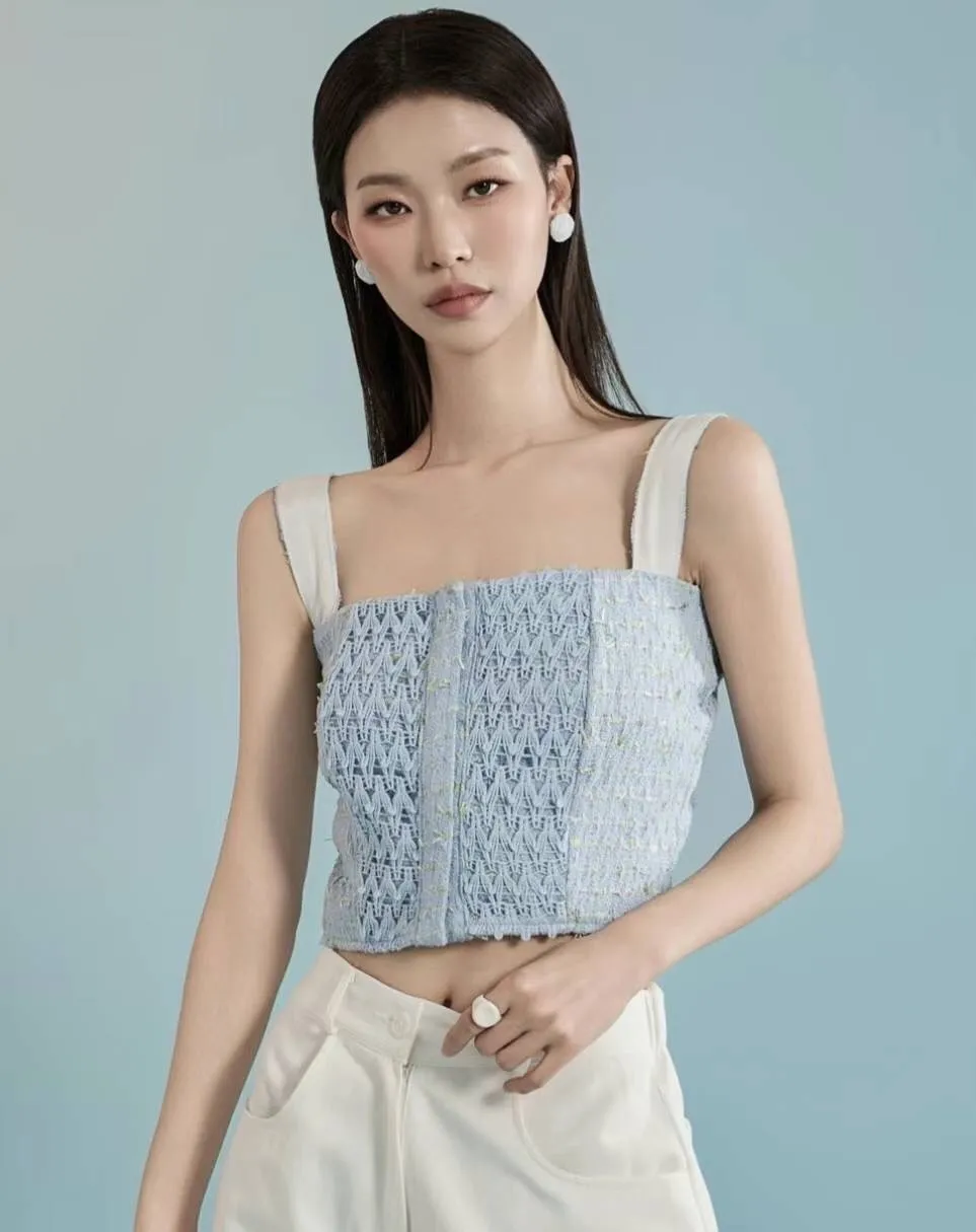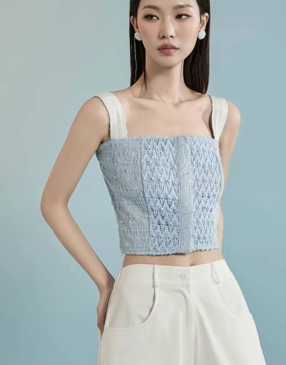 棉+聚酯 壓釦穿脫 精緻跳色勾織線 肩帶不可調 建議穿到S號 C罩杯以下