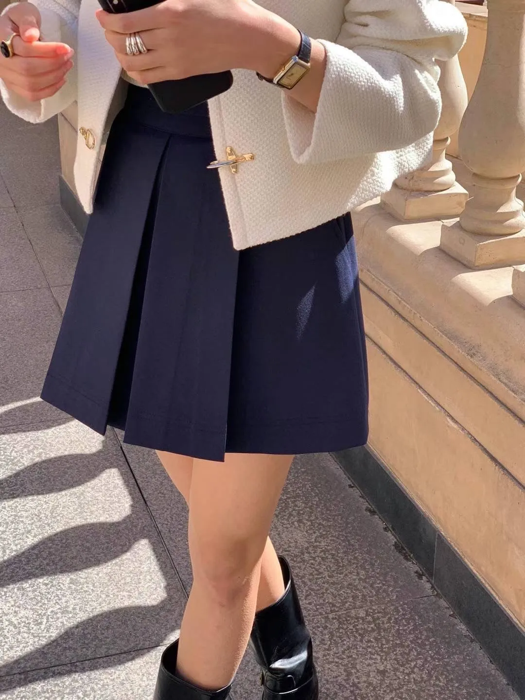 CM1002質感西裝寬百摺裙 白 淺藍 深藍 S M 官網價$1190 線上價$1160