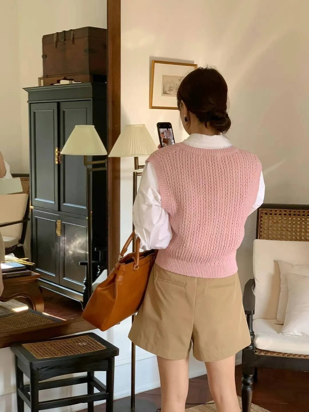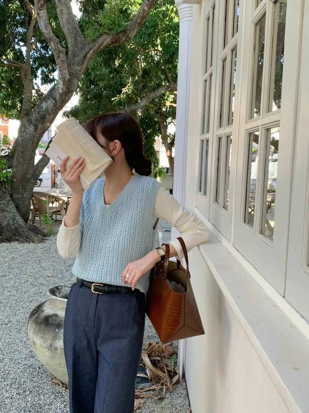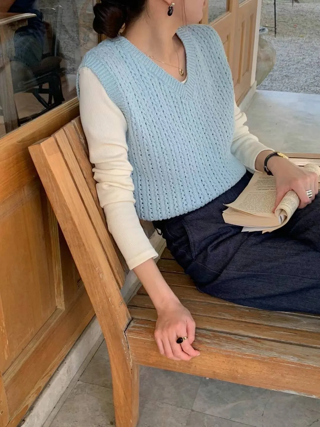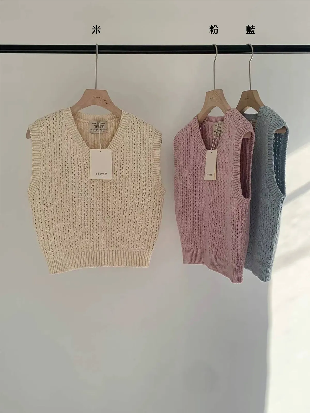 CM1003 質感V領無袖針織背心 米 藍 粉 官網價$960 線上價$930
