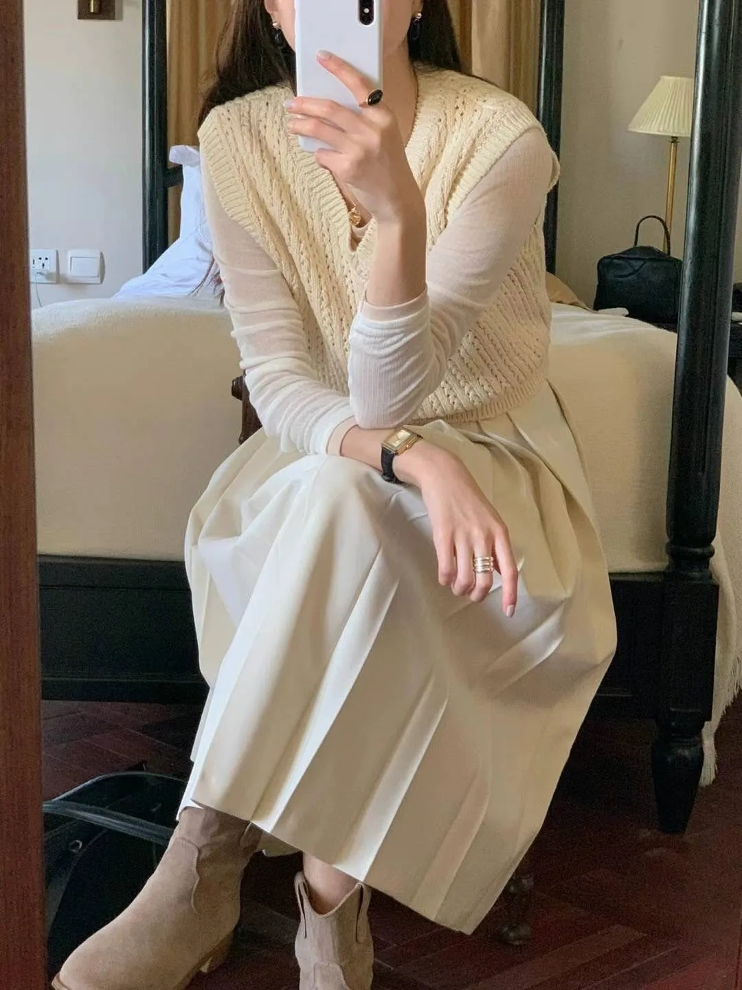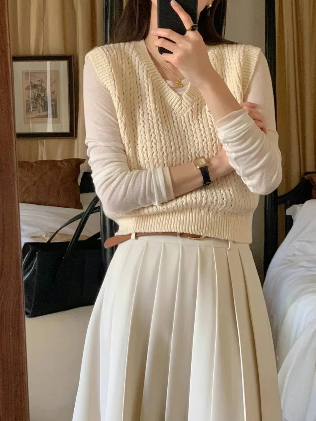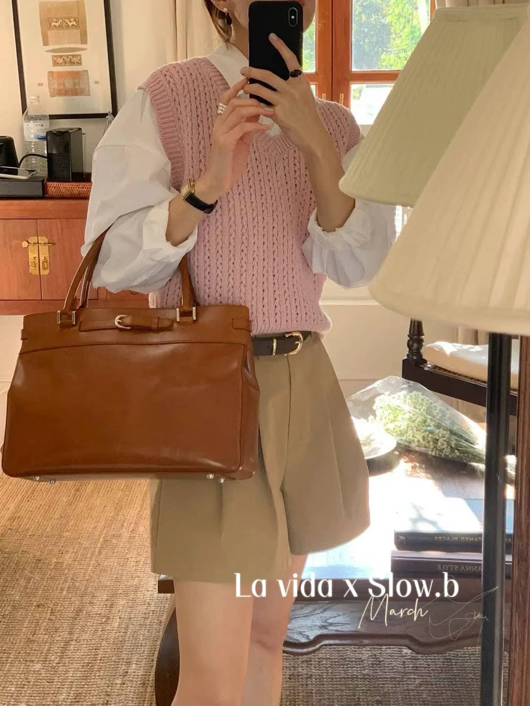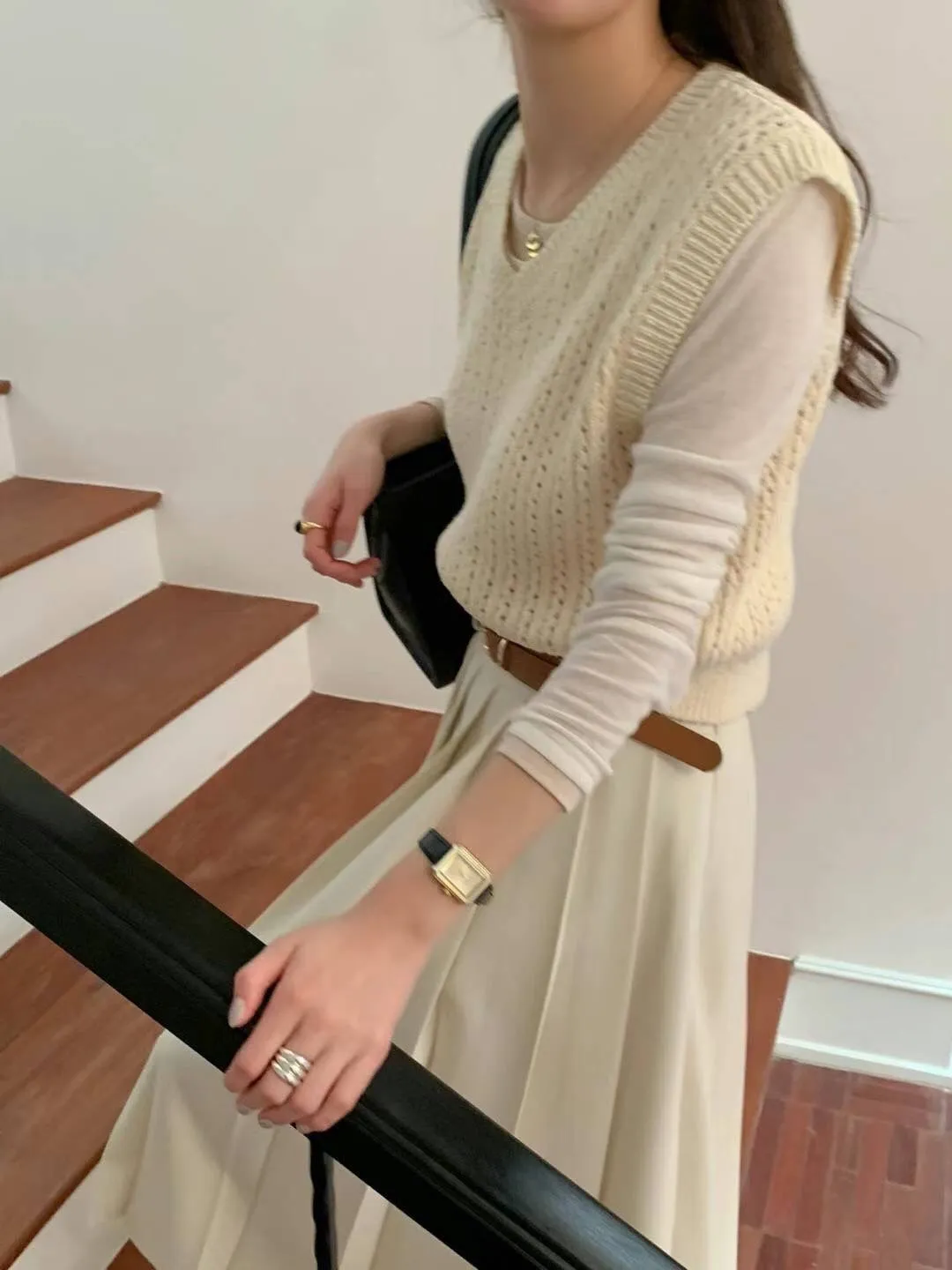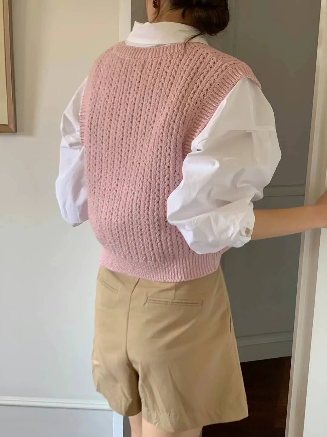 CM1003 質感V領無袖針織背心 米 藍 粉 官網價$960 線上價$930