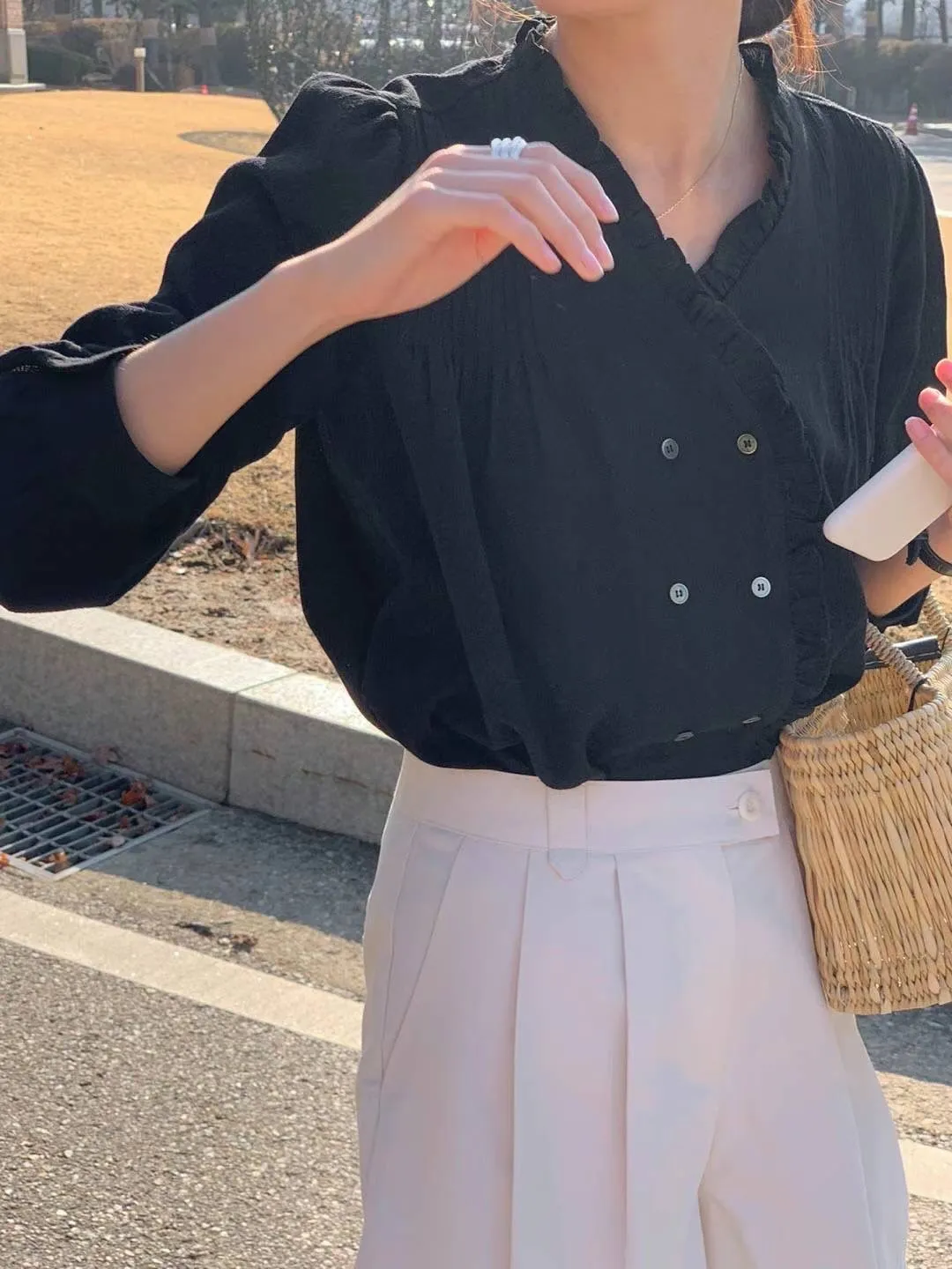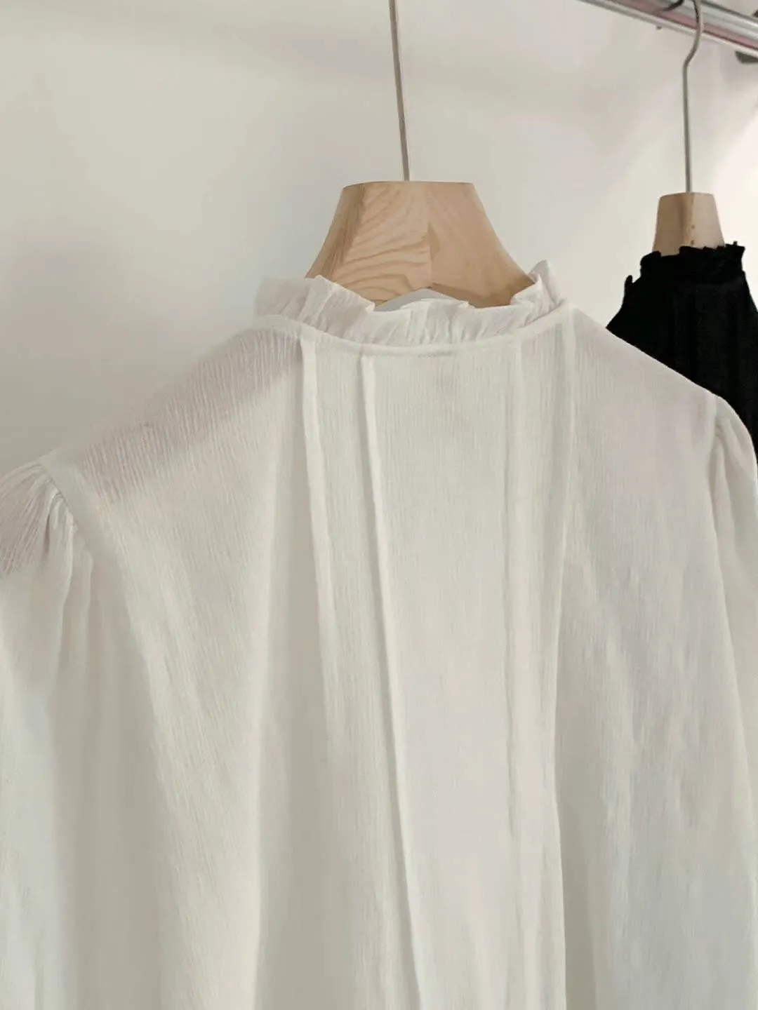 CM1013 超質感荷葉交叉V領美衣 白 黑 官網價$1350 線上價$1320