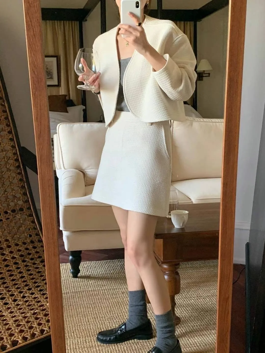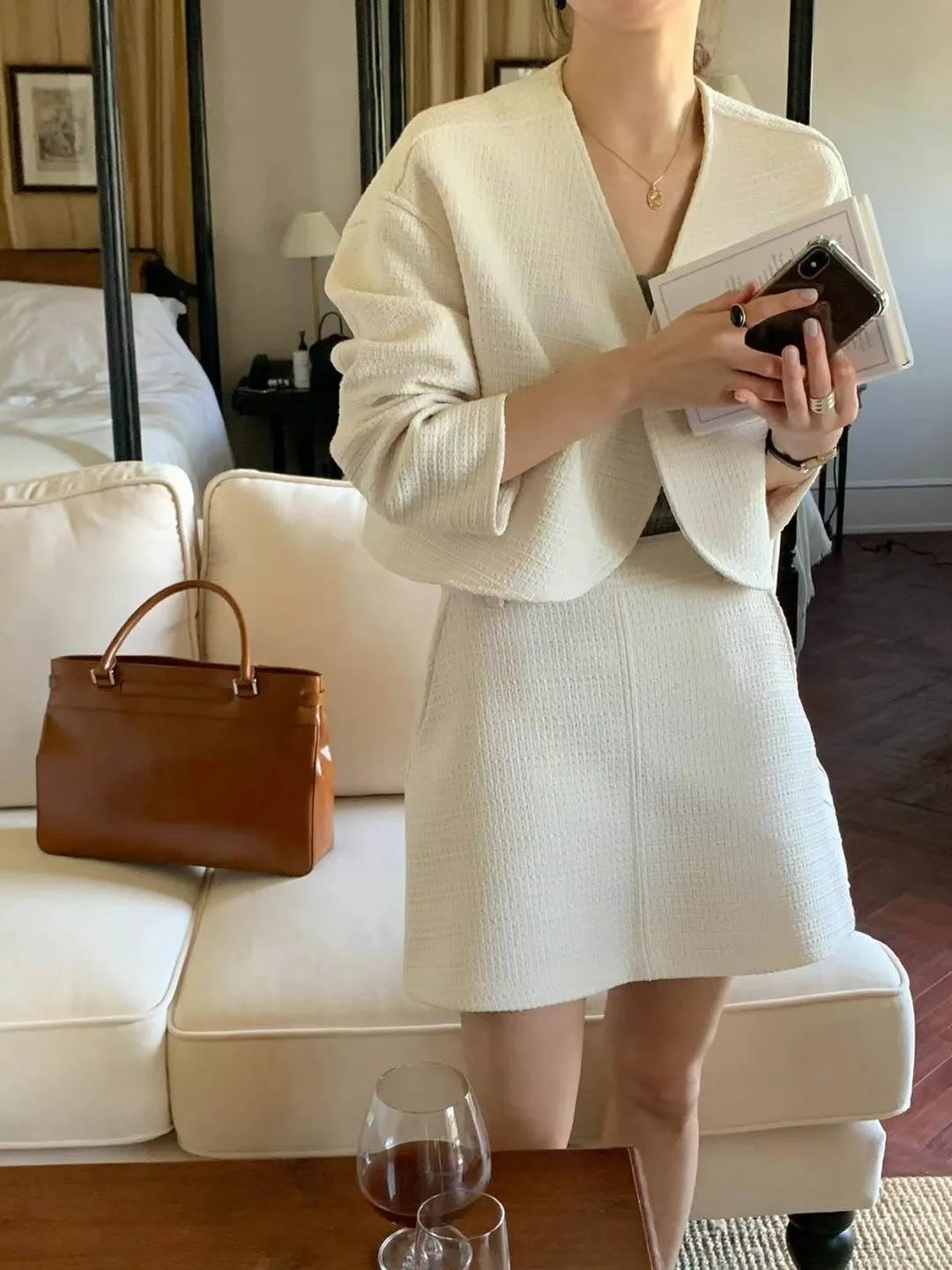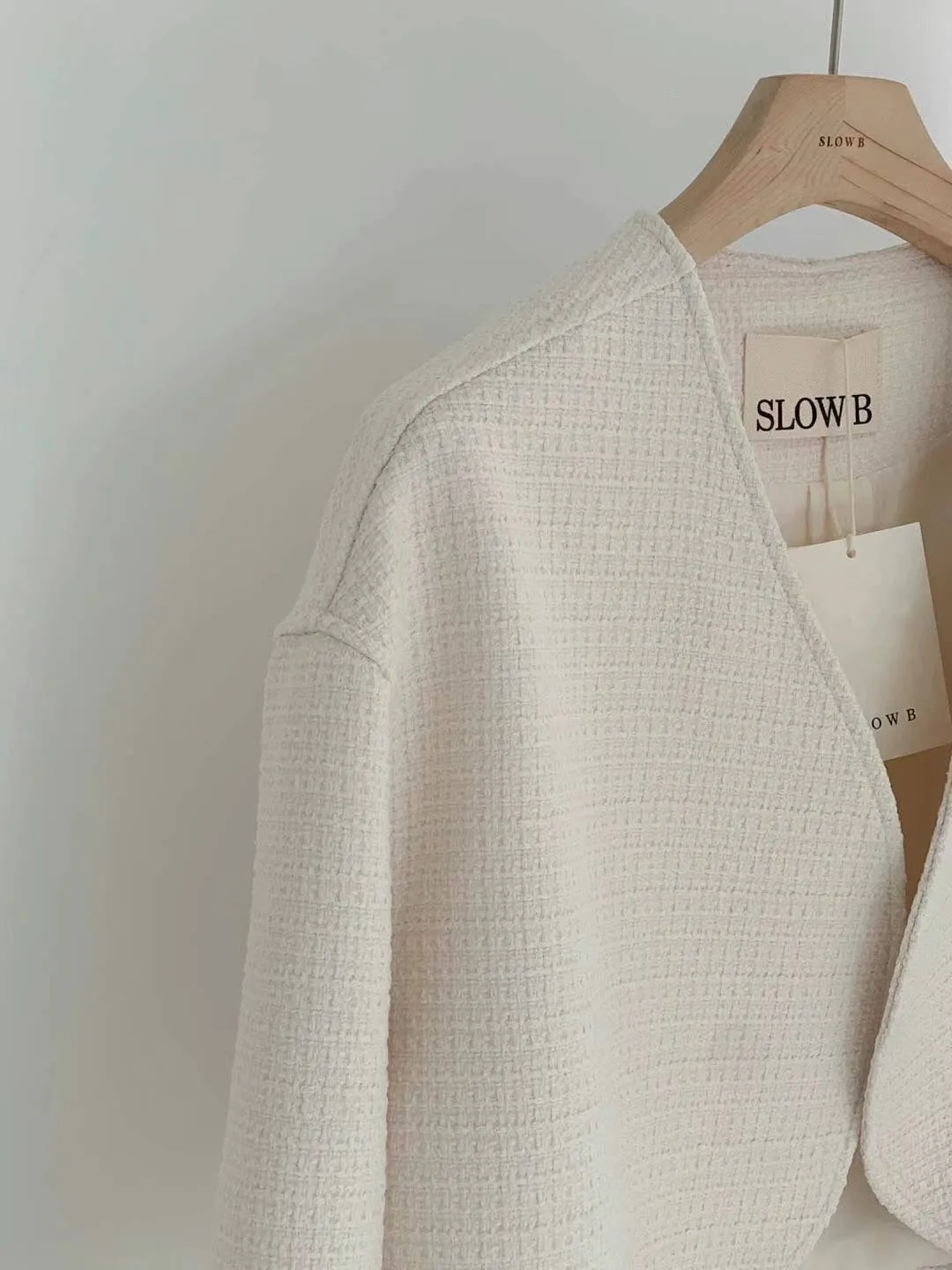 CM1018 套裝的小香風無釦外套 白 黑 官網價$1490 線上價$1460