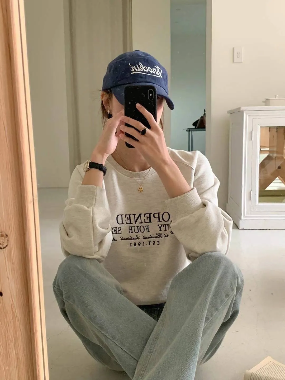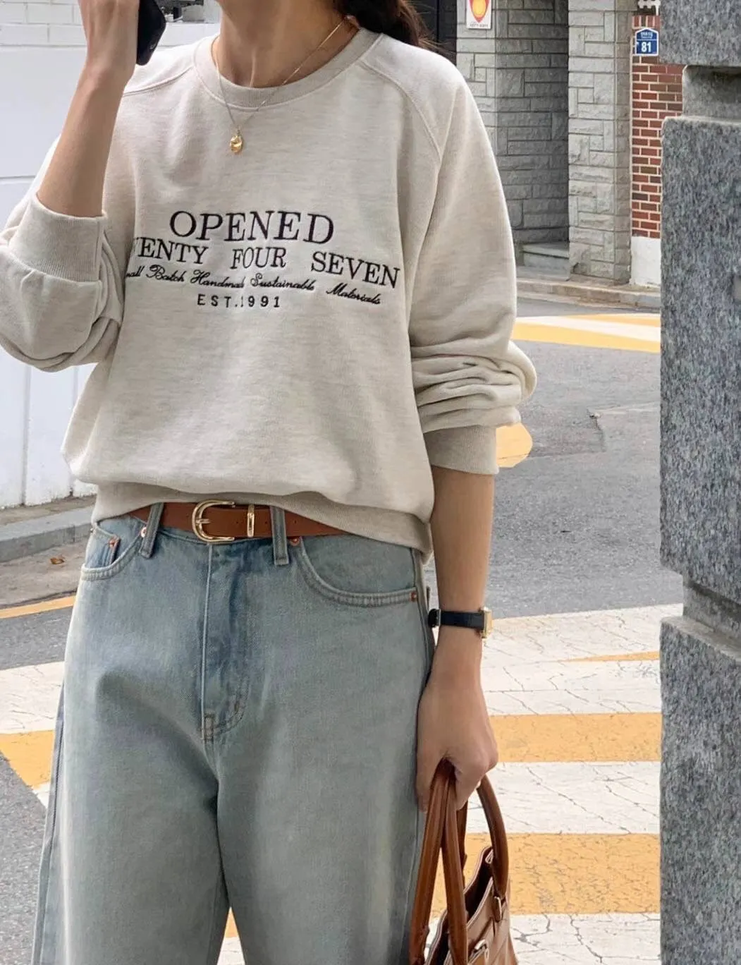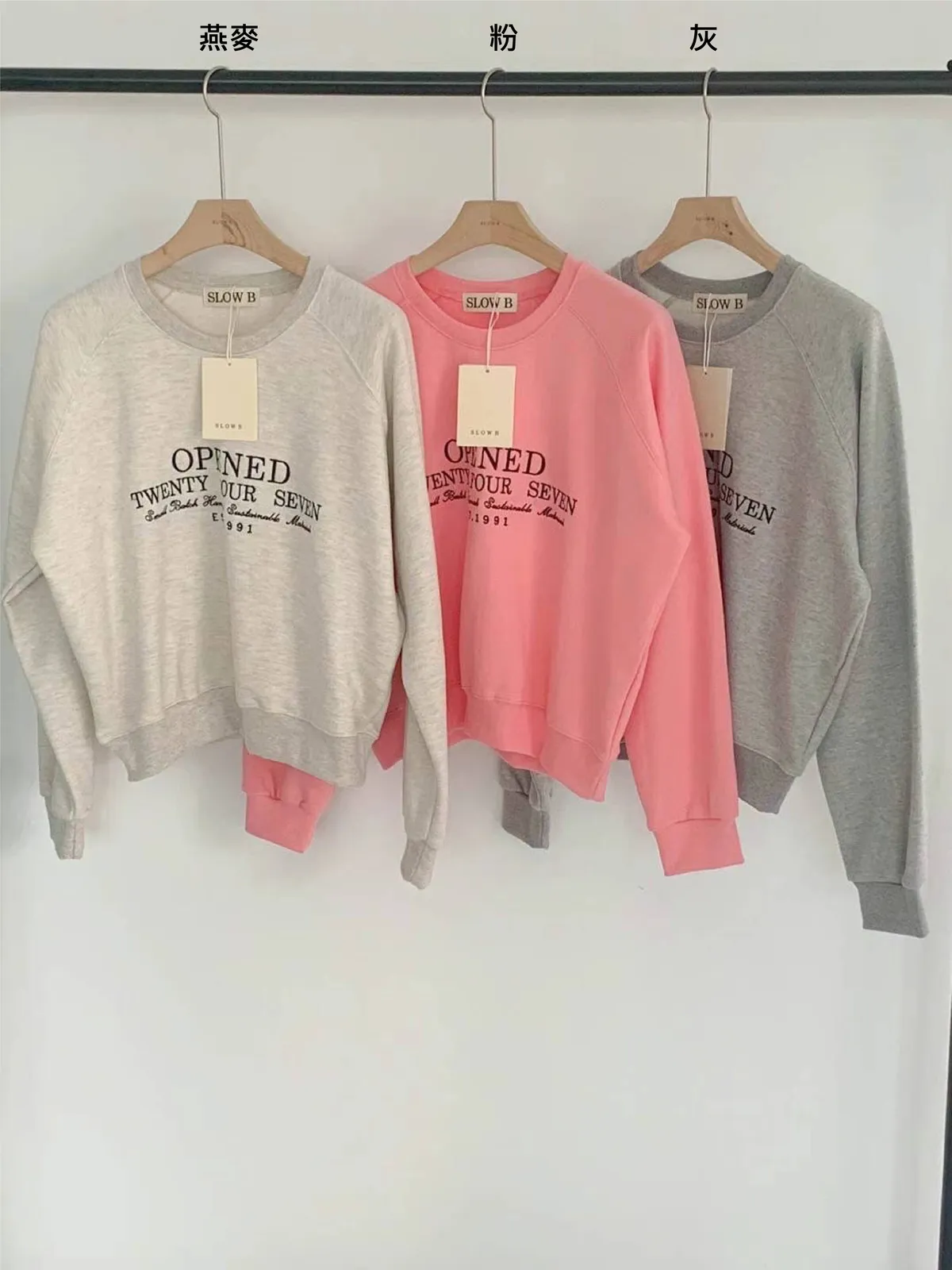 CM1023刺繡opened大學T 灰 粉 燕麥官網價$1220 線上價$1190