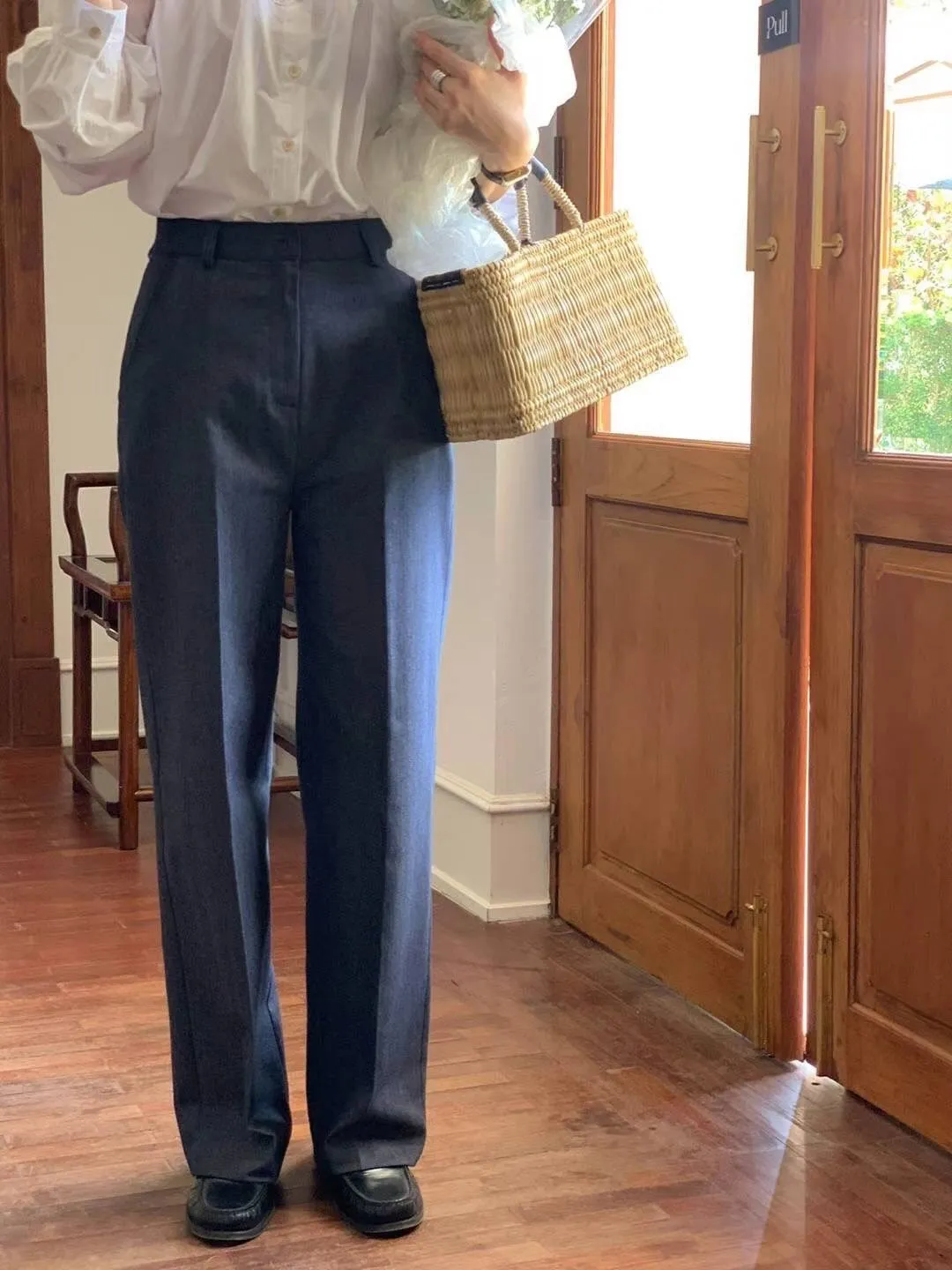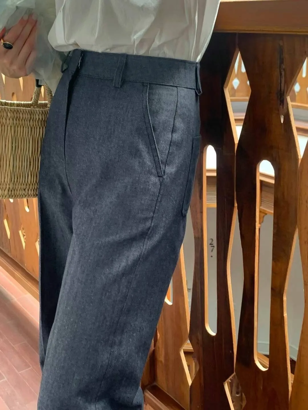 CM1027棉麻高級感長褲 米 藍 S M 官網價$1290 線上價$1260