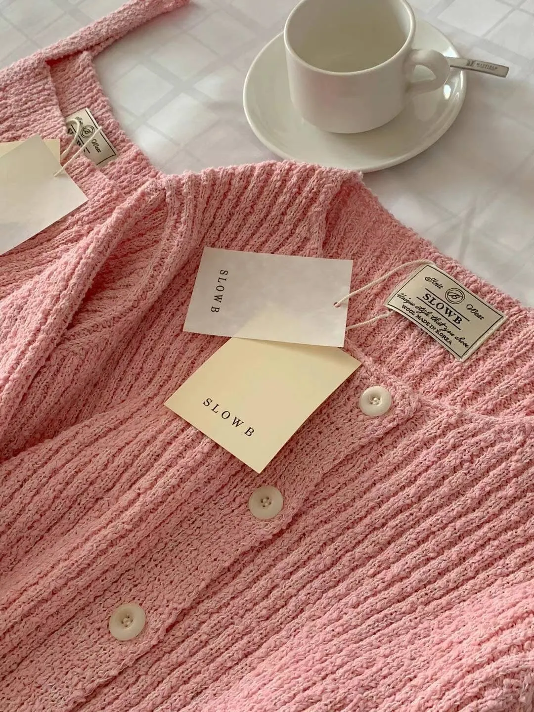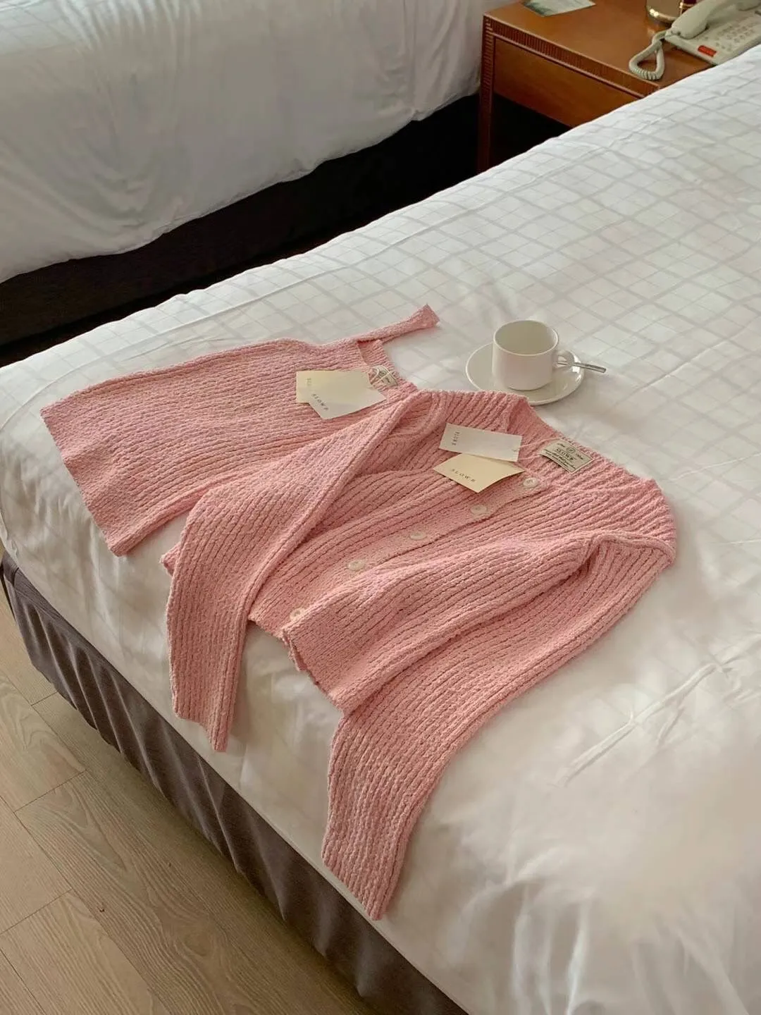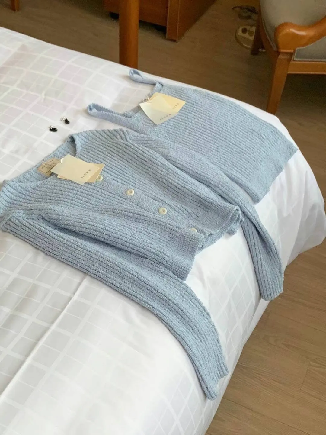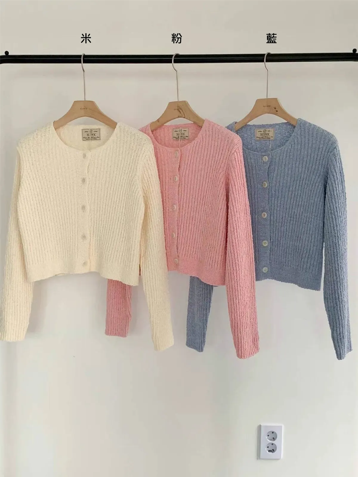 CM1033針織毛毛套裝組(外套+背心) 米 粉 藍 官網價$1699 線上價$1669