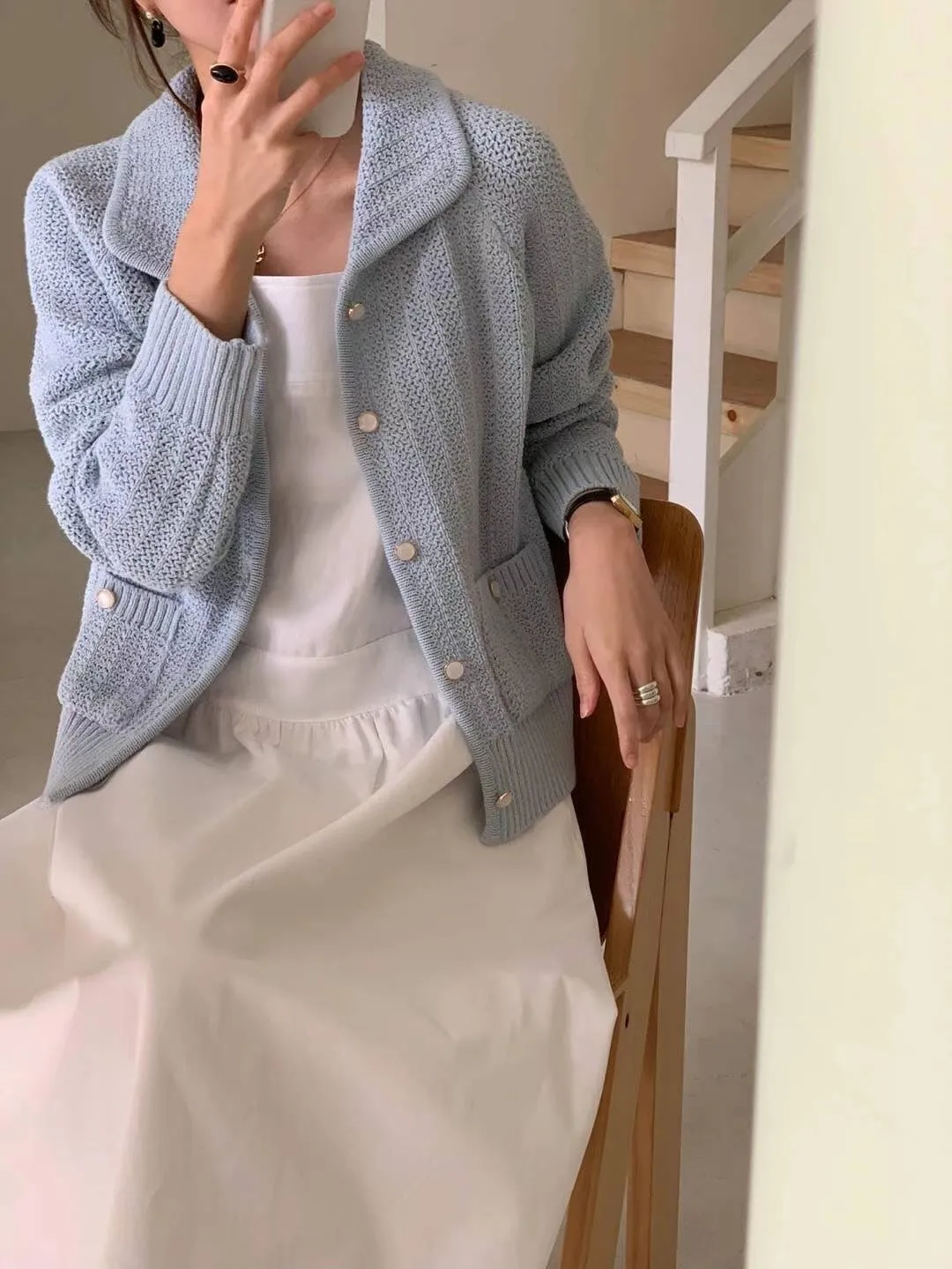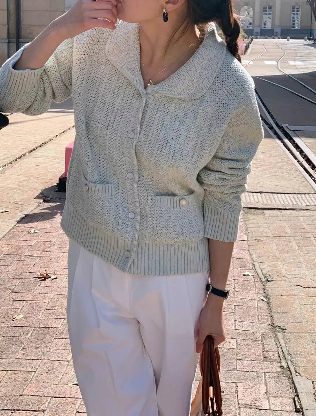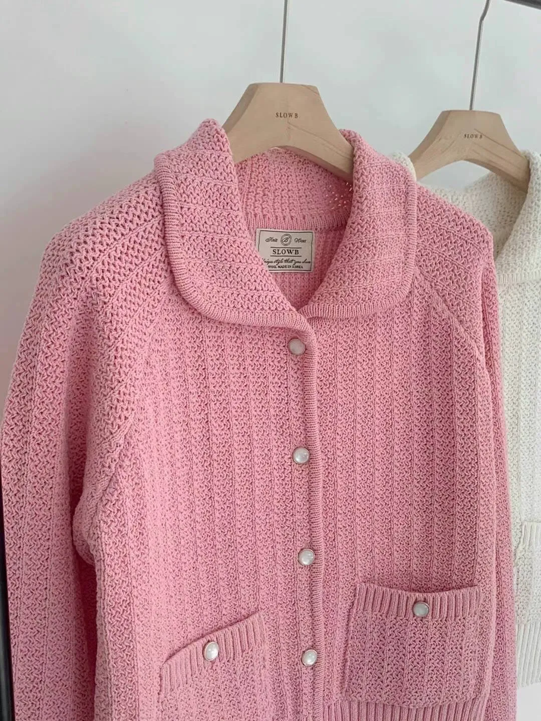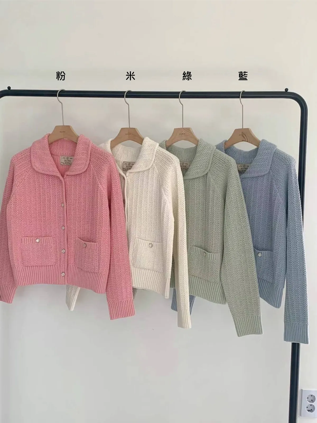 CM1034翻領雙口袋針織上衣外套 米 綠 藍 粉 官網價$1450 線上價$1420