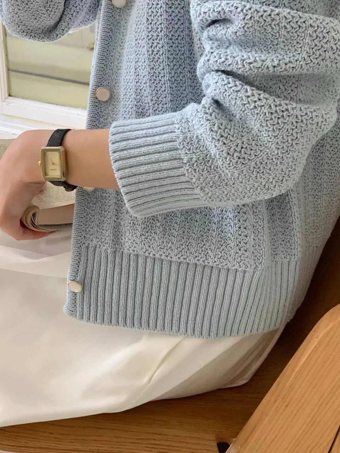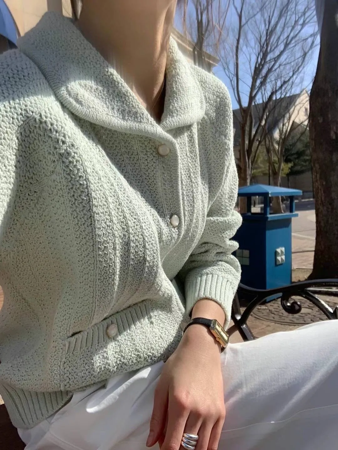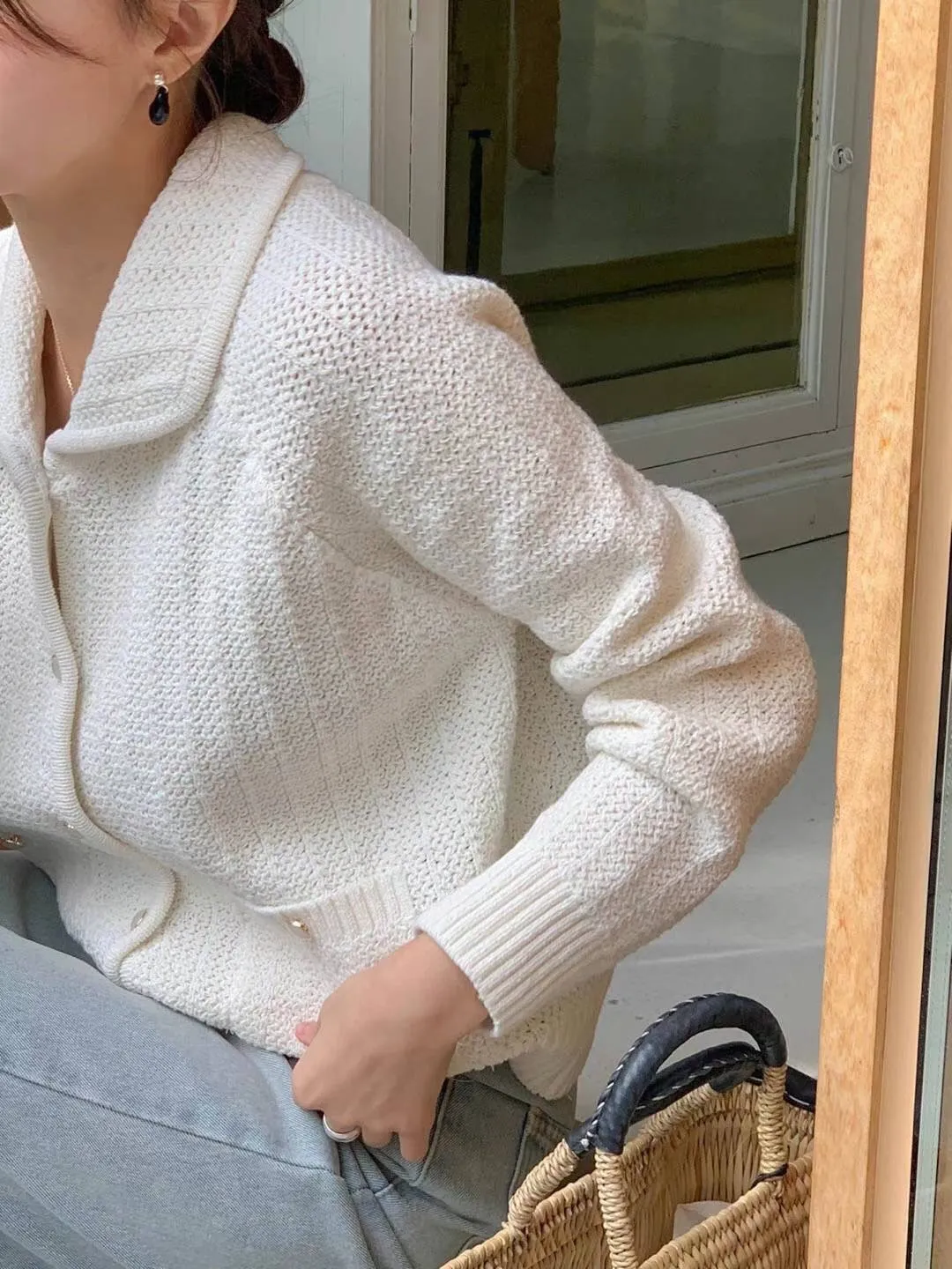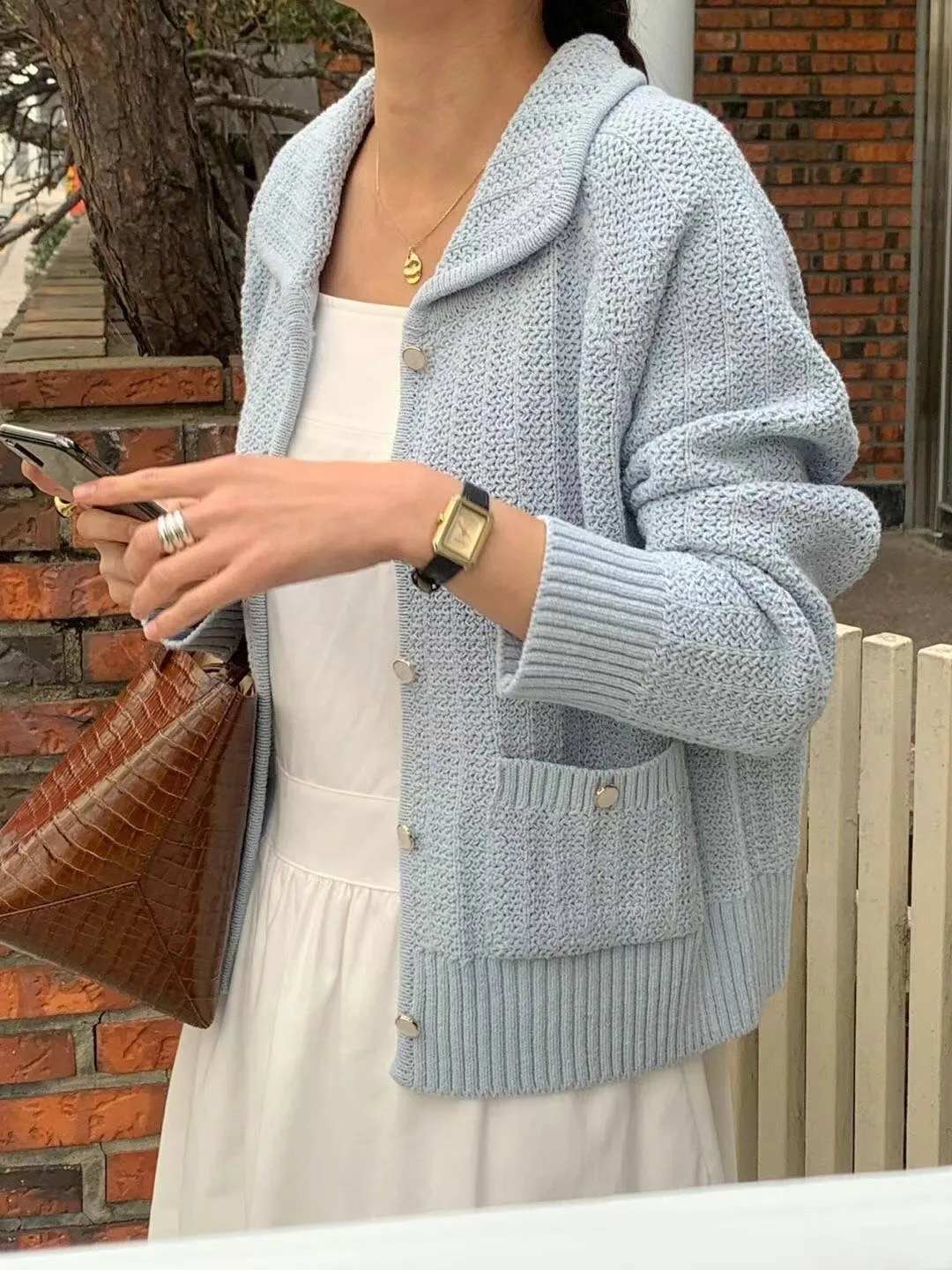 CM1034翻領雙口袋針織上衣外套 米 綠 藍 粉 官網價$1450 線上價$1420