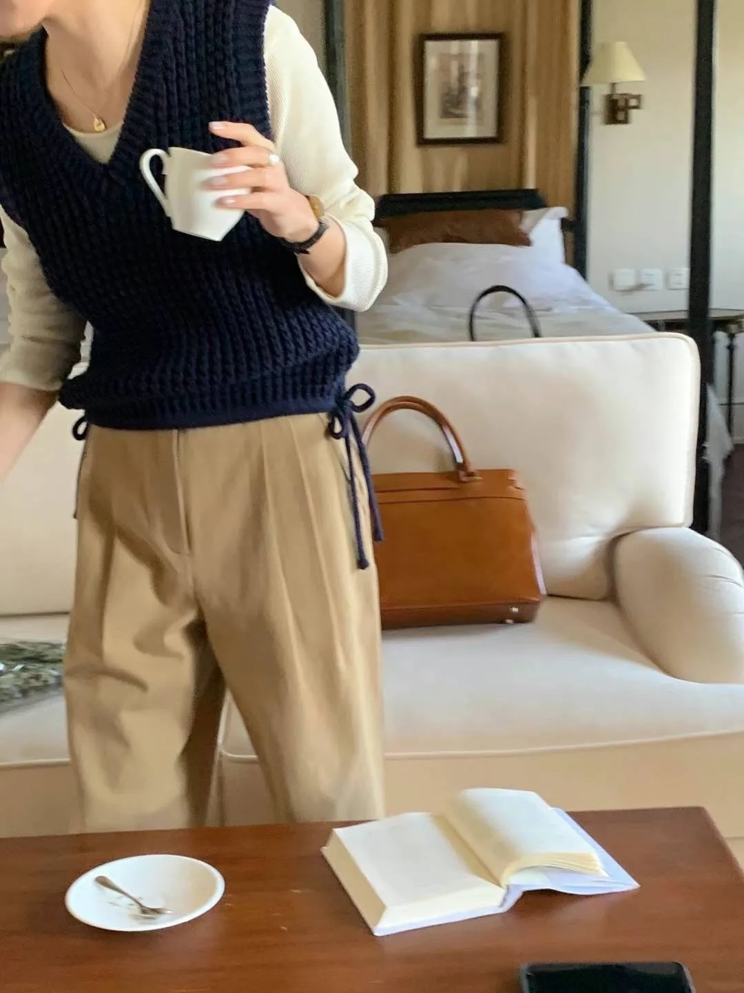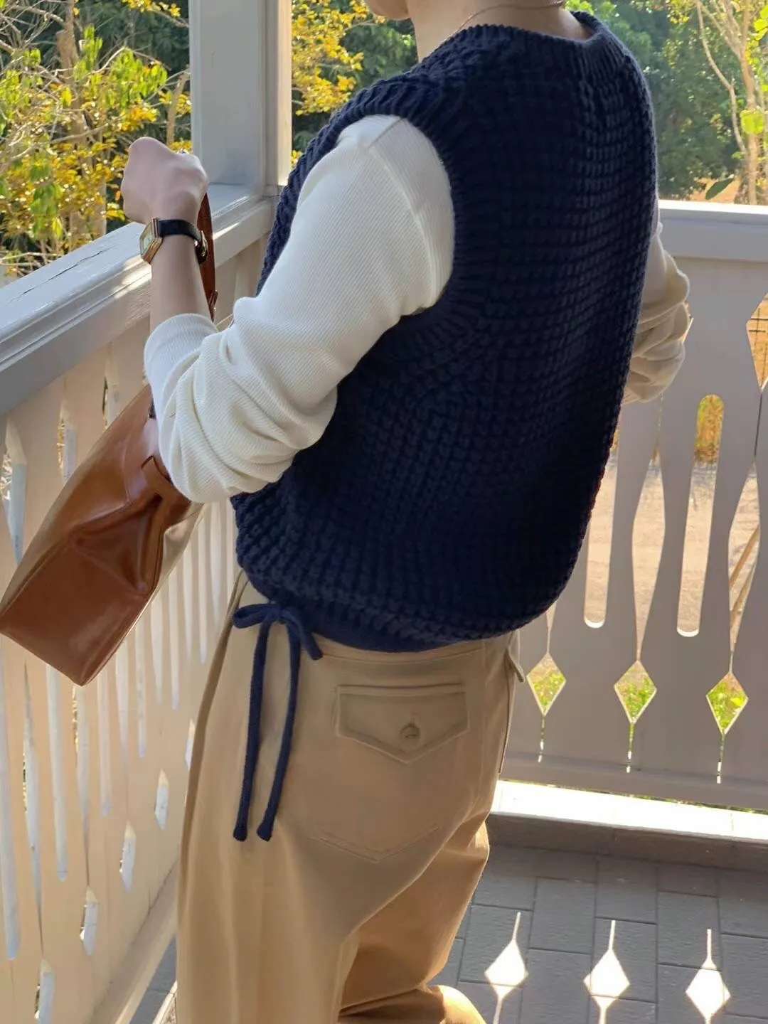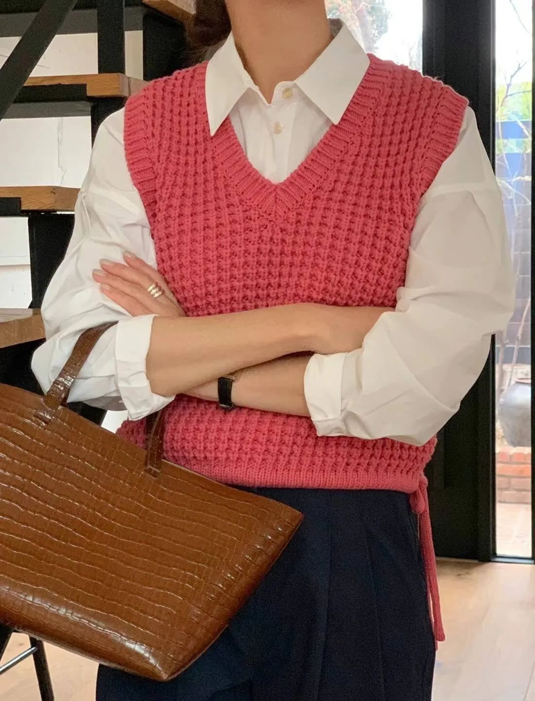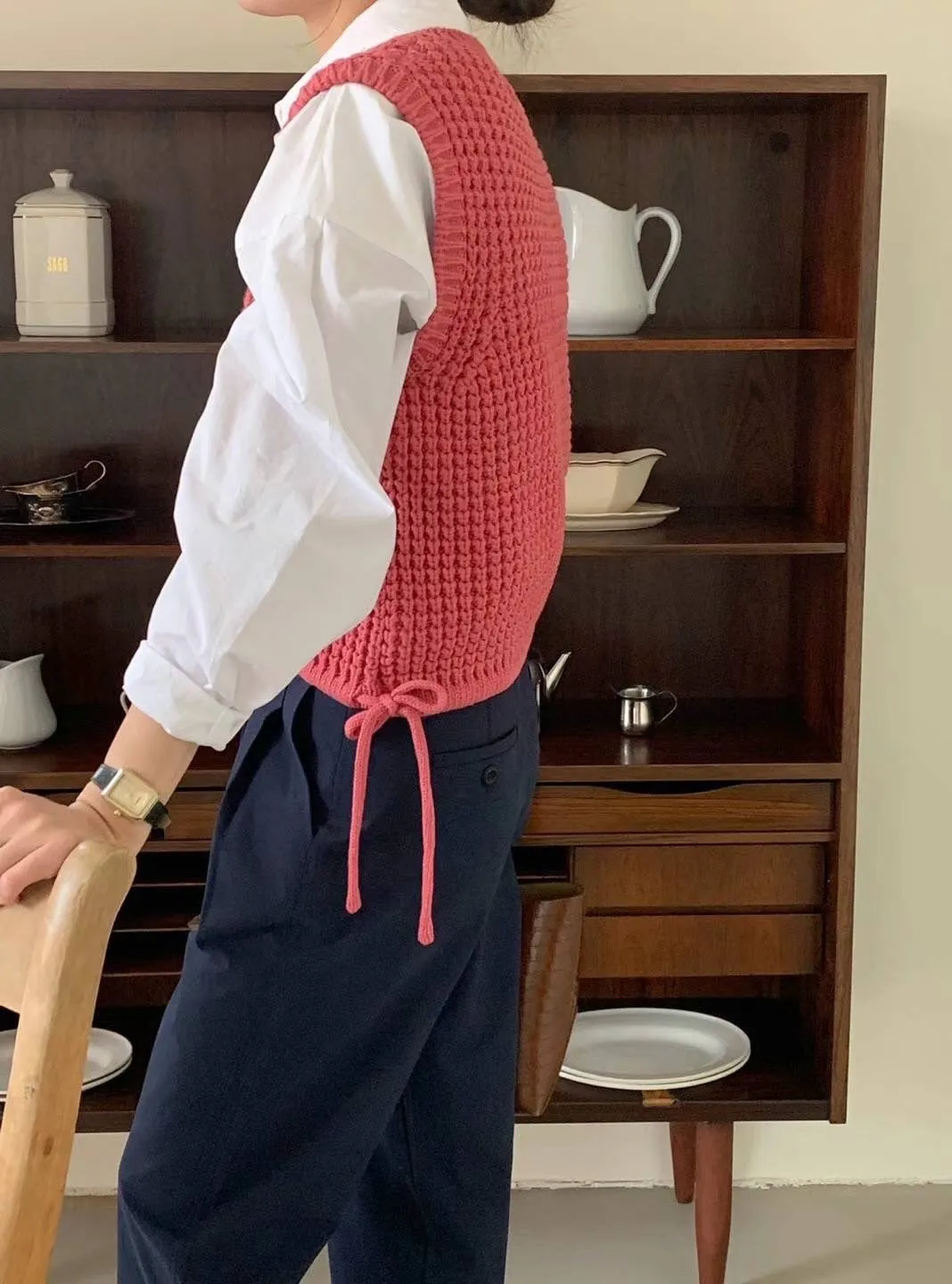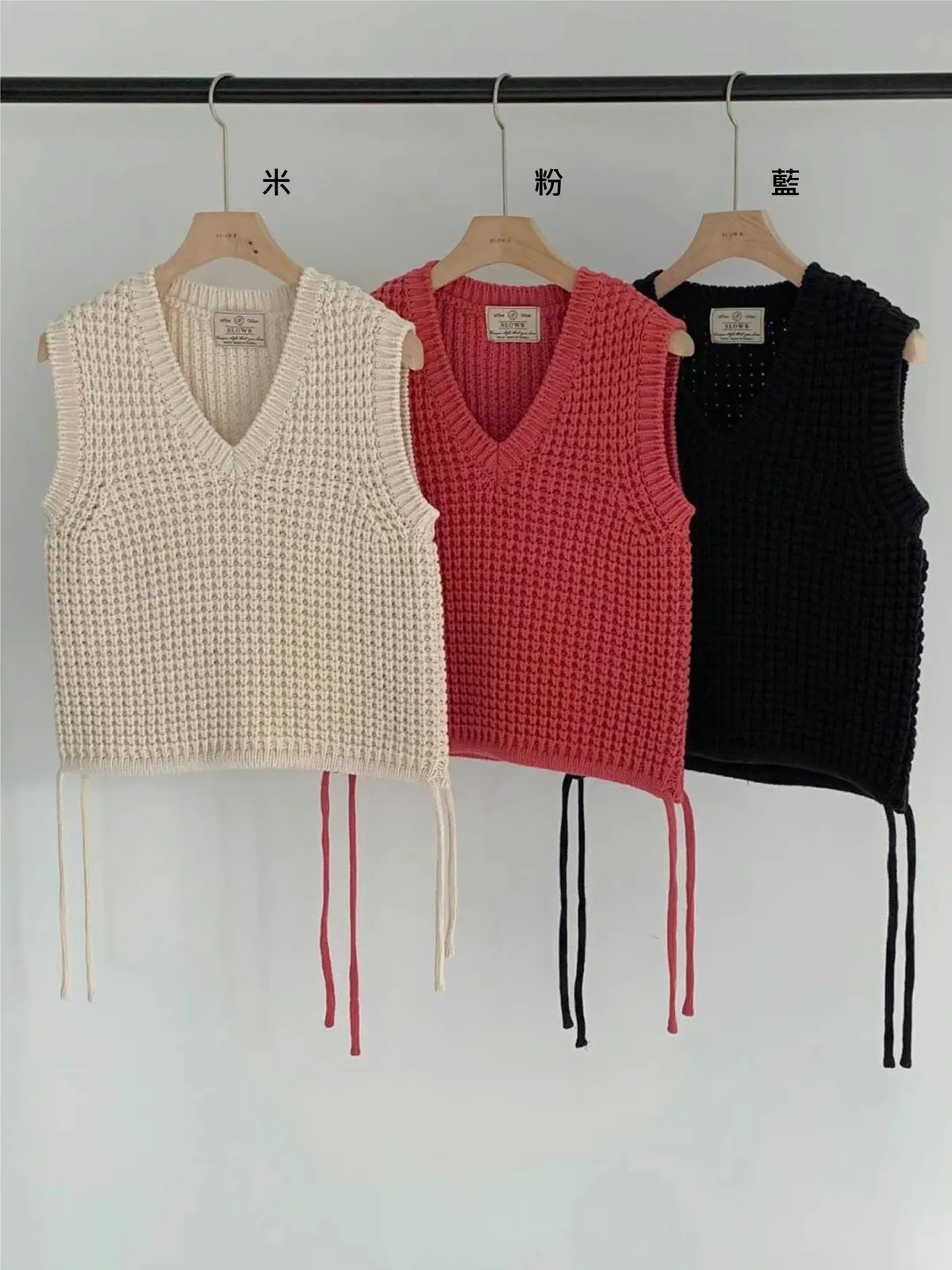 CM1035雙側綁帶V領針織背心 米 粉 藍 官網價$1120 線上價$1090