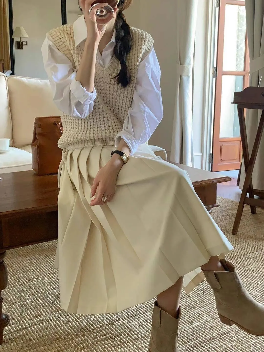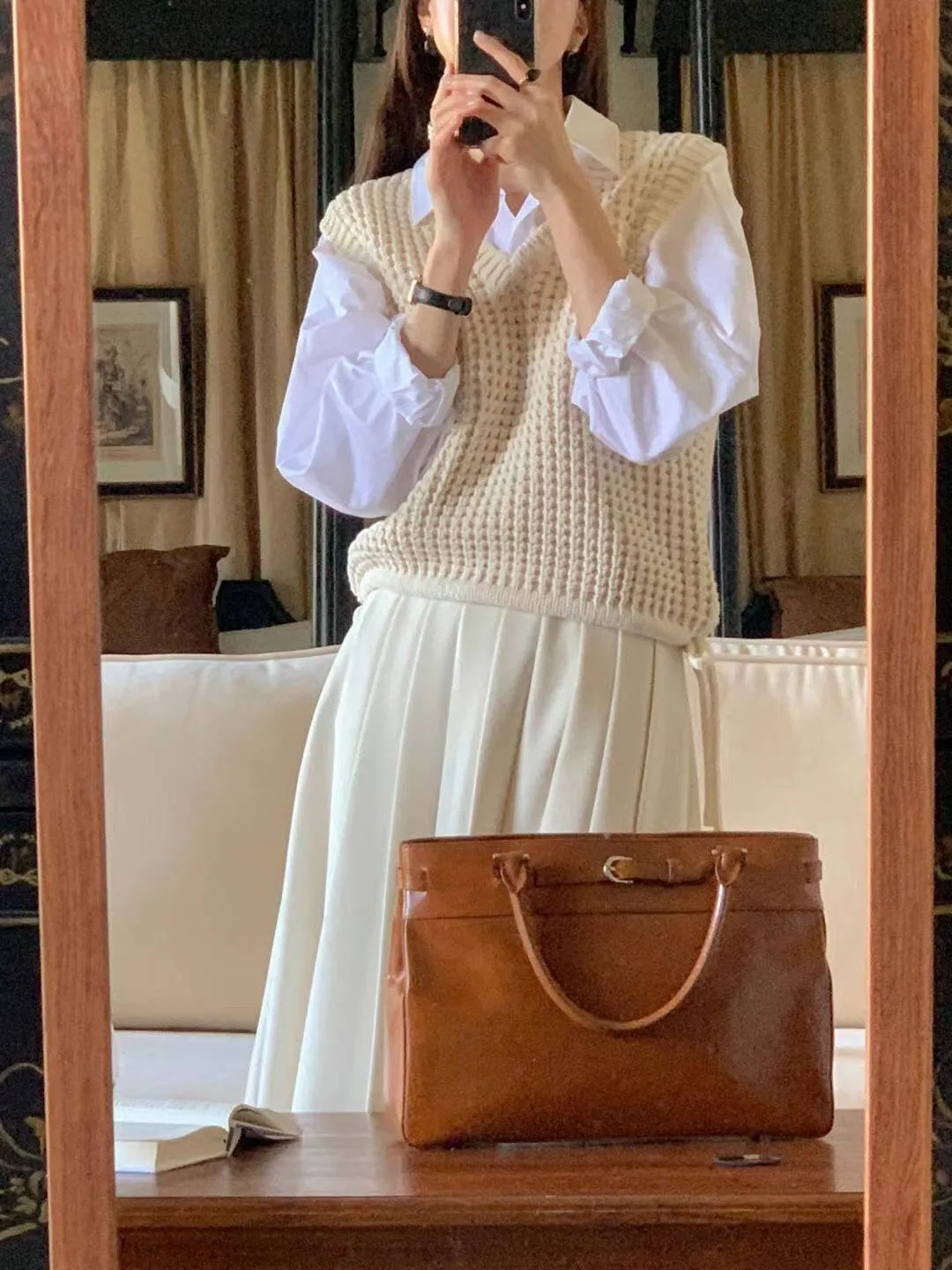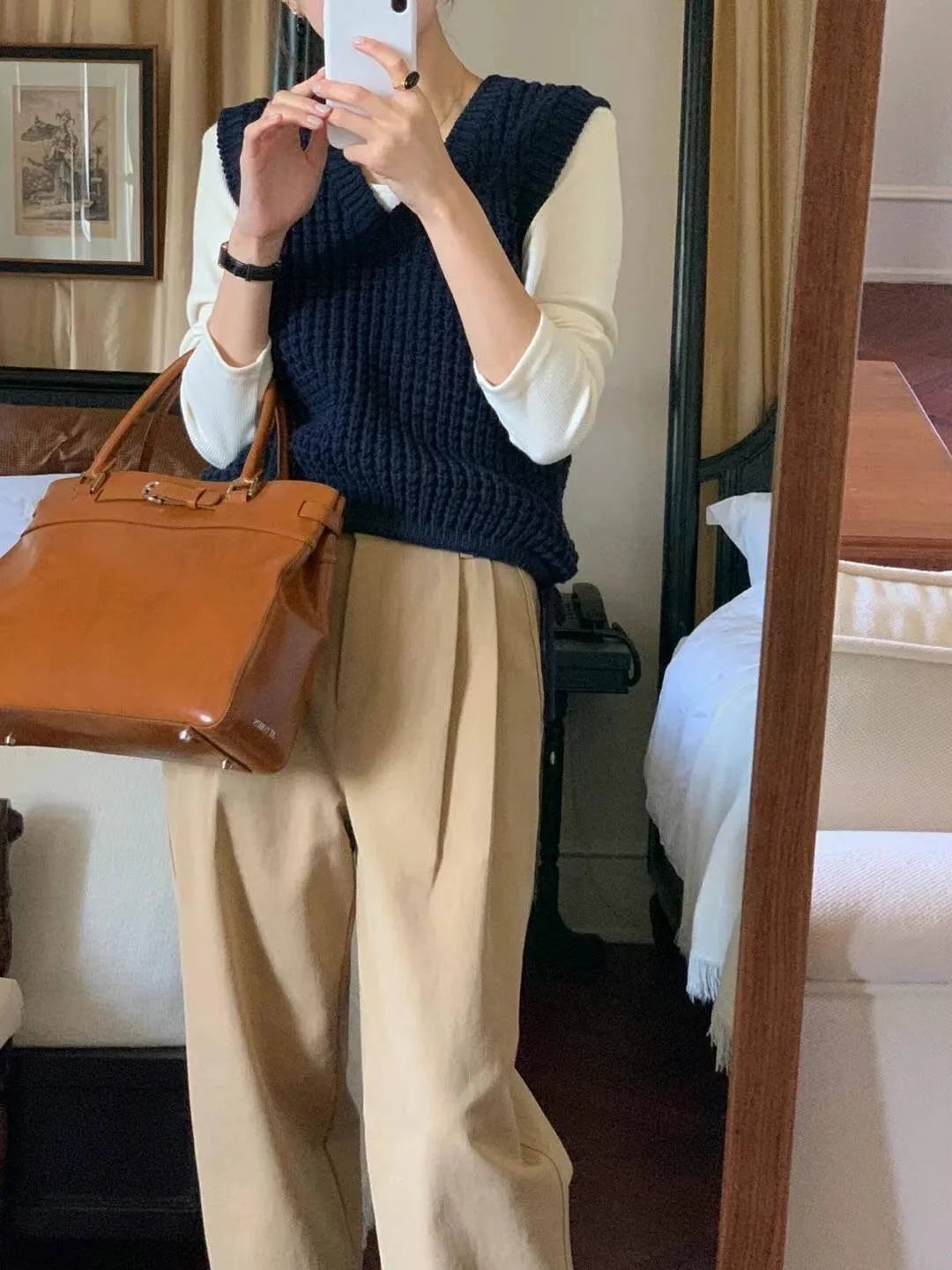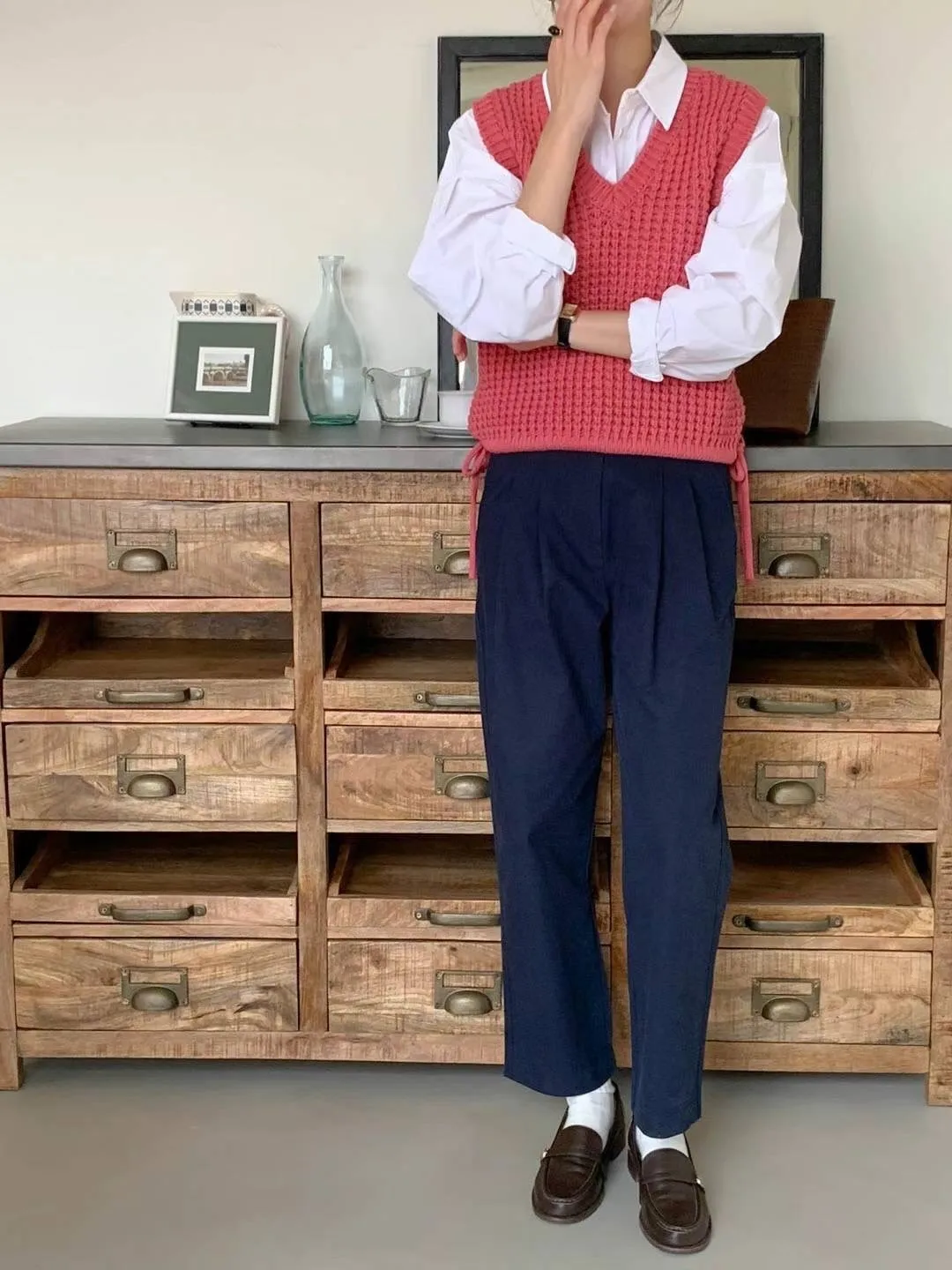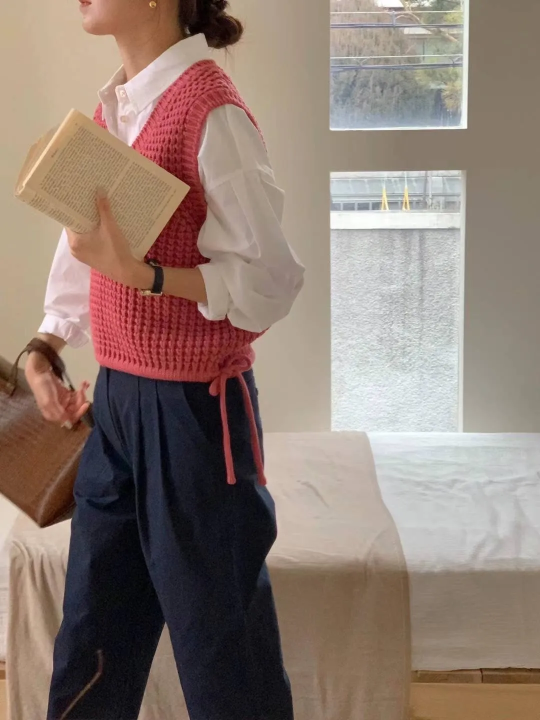 CM1035雙側綁帶V領針織背心 米 粉 藍 官網價$1120 線上價$1090