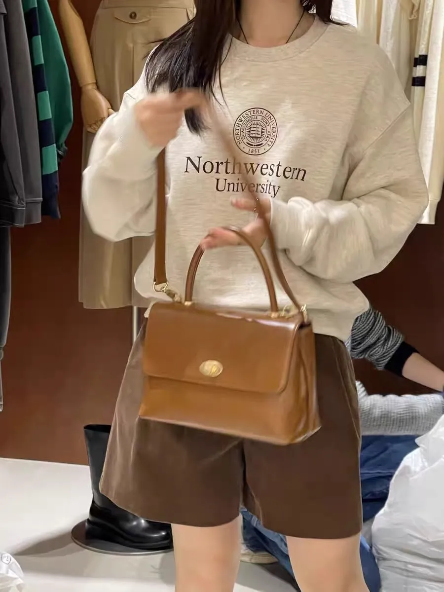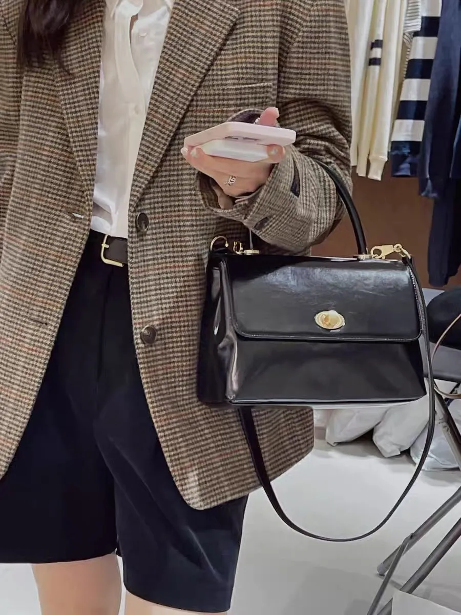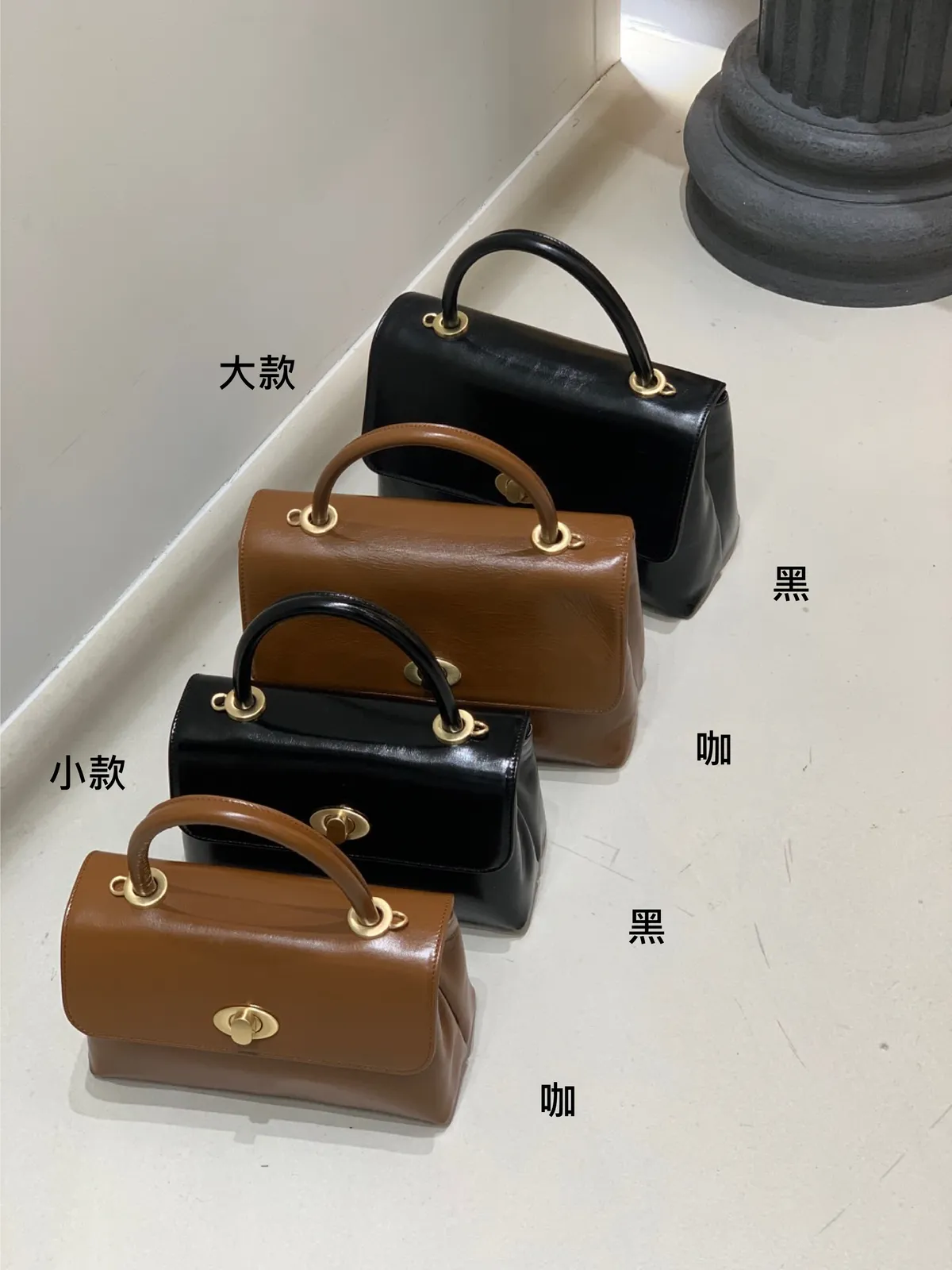 真牛皮 轉釦閉合 可手提可肩背 質感皮革自然光澤色調 可正式可休閒