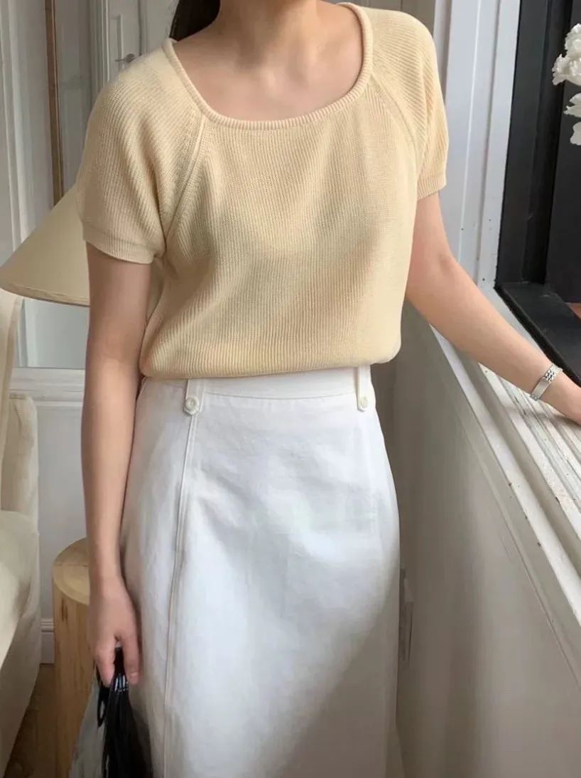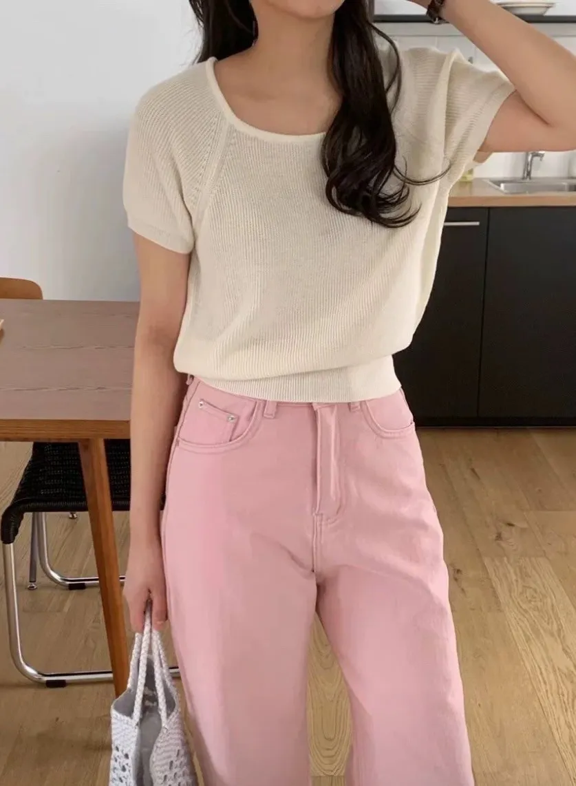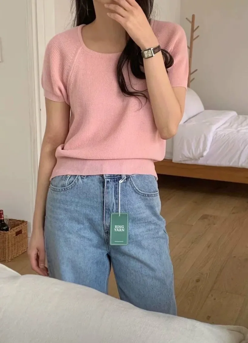 CM1078馬卡龍大U領領針織上衣 白 黑 綠 黃 粉 官網價$450 線上價$420