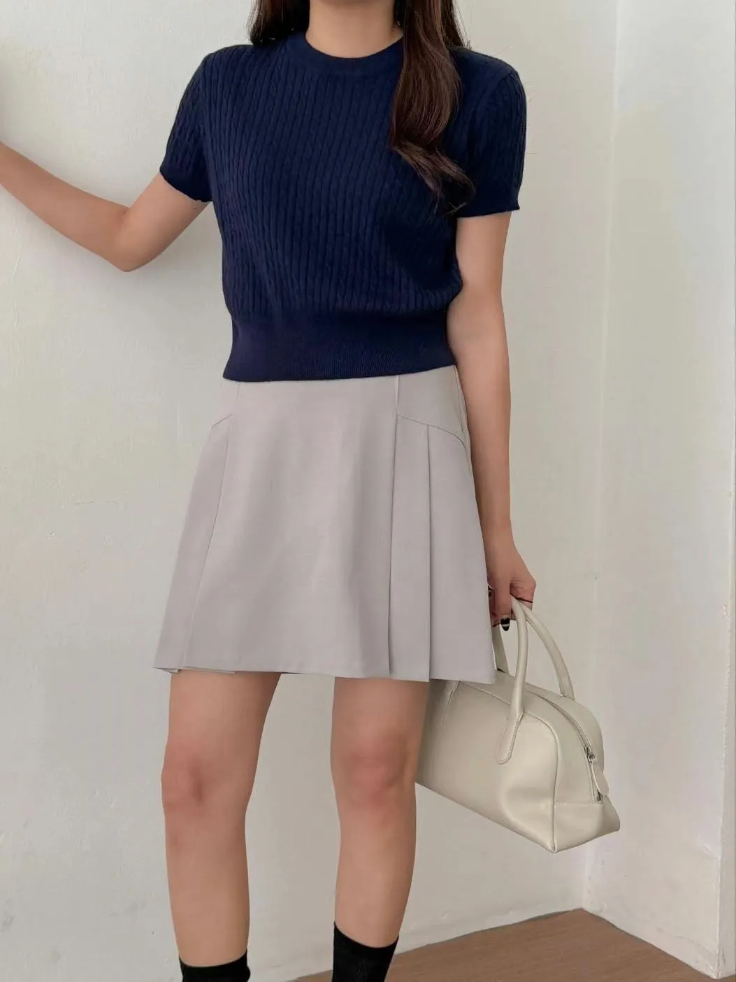 CM1082雪紡薄款側百褶短裙 米 灰 黑 官網價$520 線上價$490