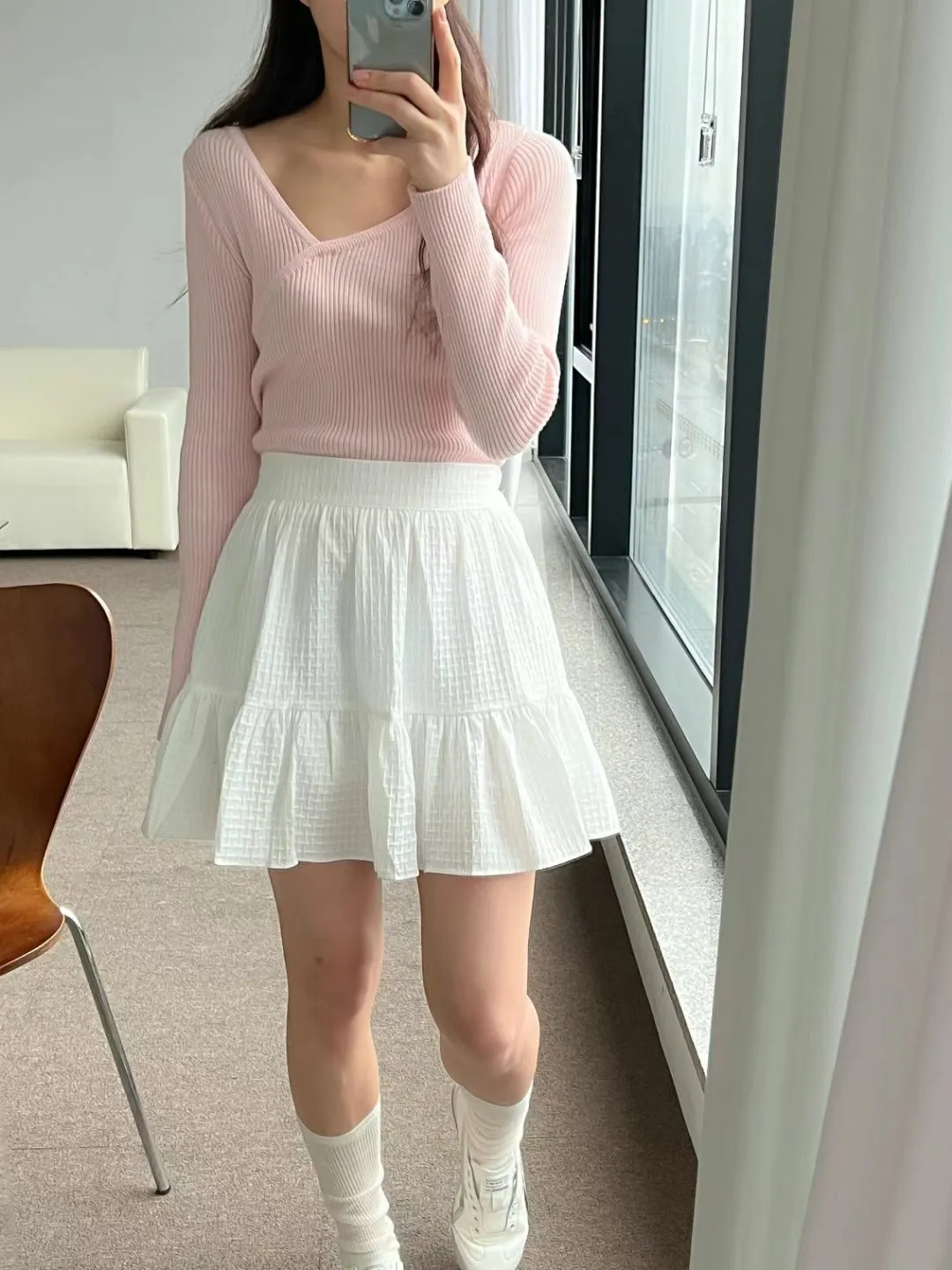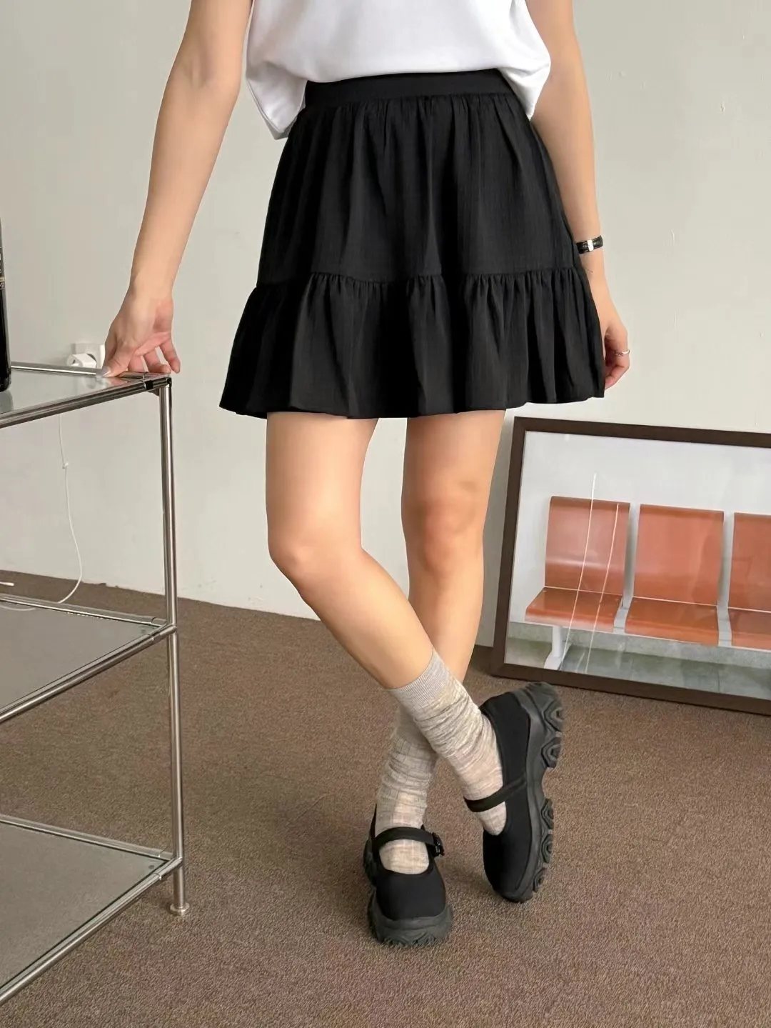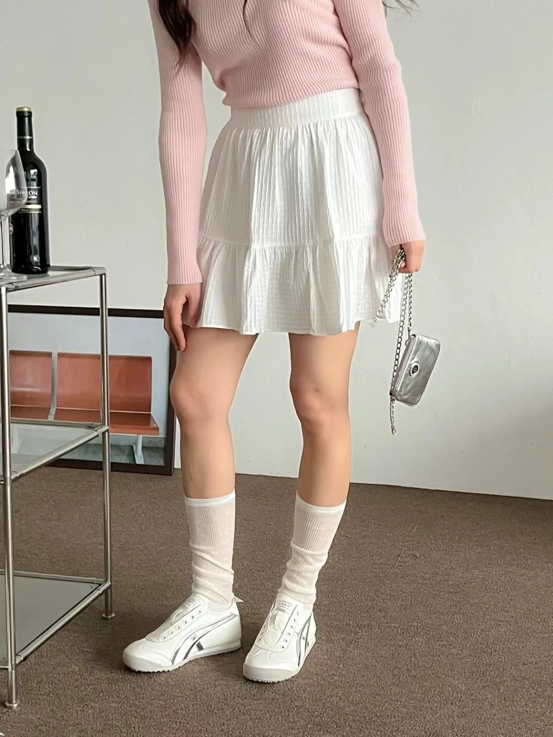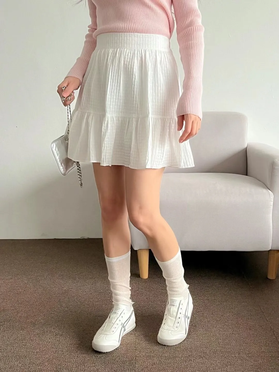 CM1084隱約格紋蛋糕褲裙 白 黑 官網價$550 線上價$520