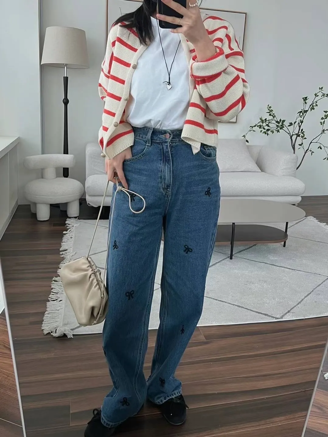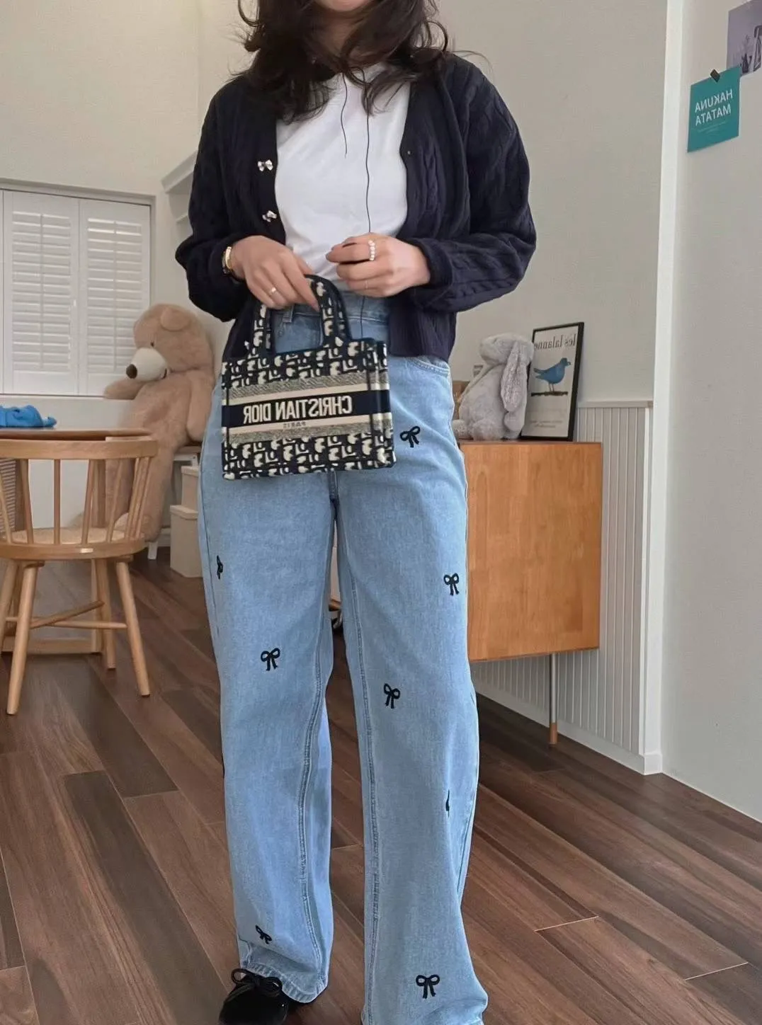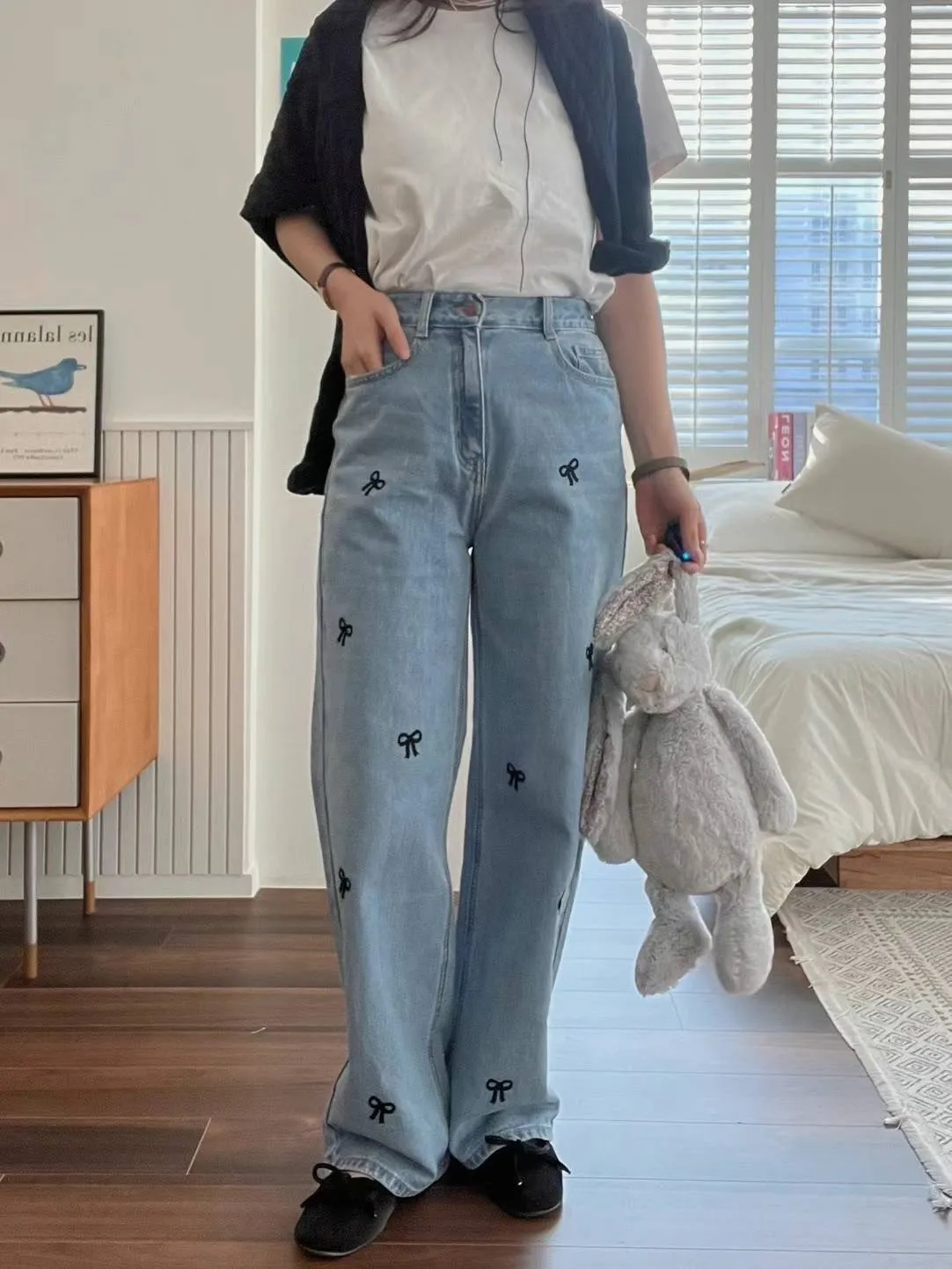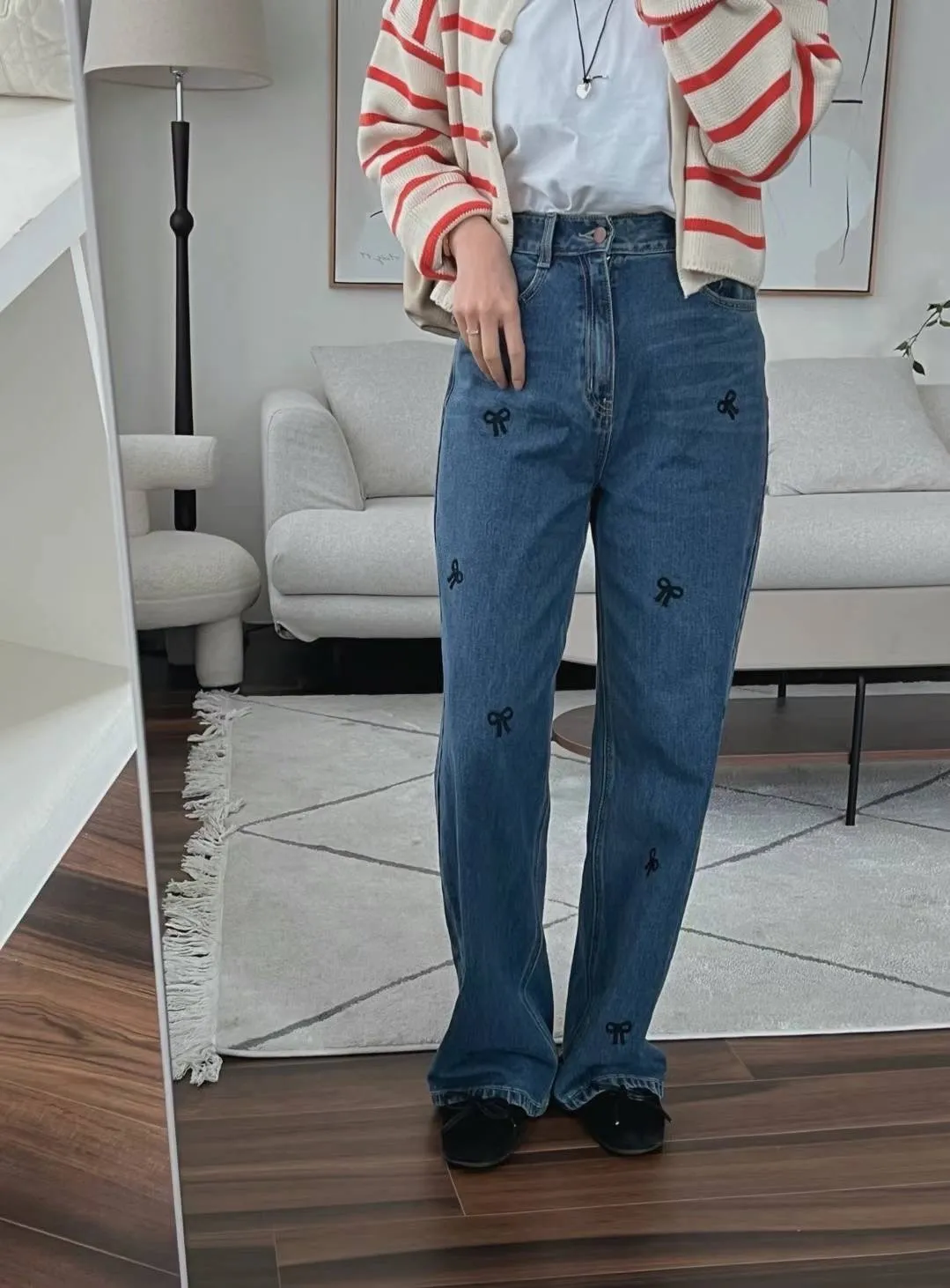 CM1088刺繡蝴蝶結牛仔長褲 淺藍 深藍 S M L官網價$1190 線上價$1160