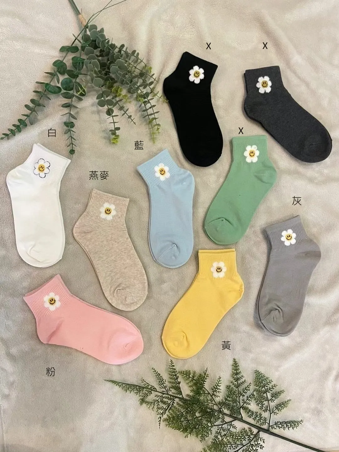CM117好心情微笑小花襪 灰 藍 白 燕麥 黃 粉 $39 包色$210