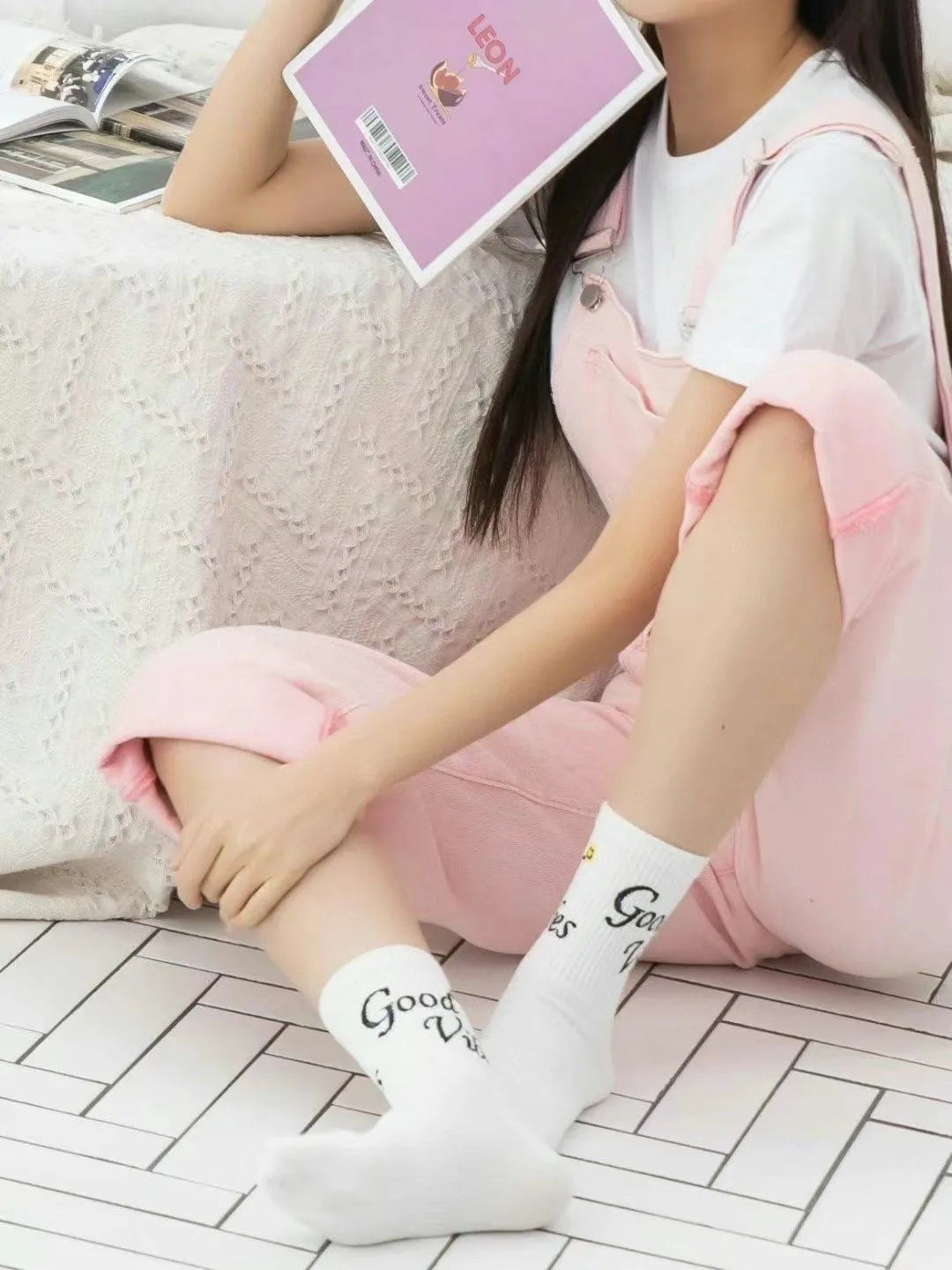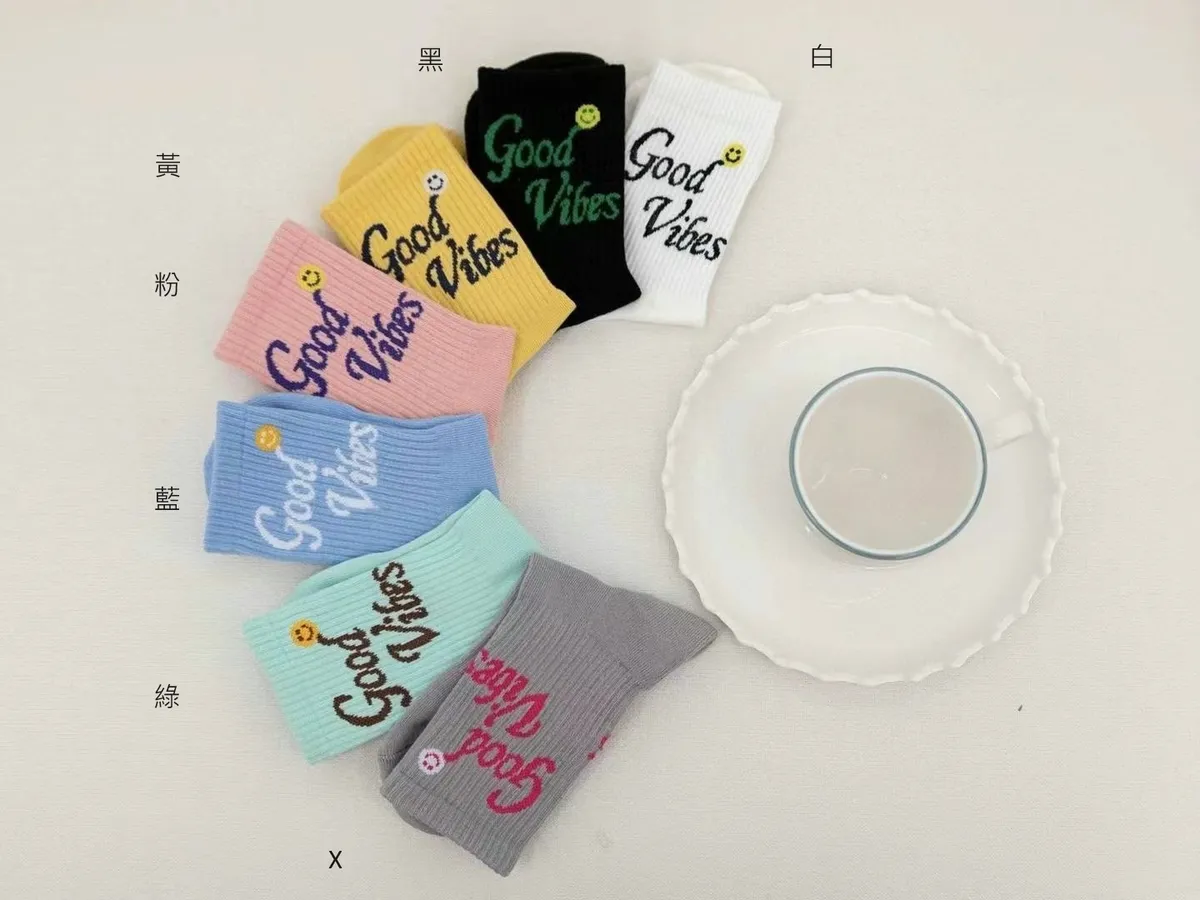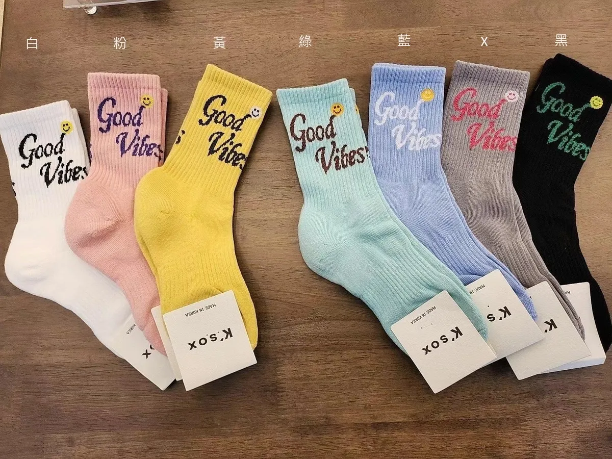 CM118加厚英文good vibe運動襪 白 黃 粉 黑 藍 綠 $77 包色$435
