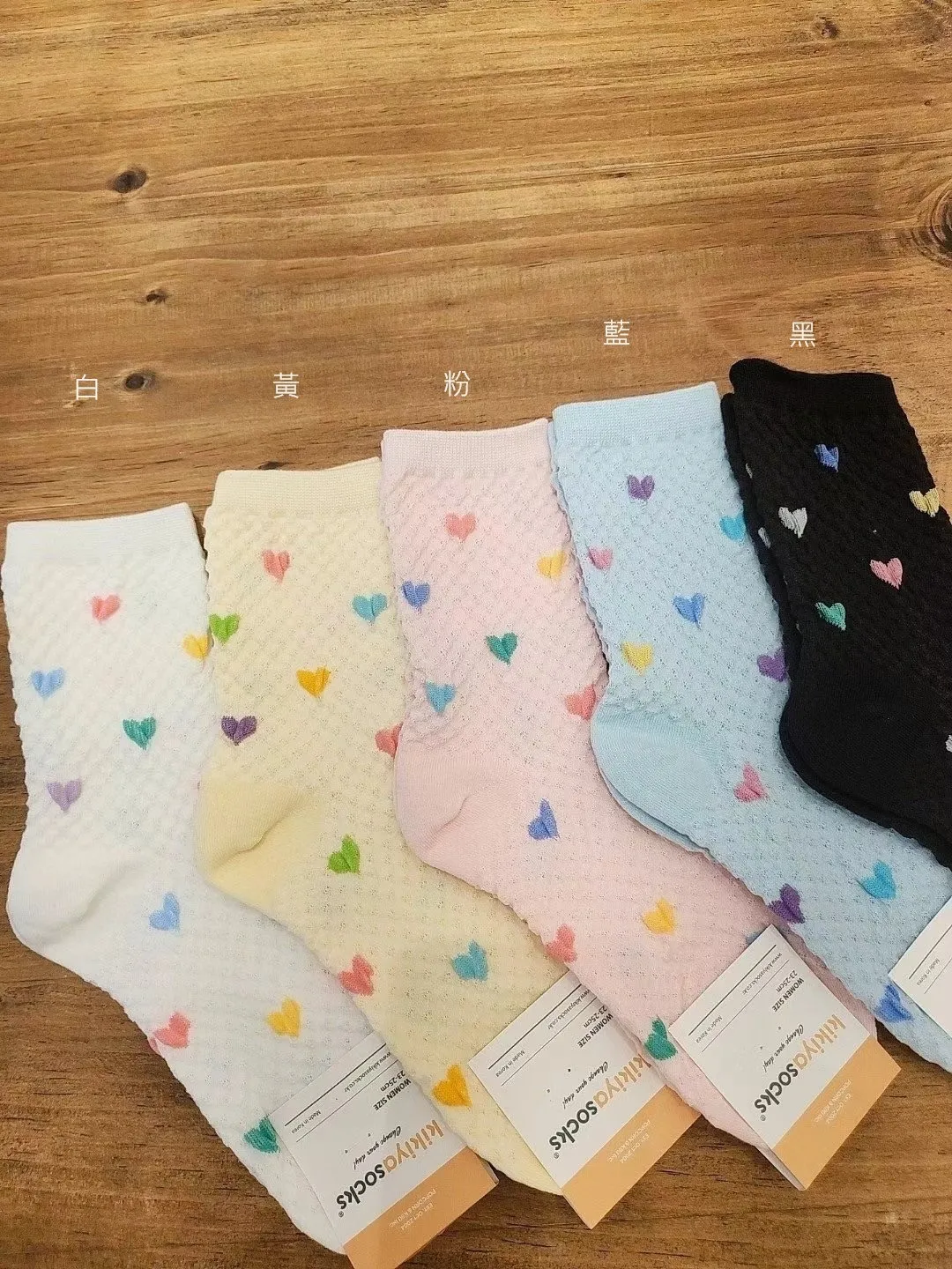 CM121彩虹色蠟筆小愛心襪 白 黃 粉 藍 黑 $39 包色$175