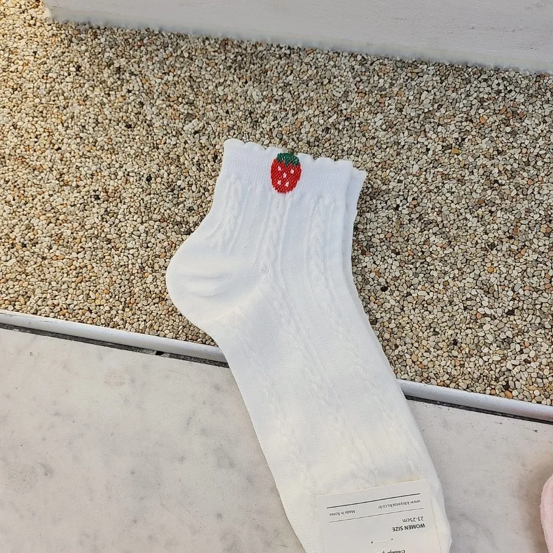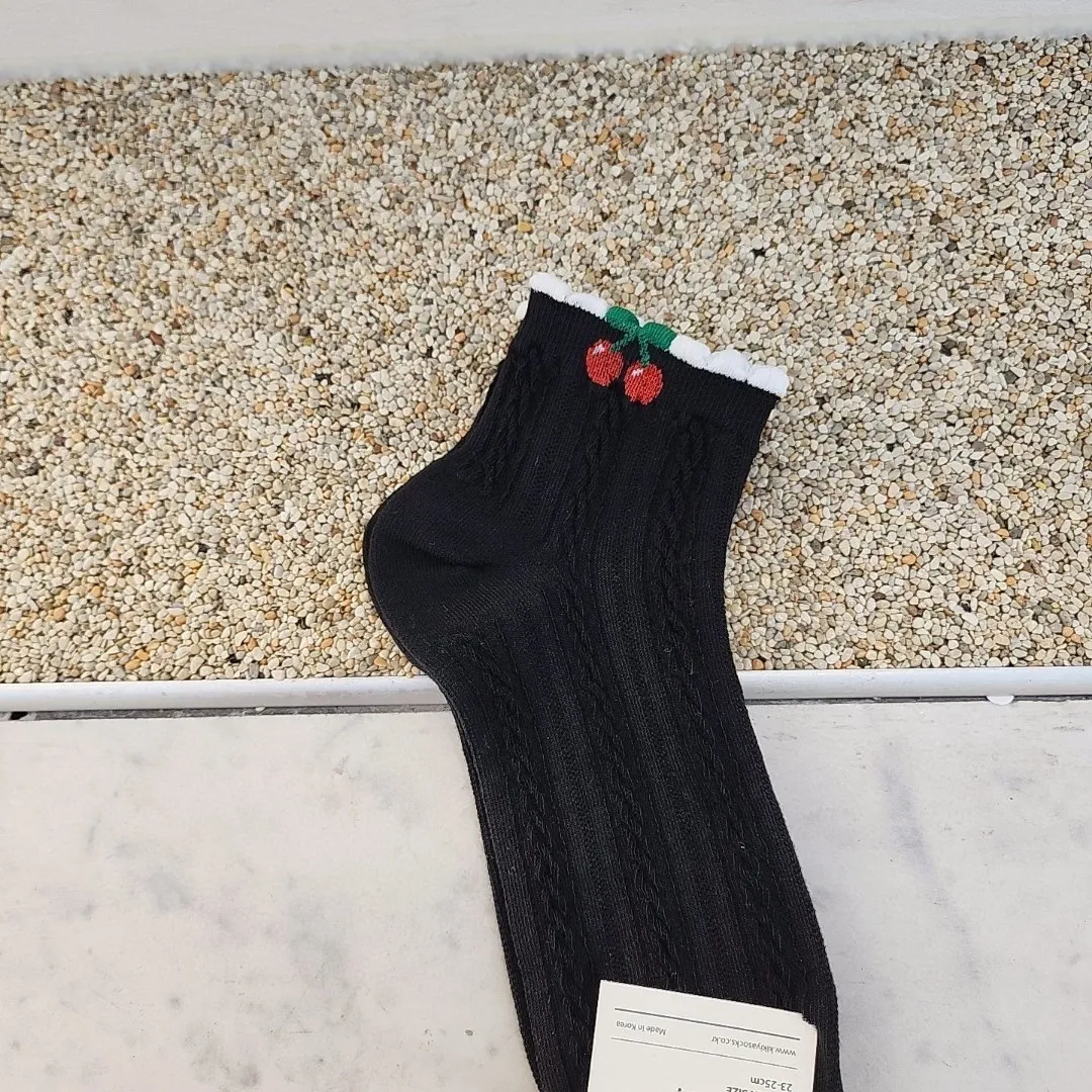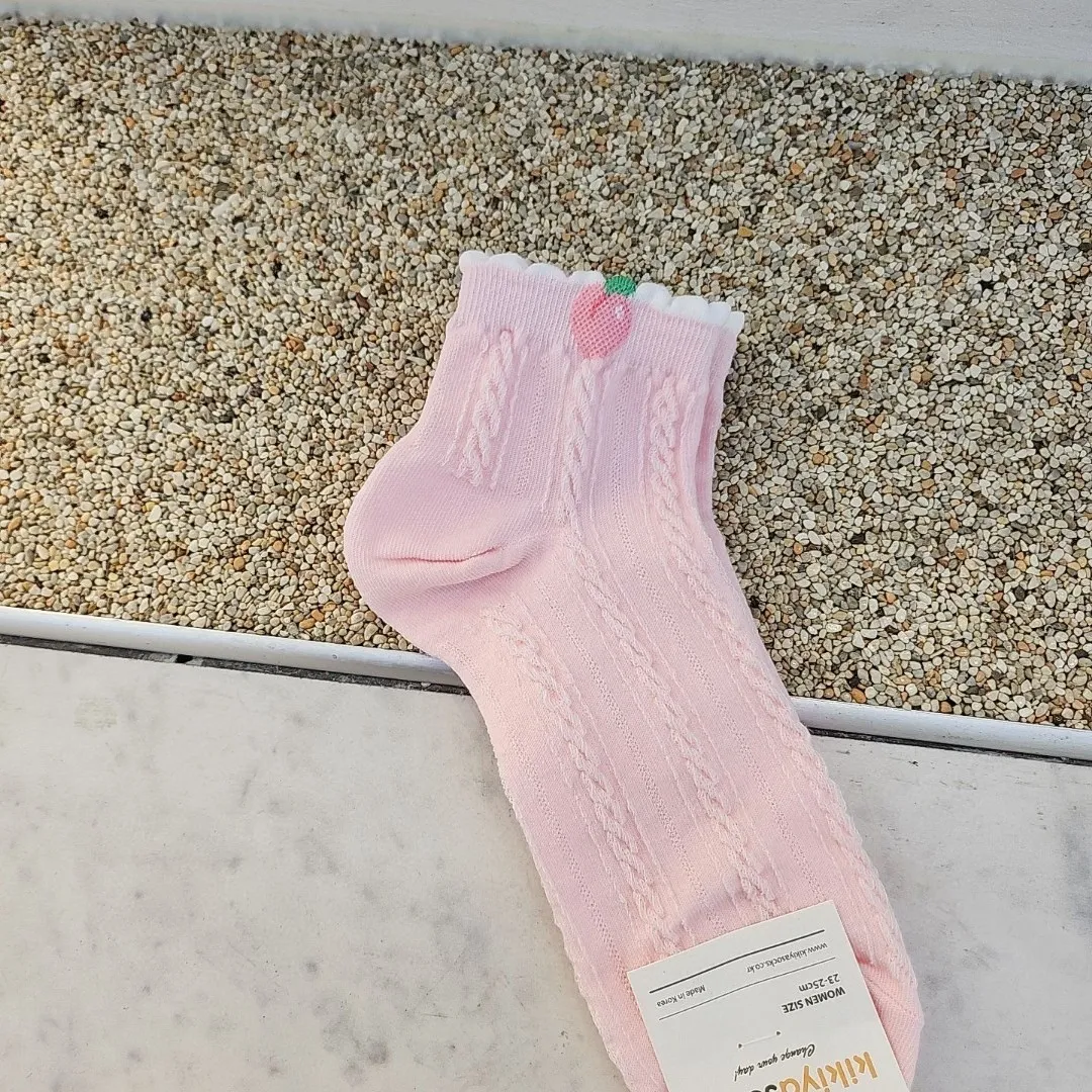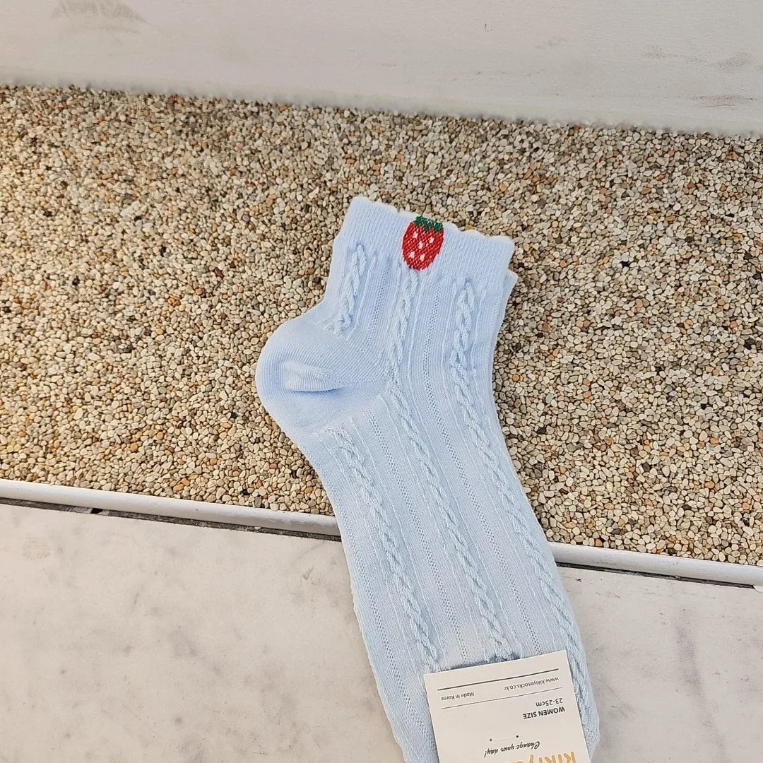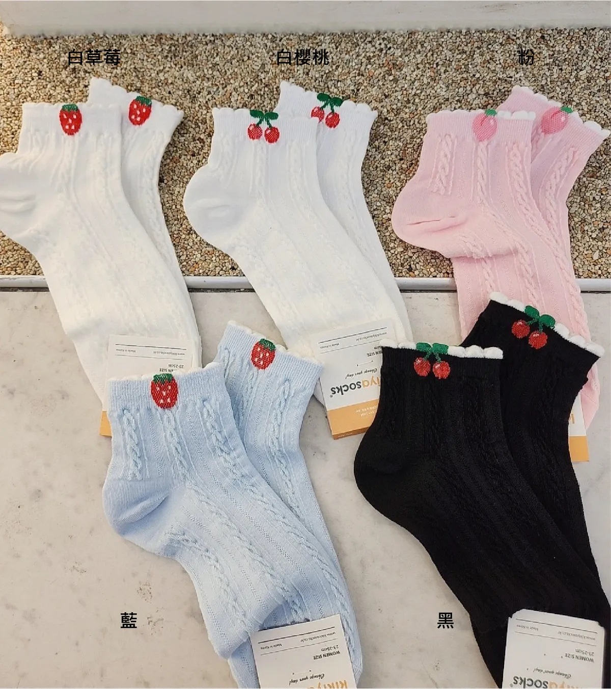 CM144小水果雙股麻花可愛襪 粉 藍 黑 白櫻桃 白草莓 $39 包色$175
