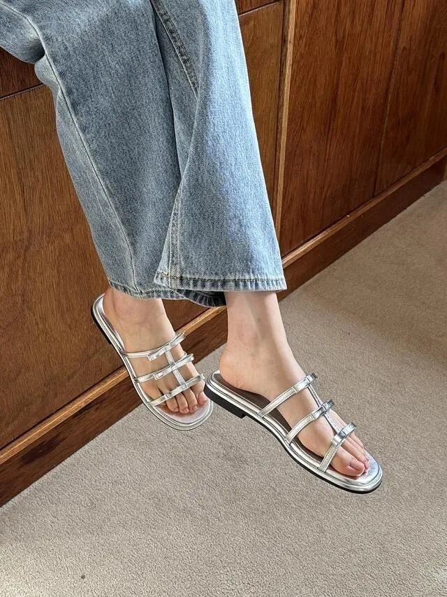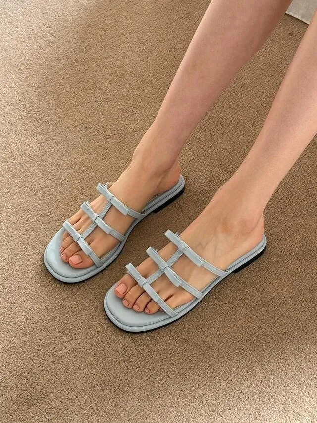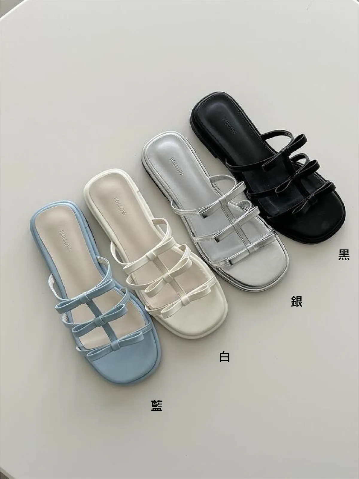 CM166潮流三蝴蝶結設計拖鞋 白 藍 銀 黑 225-250(有半號)$890