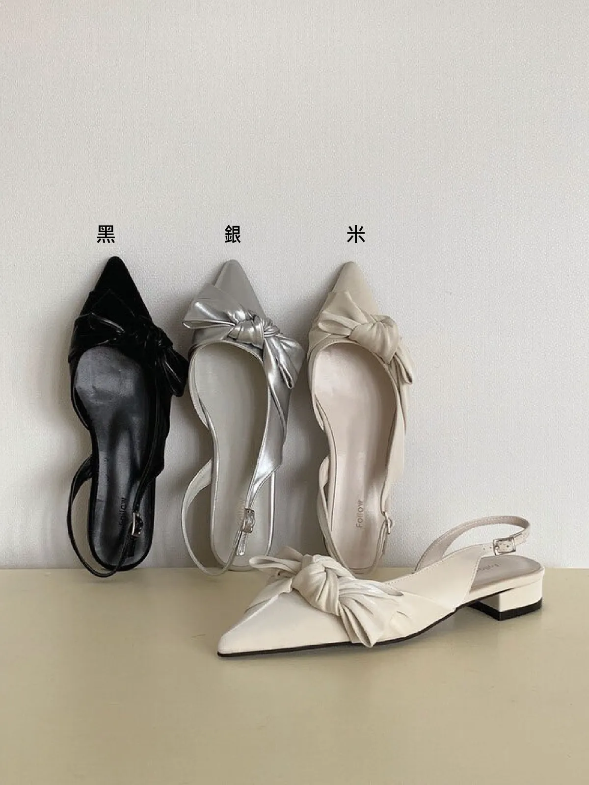 CM167氣質側扭結尖頭涼鞋 米 銀 黑 225-250(有半號)$890