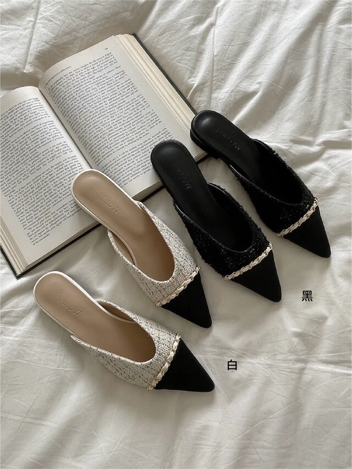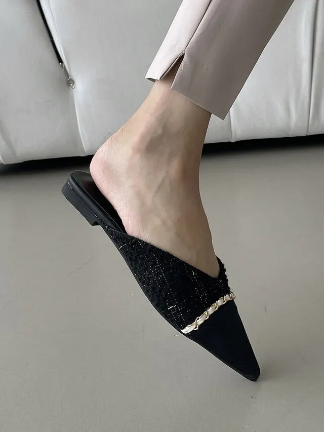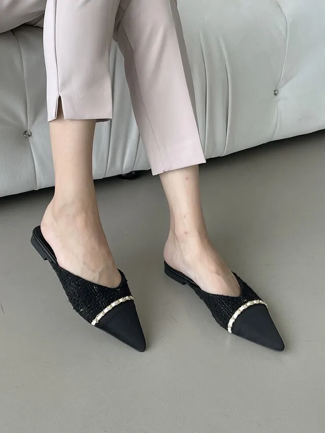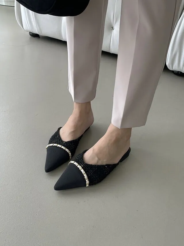 CM170小香風鍊條拖鞋 白 黑 225-250(有半號)$890
