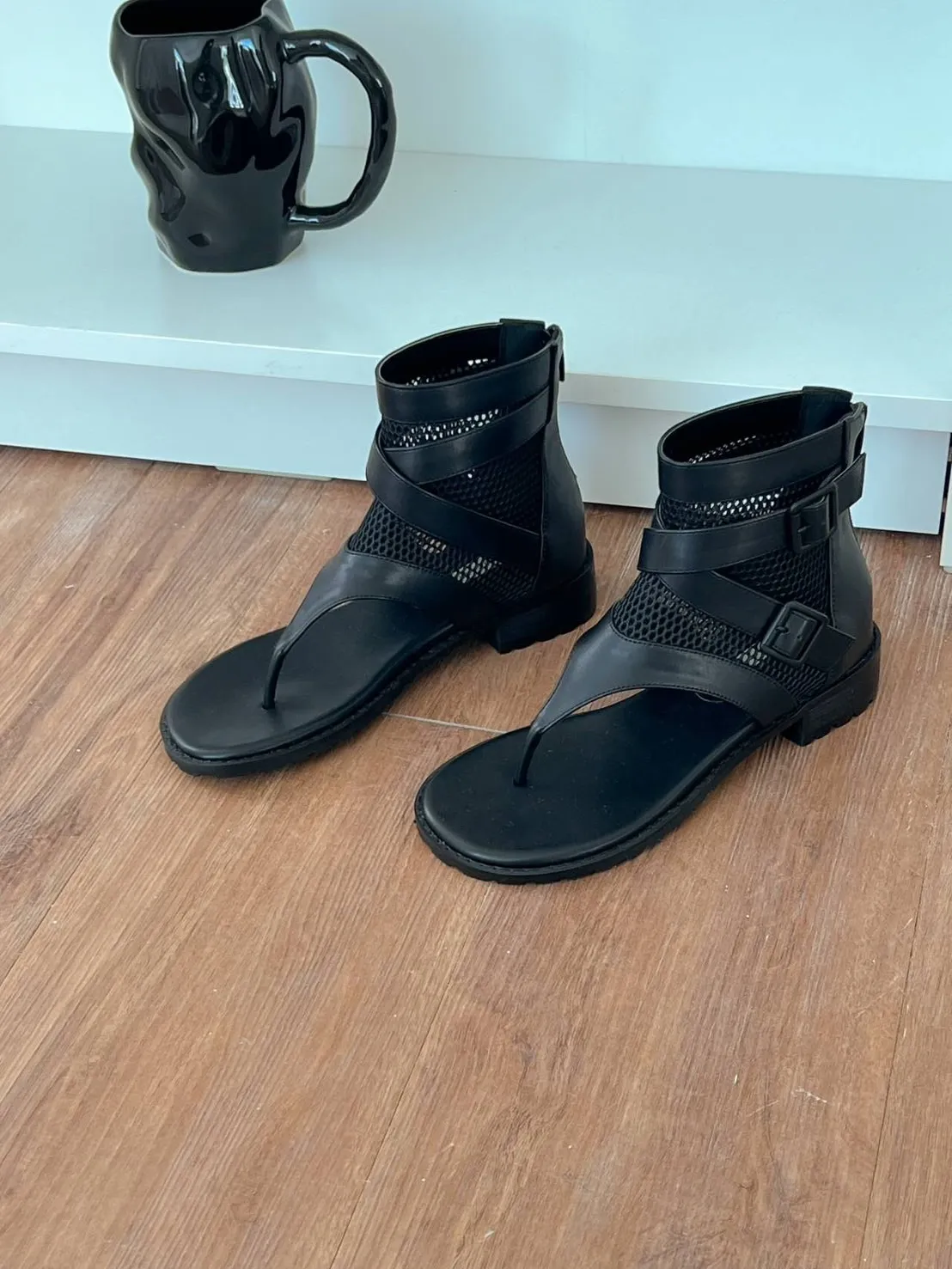 CM176設計感前衛側綁帶黑鞋225-250(有半號) $1020