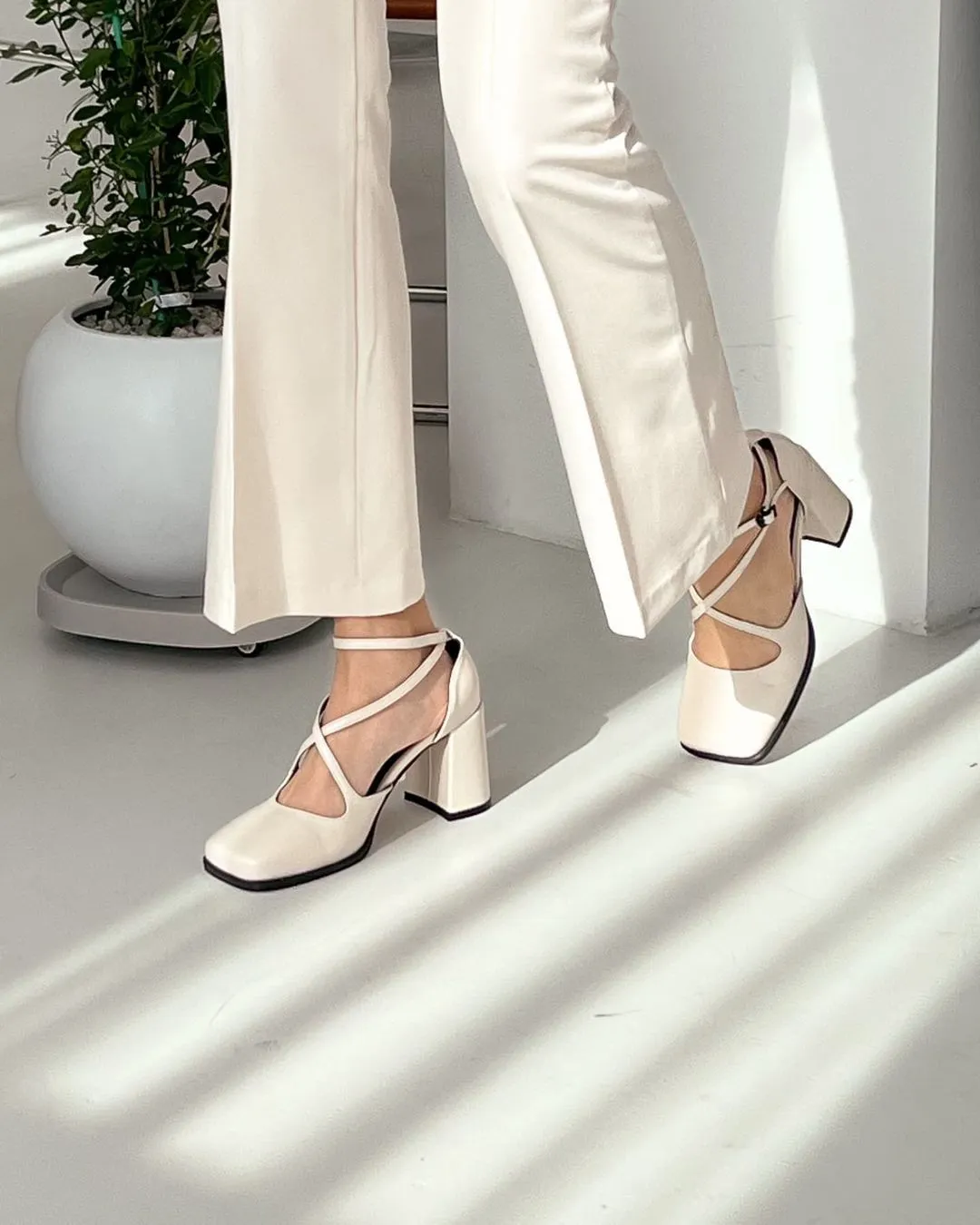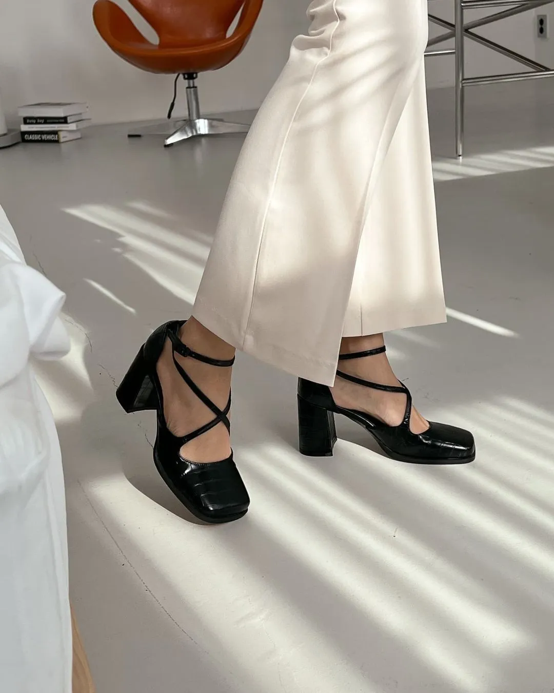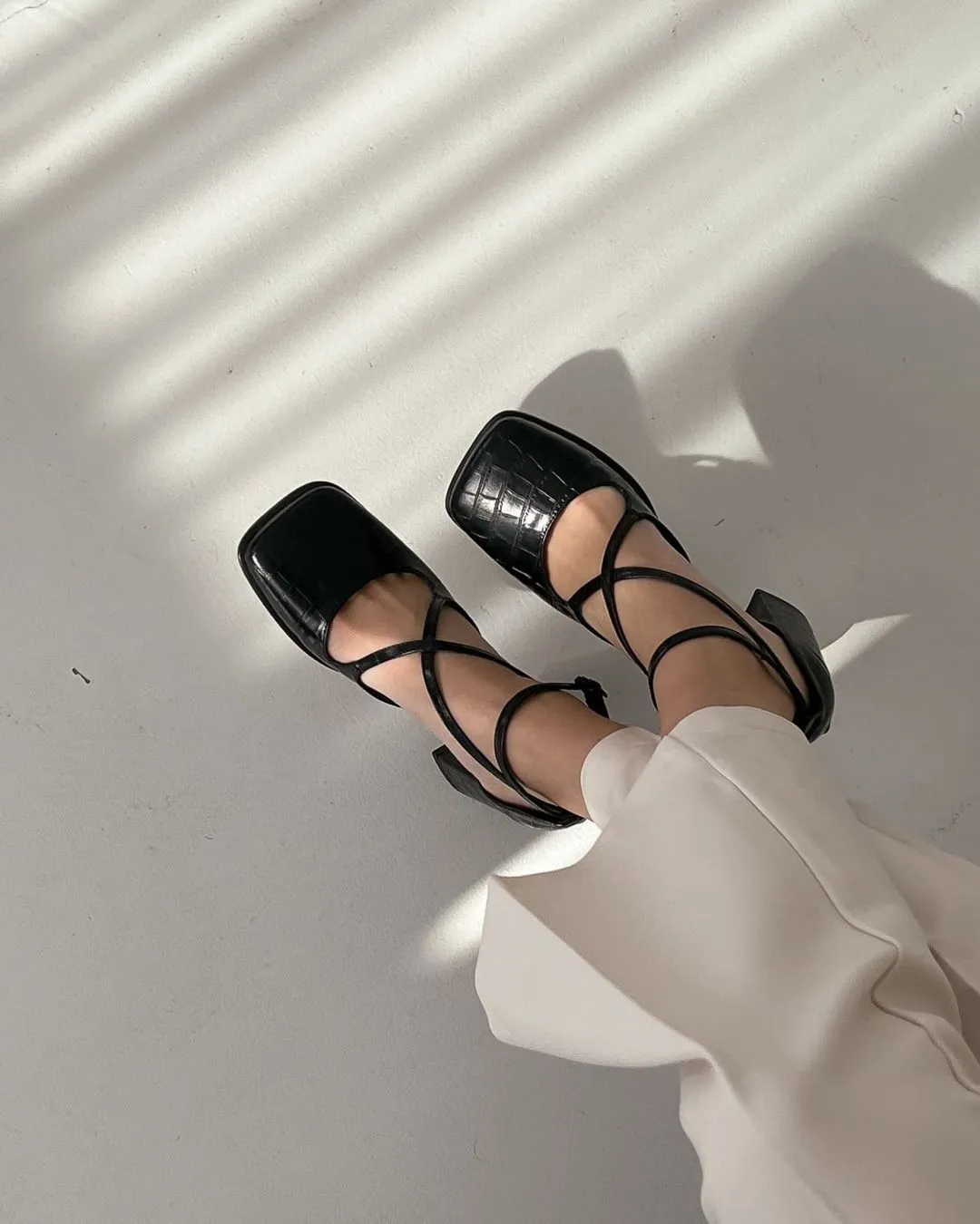 CM178交叉方頭鞋 白 純黑 裂紋黑 225-250(有半號) $950