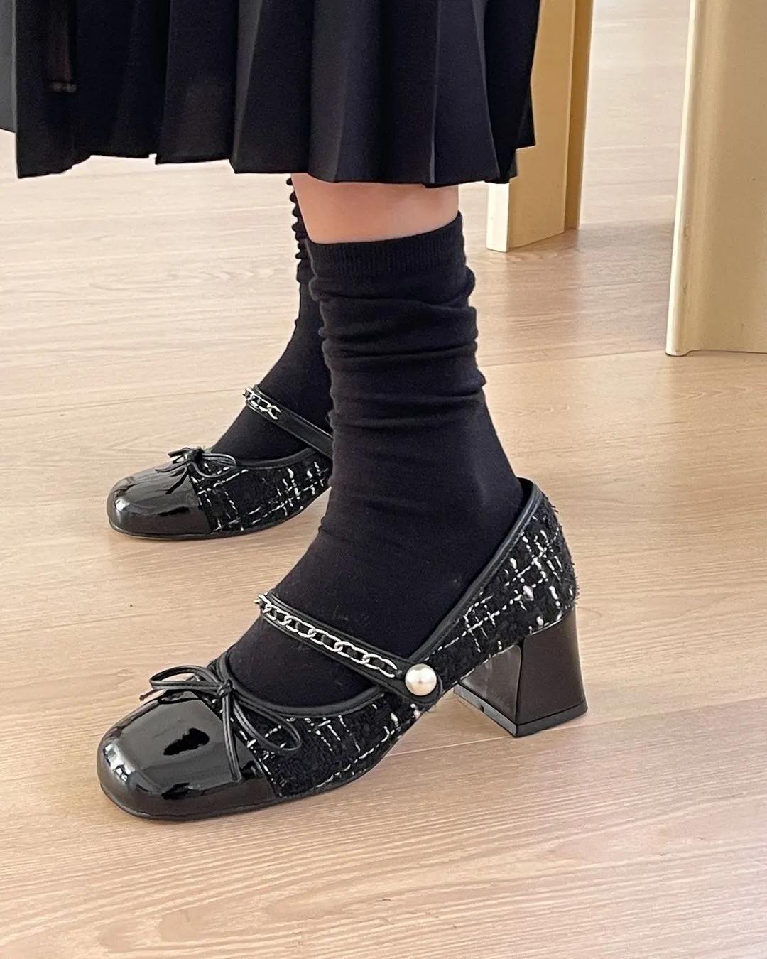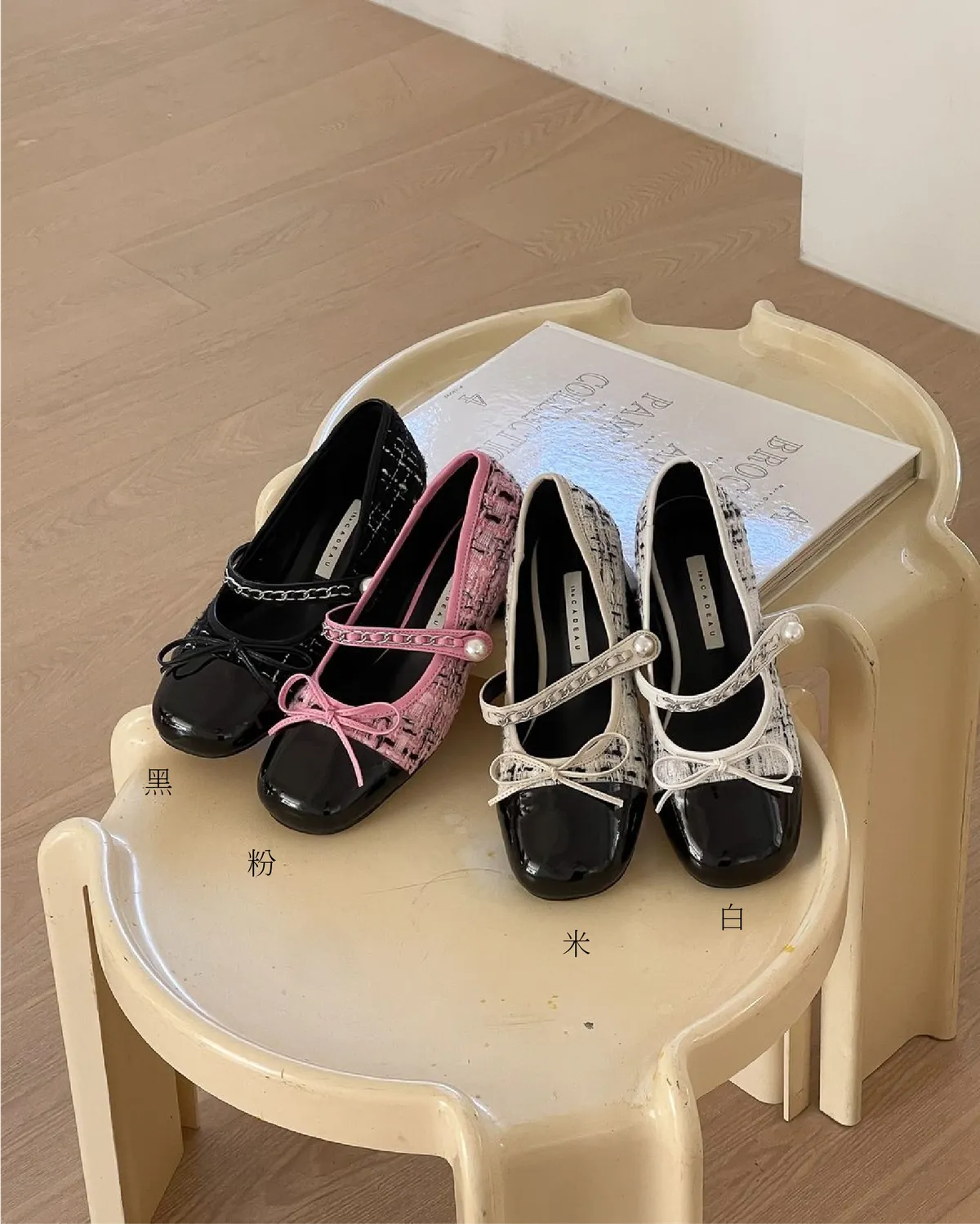CM180小香風圓頭鞋 白 粉 米 黑 225-250(有半號)$940