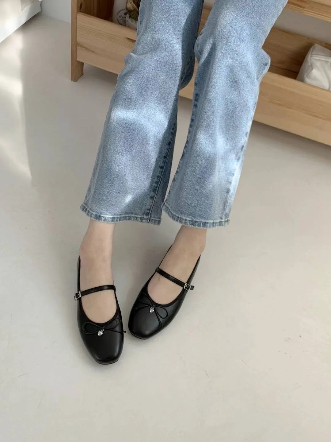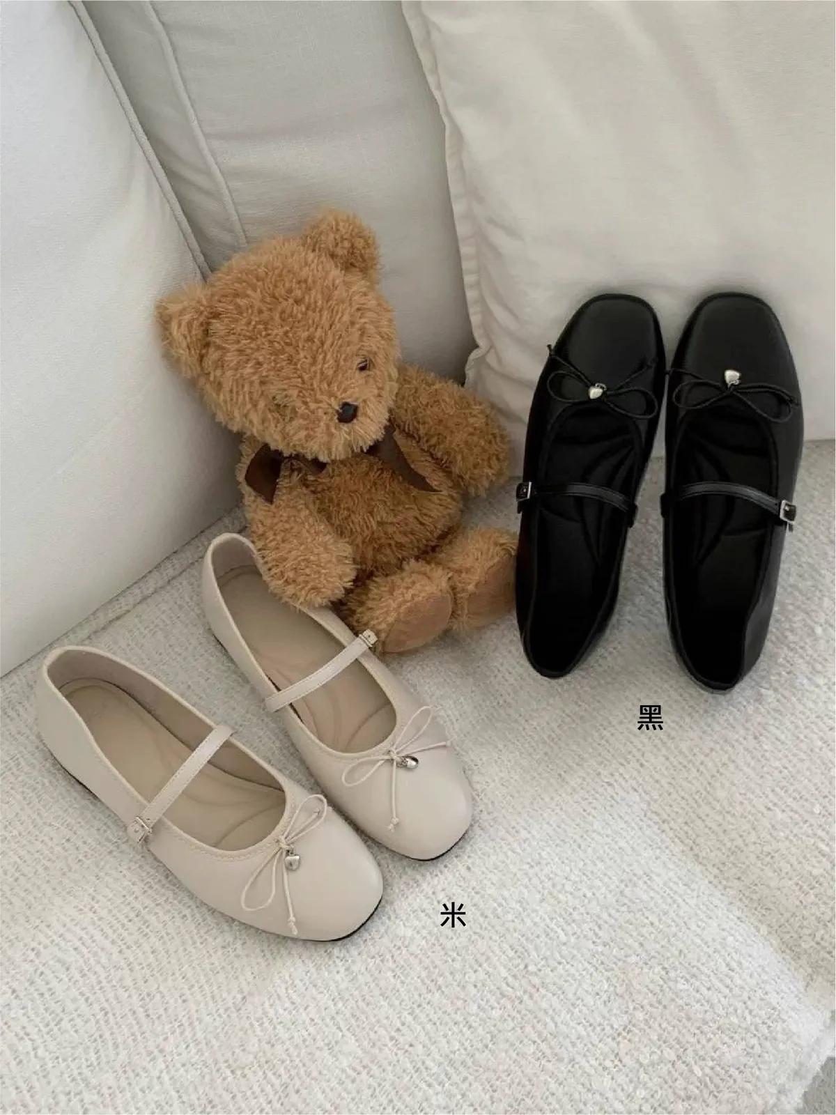CM182推薦款圓頭小蝴蝶結鞋 米 黑 225-250(有半號)$750