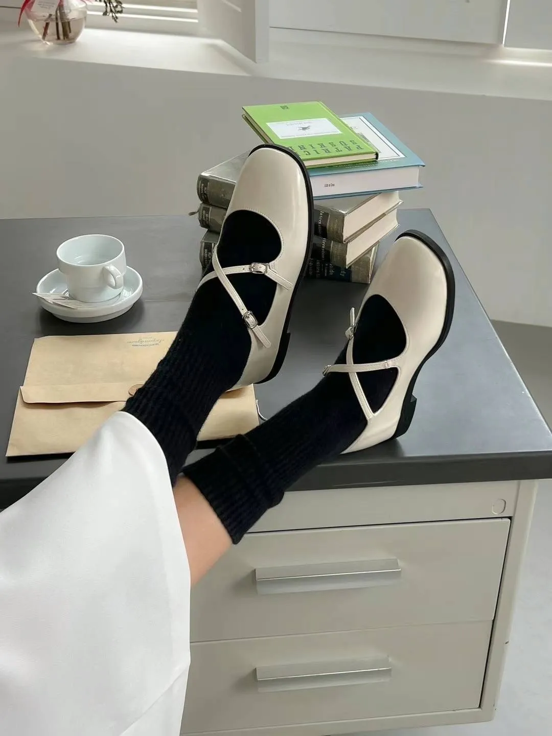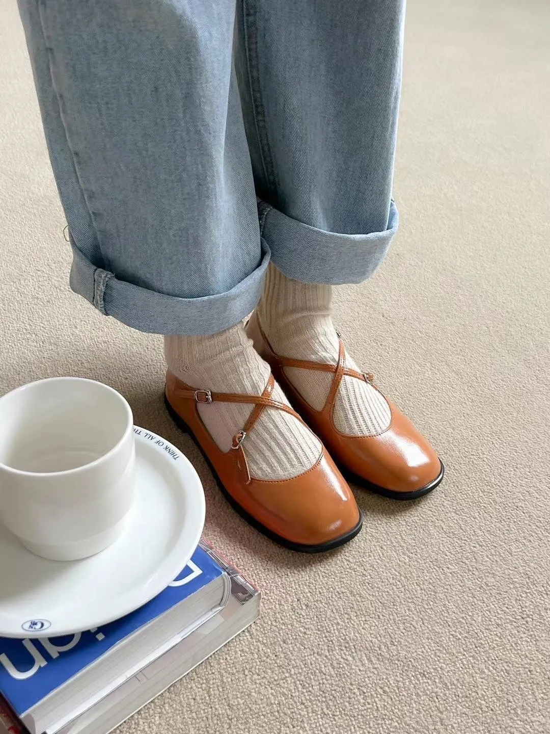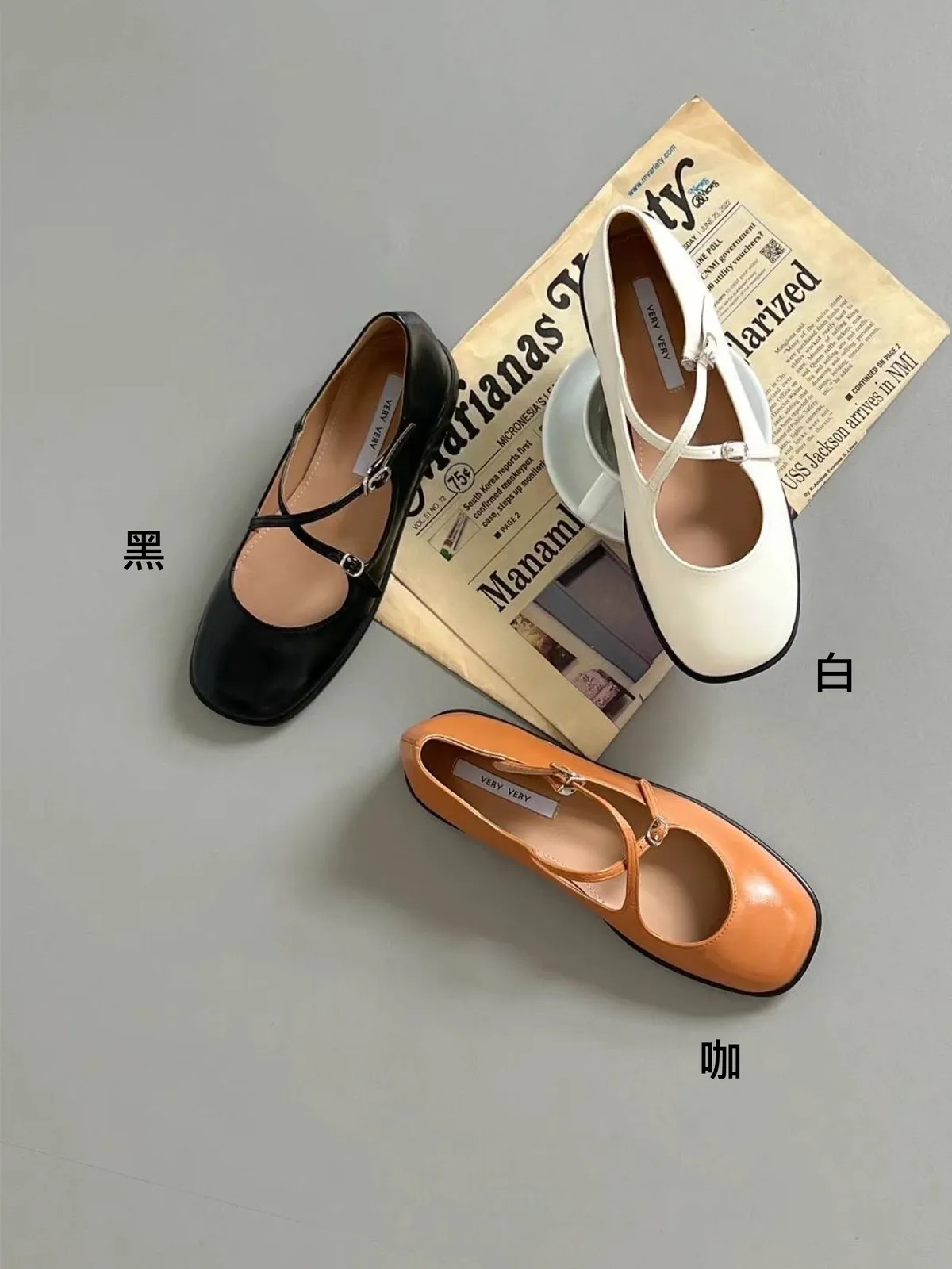 CM193交叉橢圓頭娃娃鞋 白 咖 黑 225-250(有半號) $930