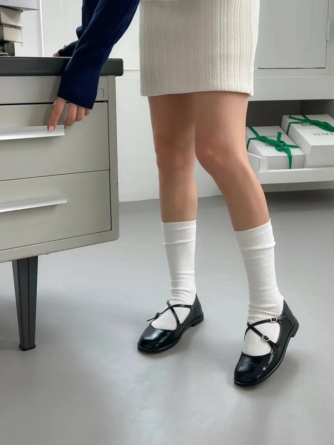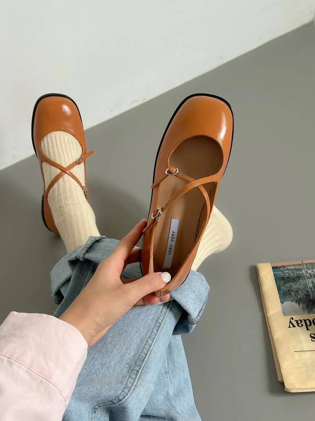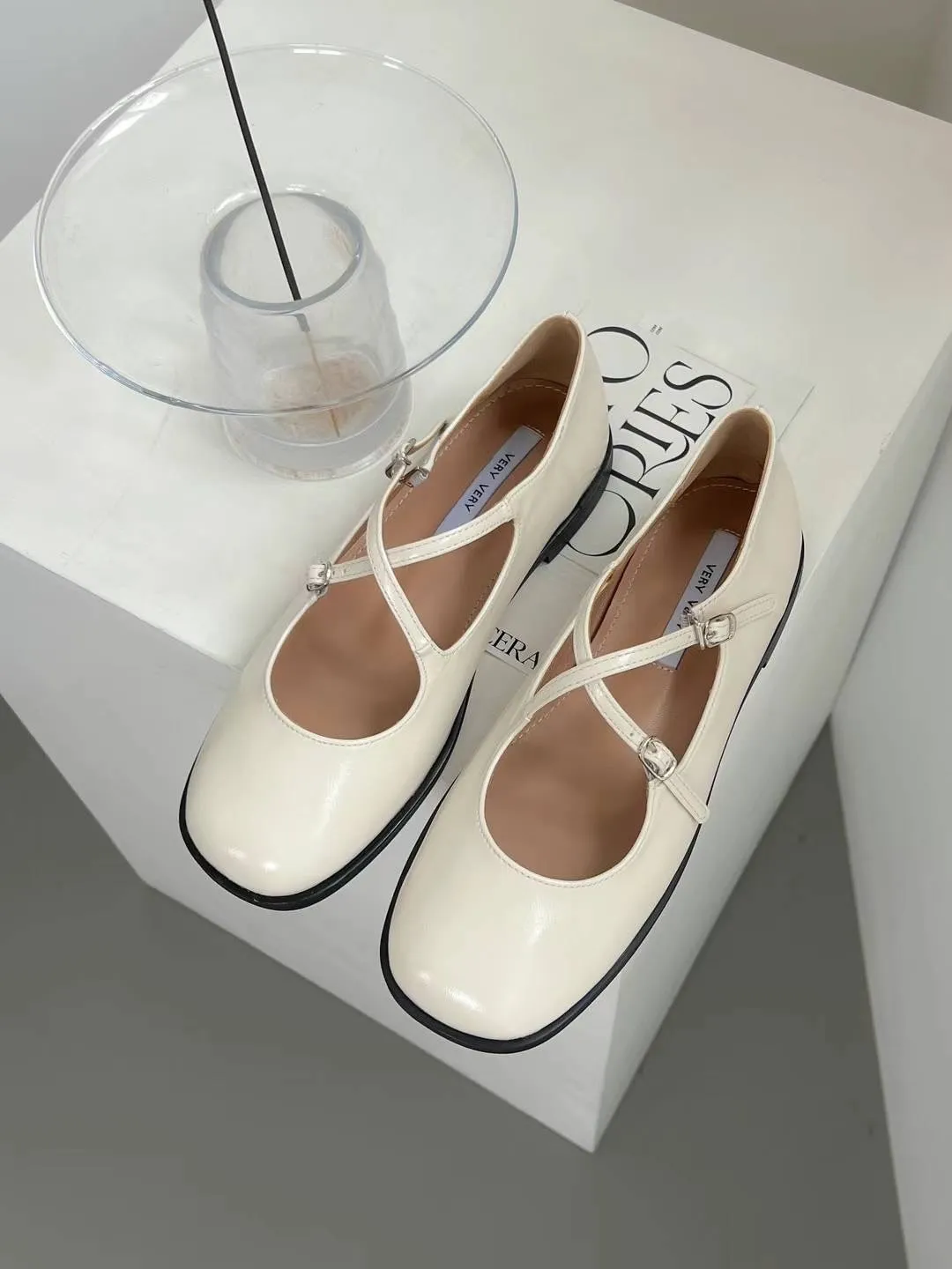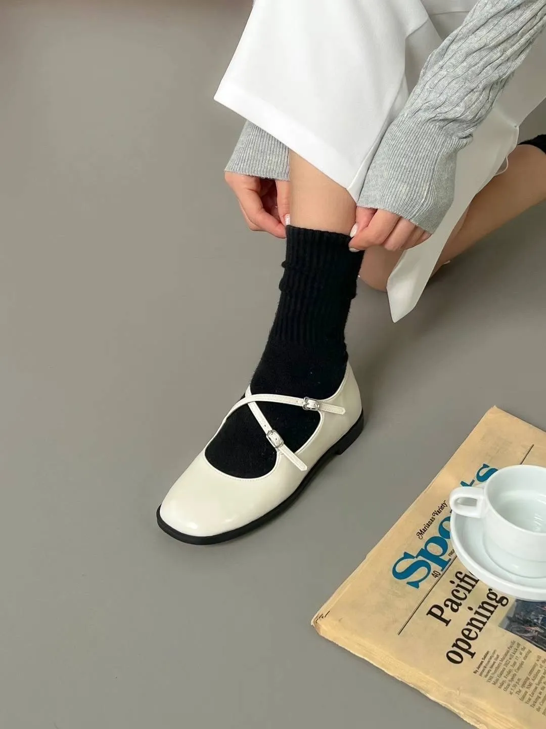 CM193交叉橢圓頭娃娃鞋 白 咖 黑 225-250(有半號) $930