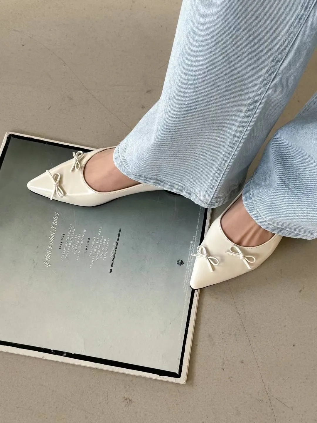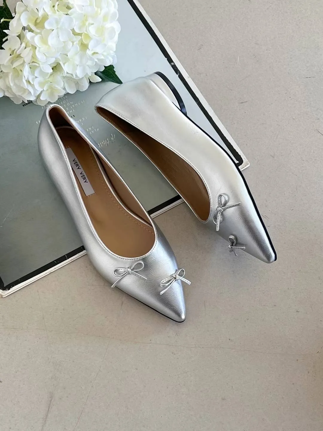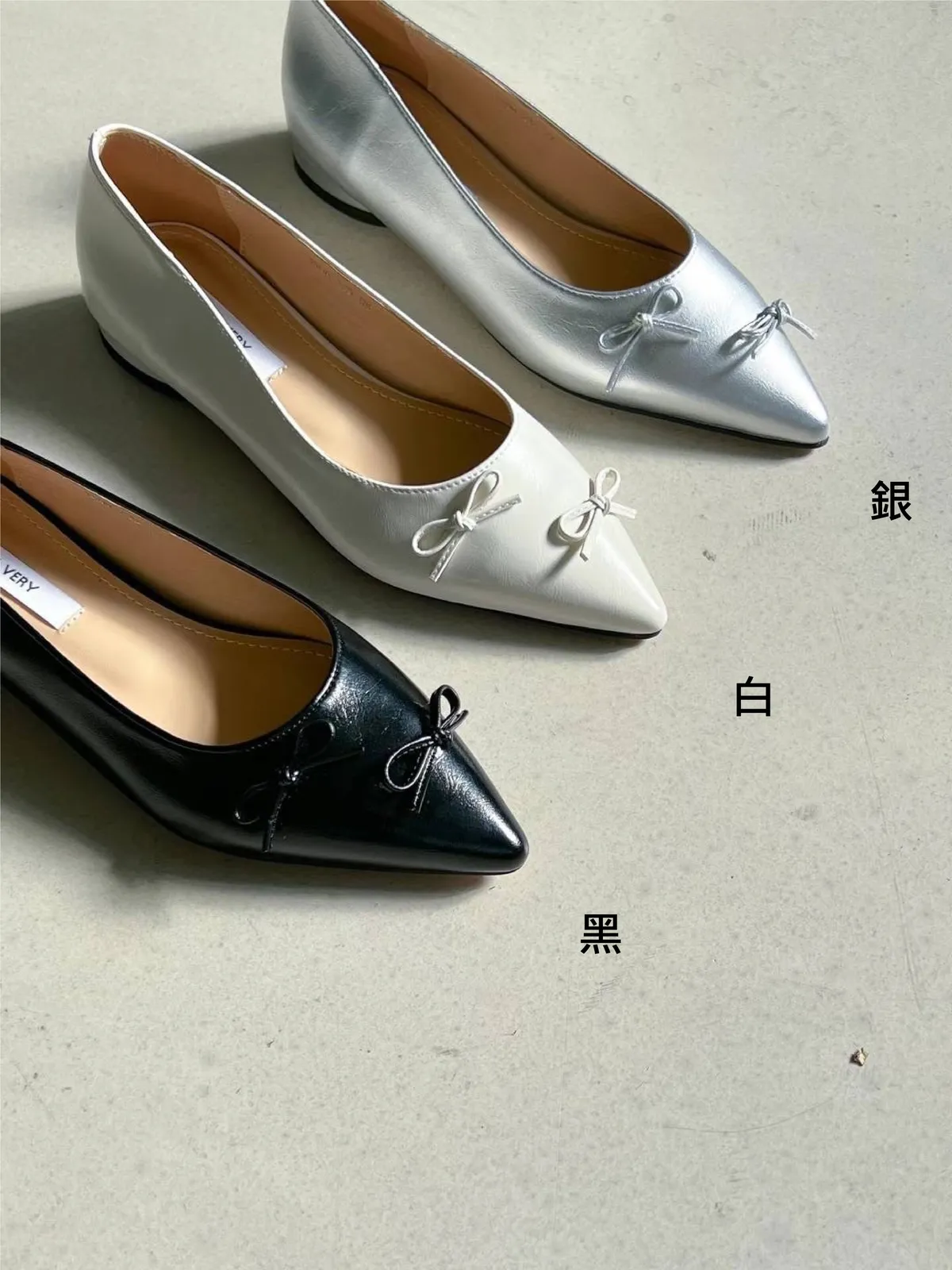 CM195尖頭小小蝴蝶結鞋 白 銀 黑 225-250(有半號) $899