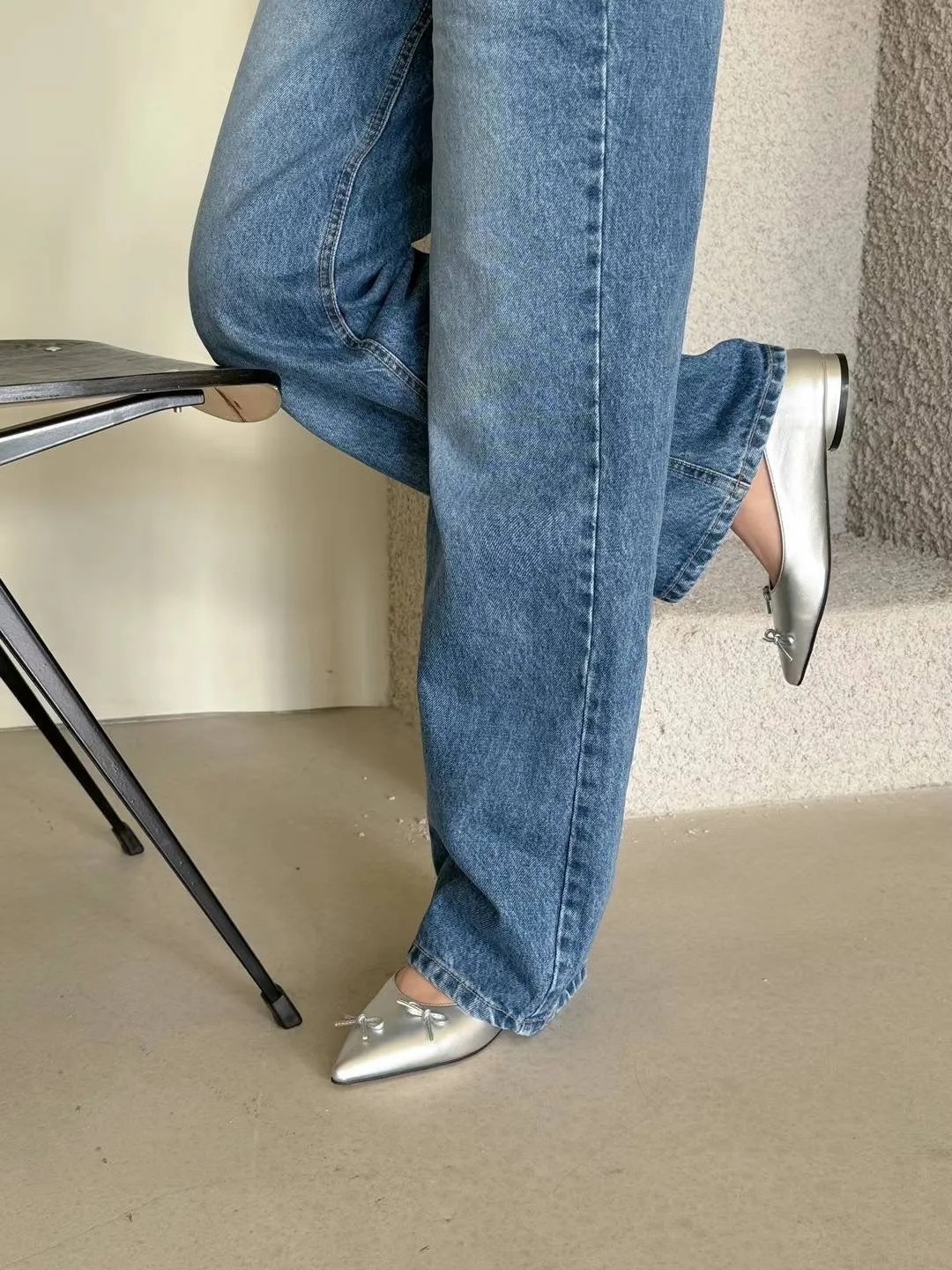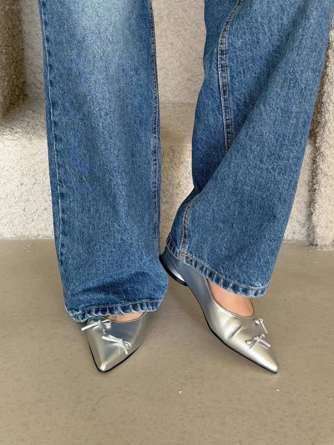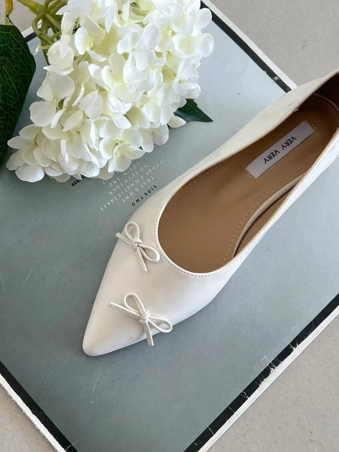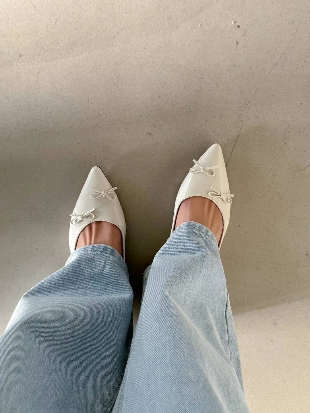 CM195尖頭小小蝴蝶結鞋 白 銀 黑 225-250(有半號) $899