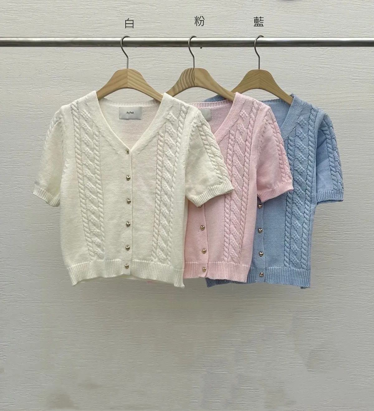 CM224愛心金釦針織短袖上衣 白 粉 藍 官網價$1020 線上價$990