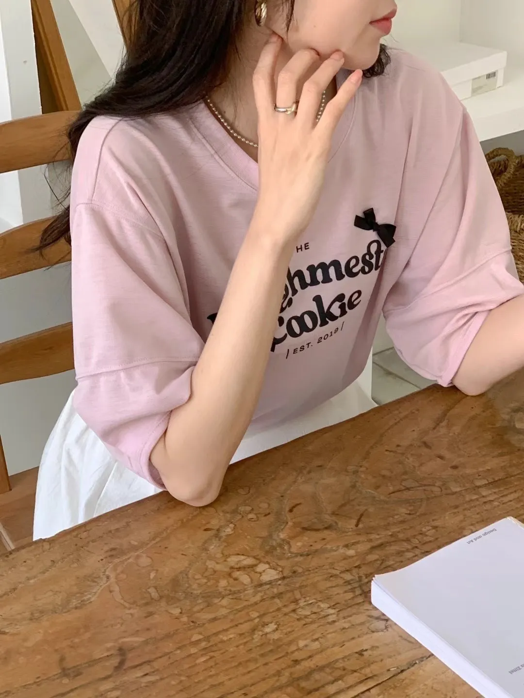 CM229小蝴蝶結cookie短袖Tshirt 白 粉 黑 官網價$790 線上價$760