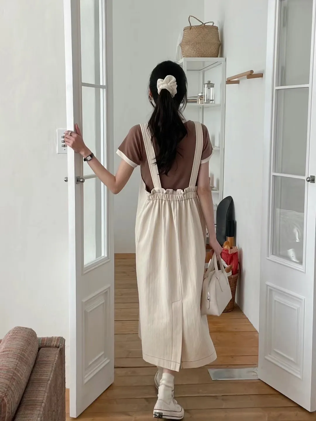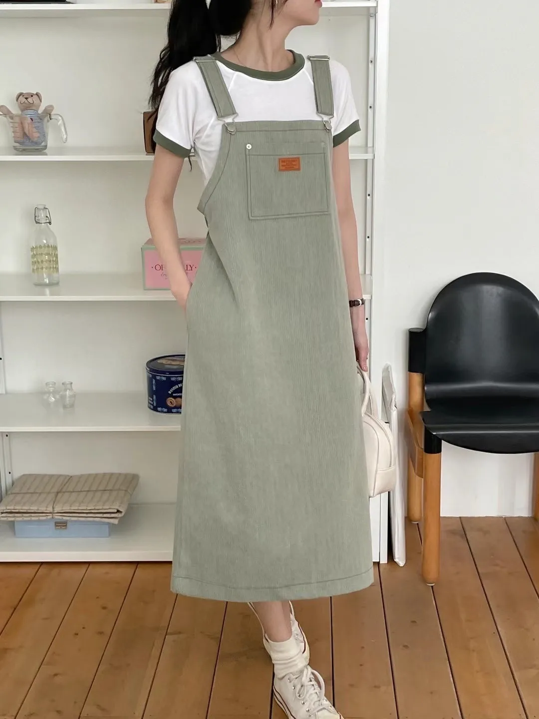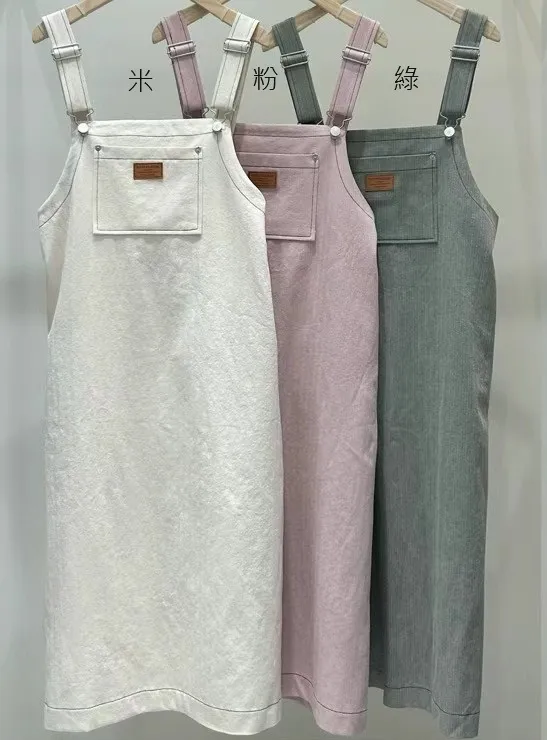 棉 後腰鬆緊 肩帶可調 兩側有口袋 綠色超好看