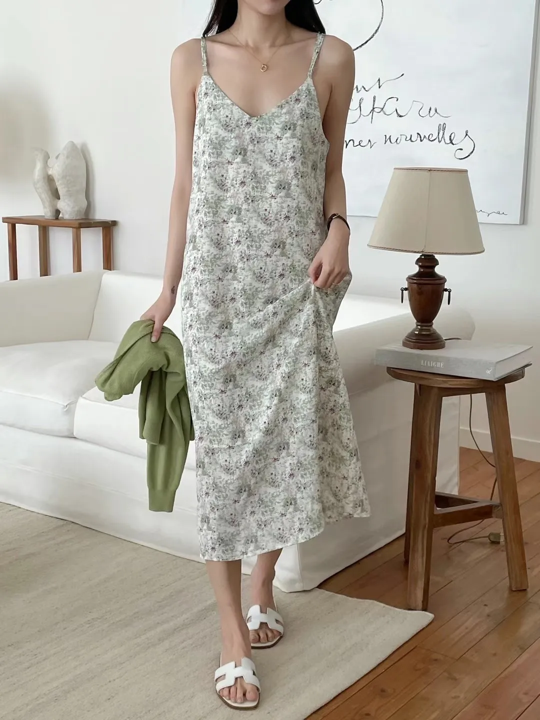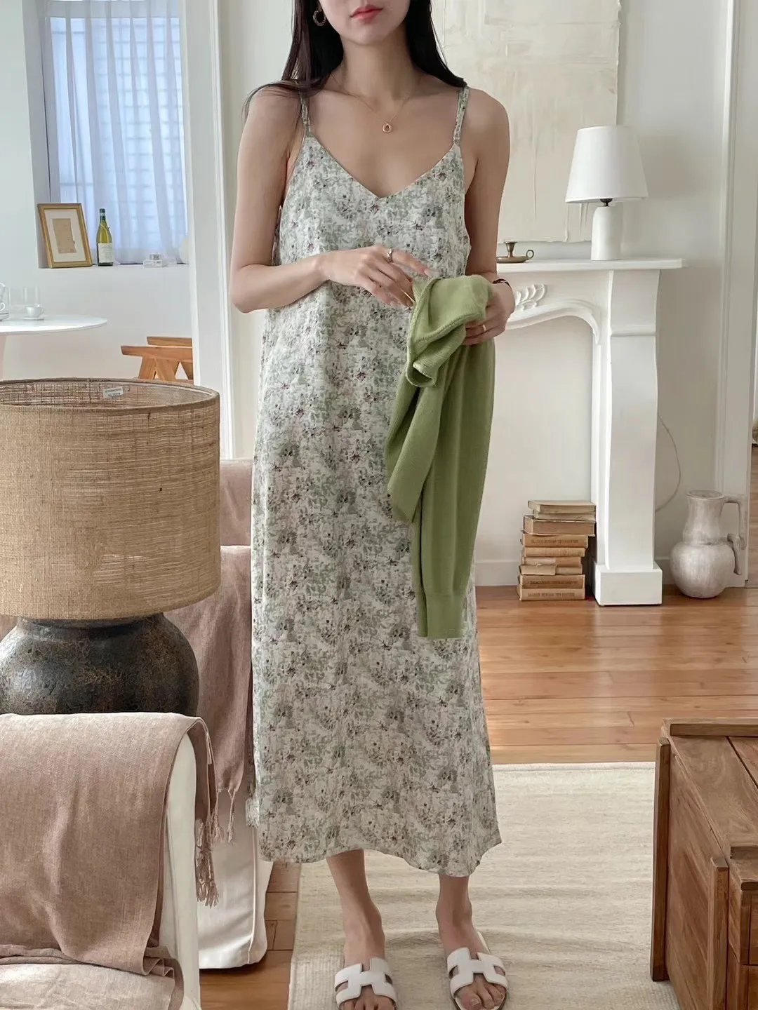 CM242優雅細肩帶美垂墜洋裝 米 綠 官網價$970 線上價$940