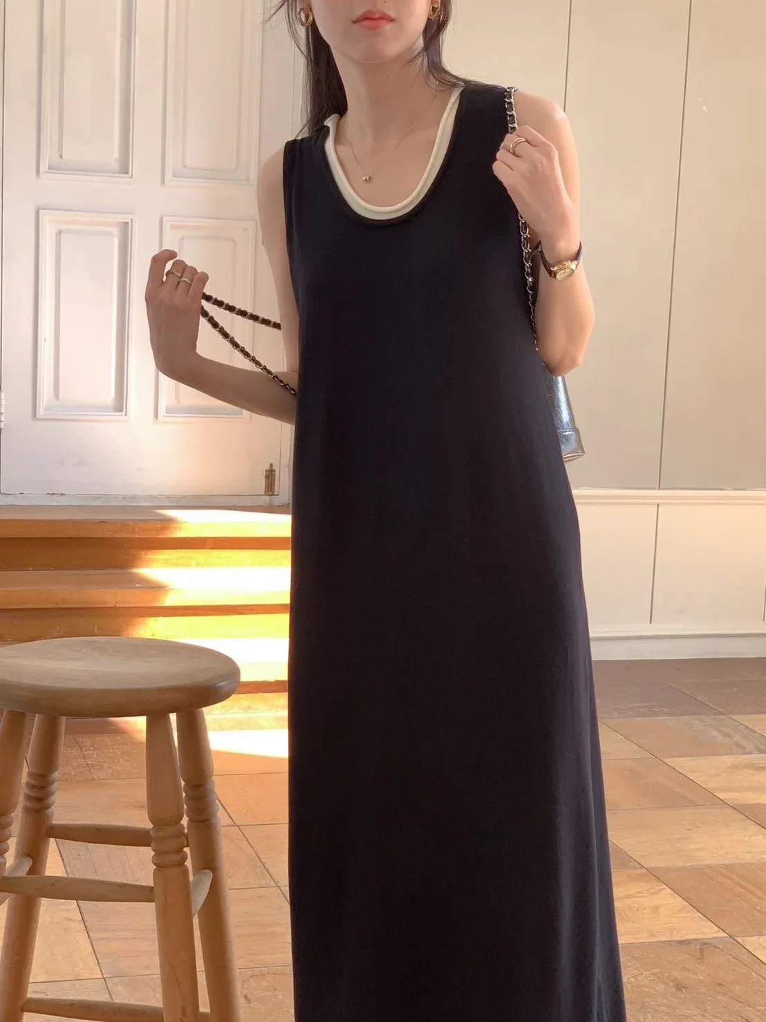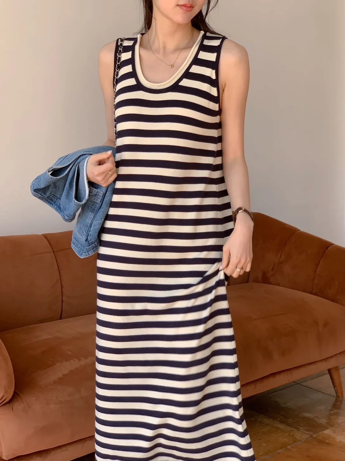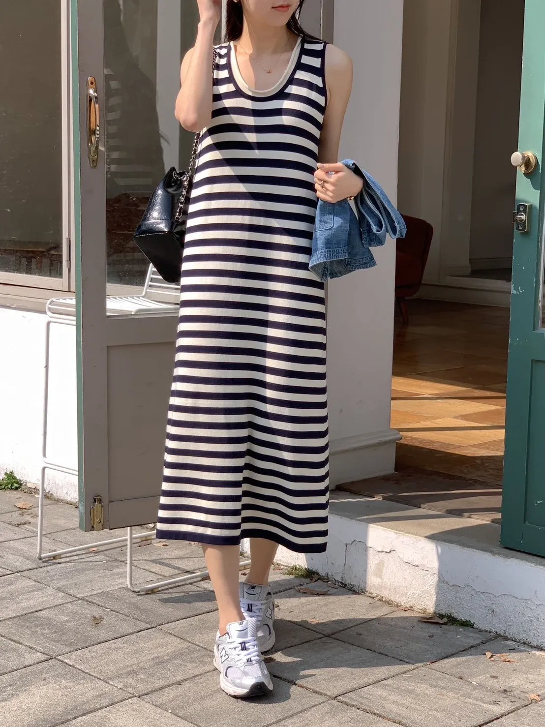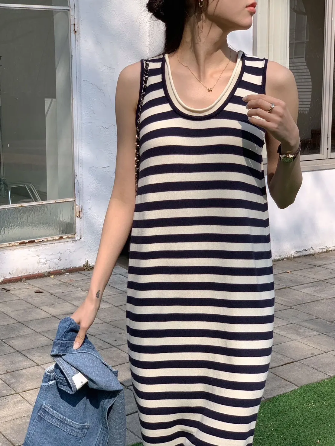CM245縲縈無袖百搭洋裝 全黑 條紋 官網價$990 線上價$960